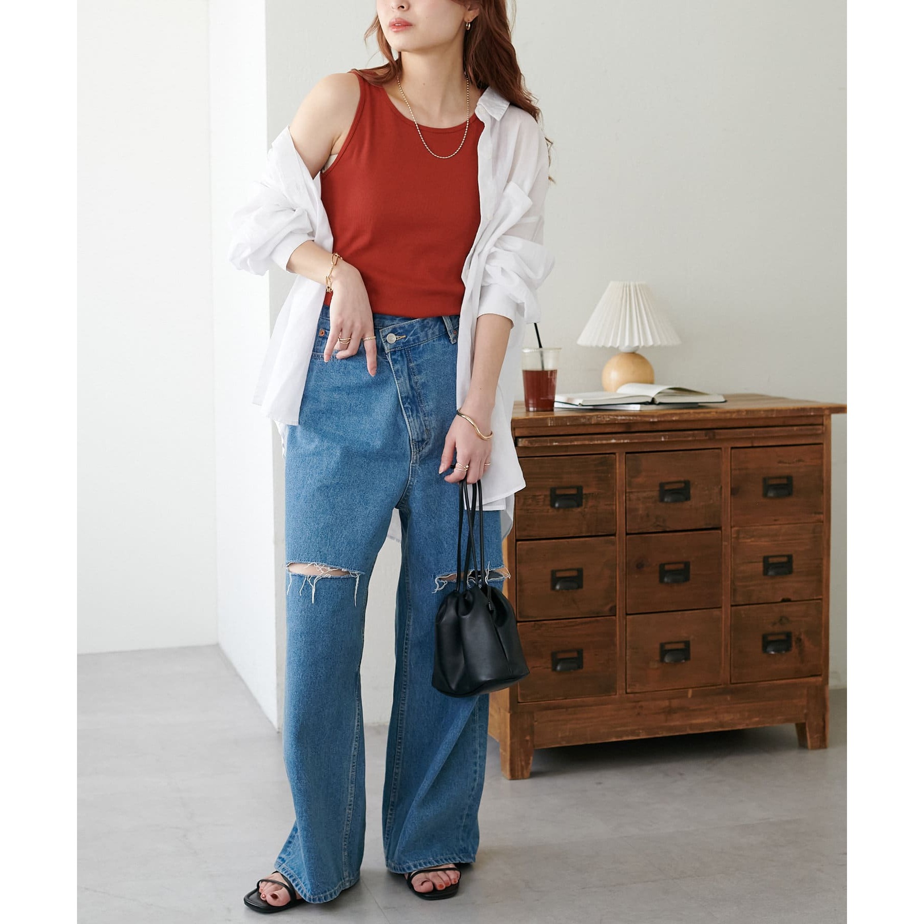 キャミソールはもちろんですが、ロゴTシャツを合わせたりしても抜け感が出るので幅広いアイテムとの合わせを楽しめます!