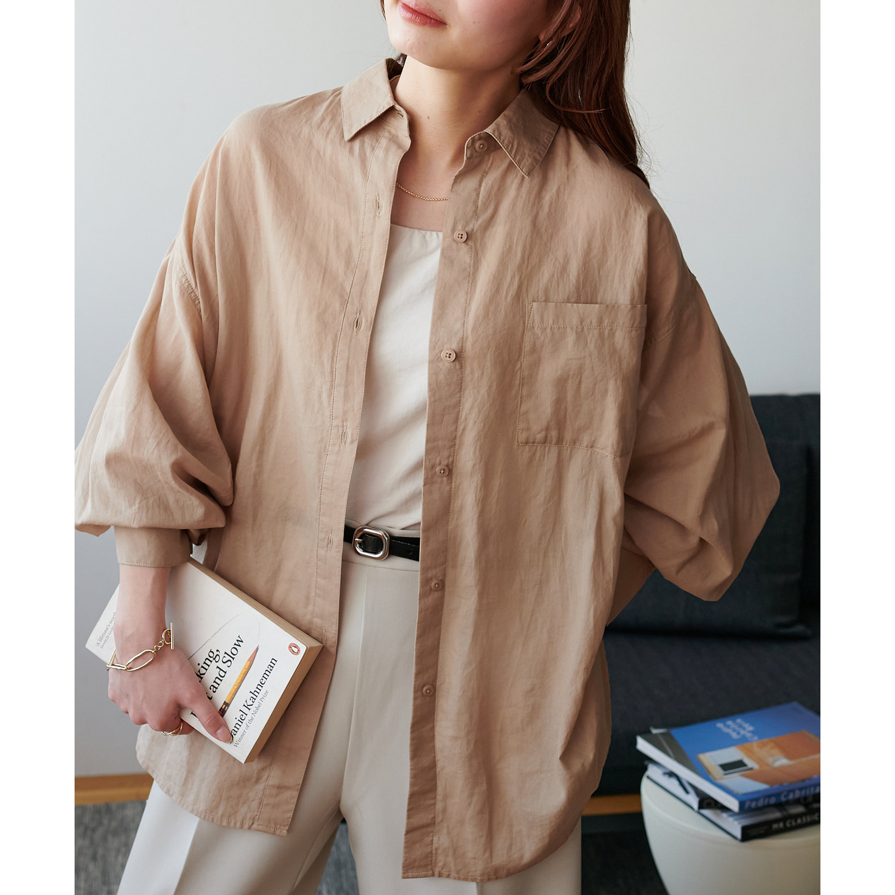 コットンシアー袖バルーンブラウス5分袖《WEB限定カラーあり》
