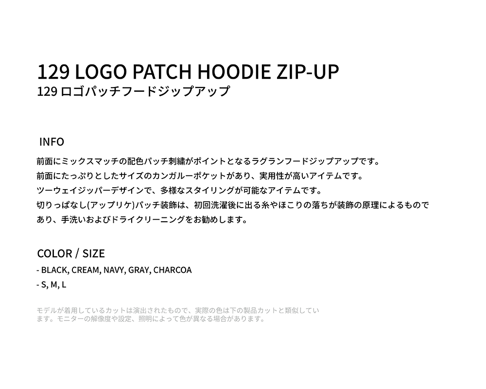 [Kアイドル着用]129LogoPatchHoodedZip-UpBlack