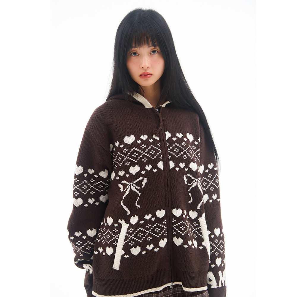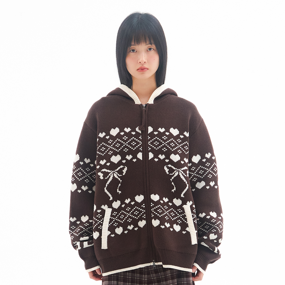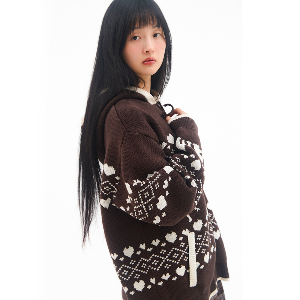 [K-POP アイドル着用] COWICHAN KNIT HOODIE ZIP-UP BROWN