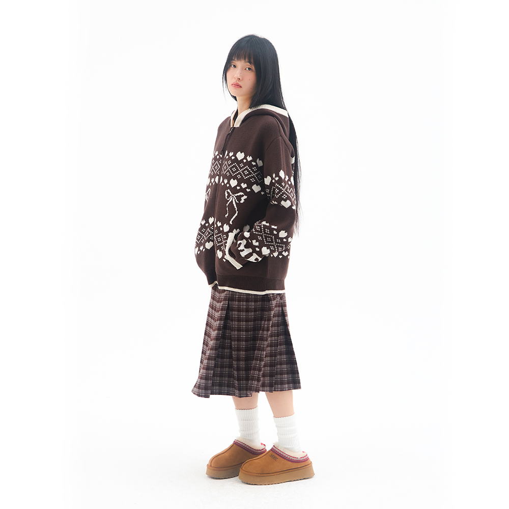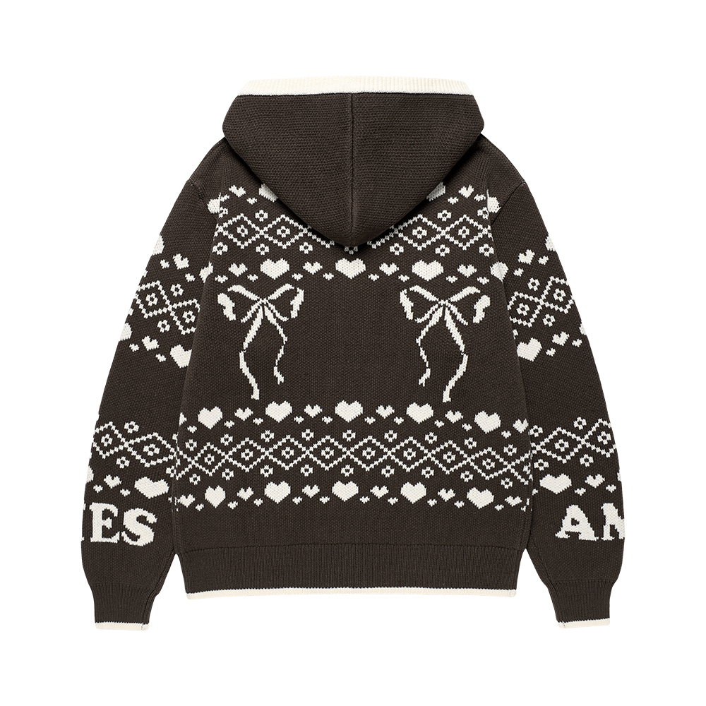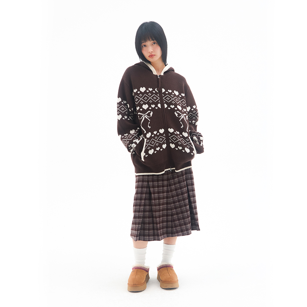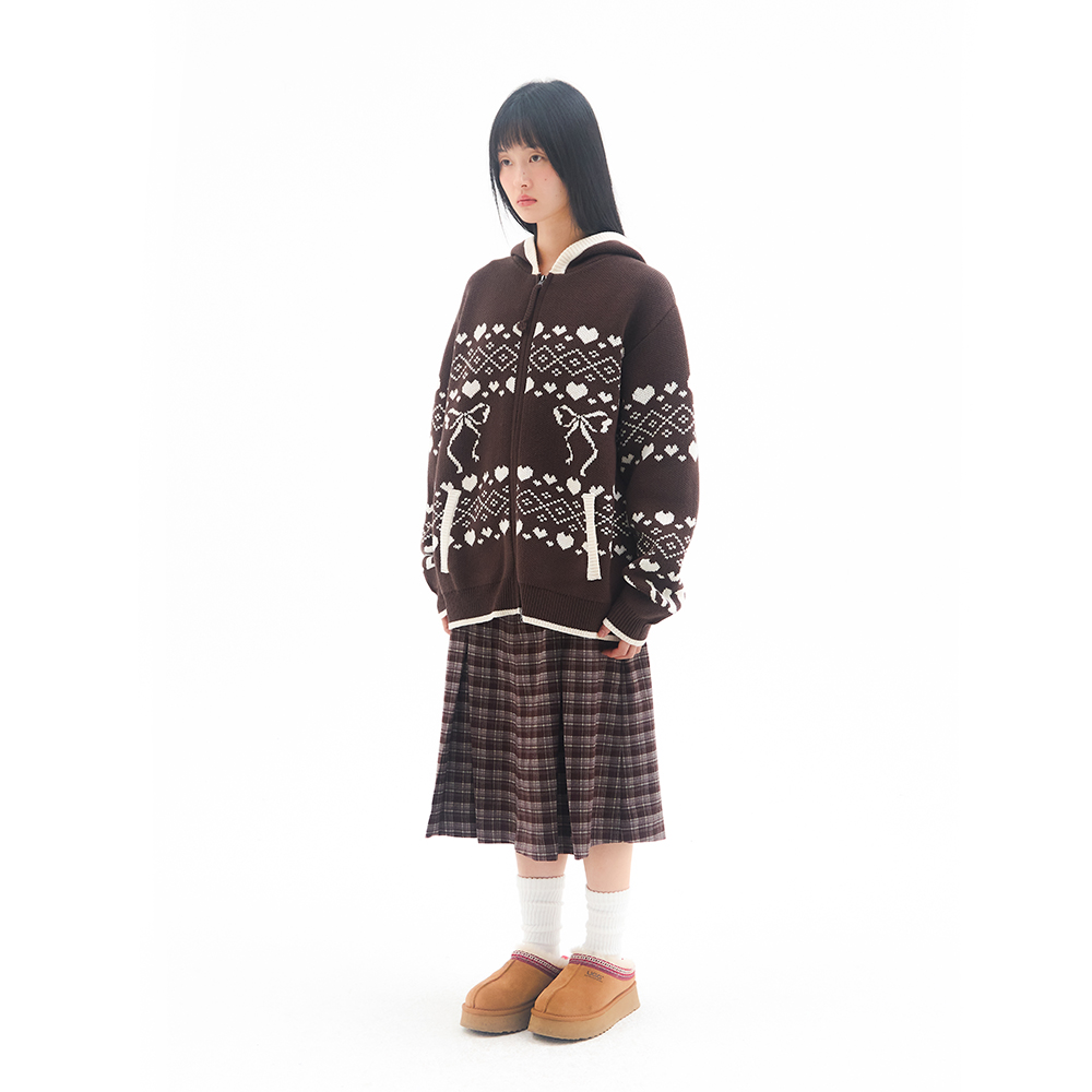 [K-POP アイドル着用] COWICHAN KNIT HOODIE ZIP-UP BROWN