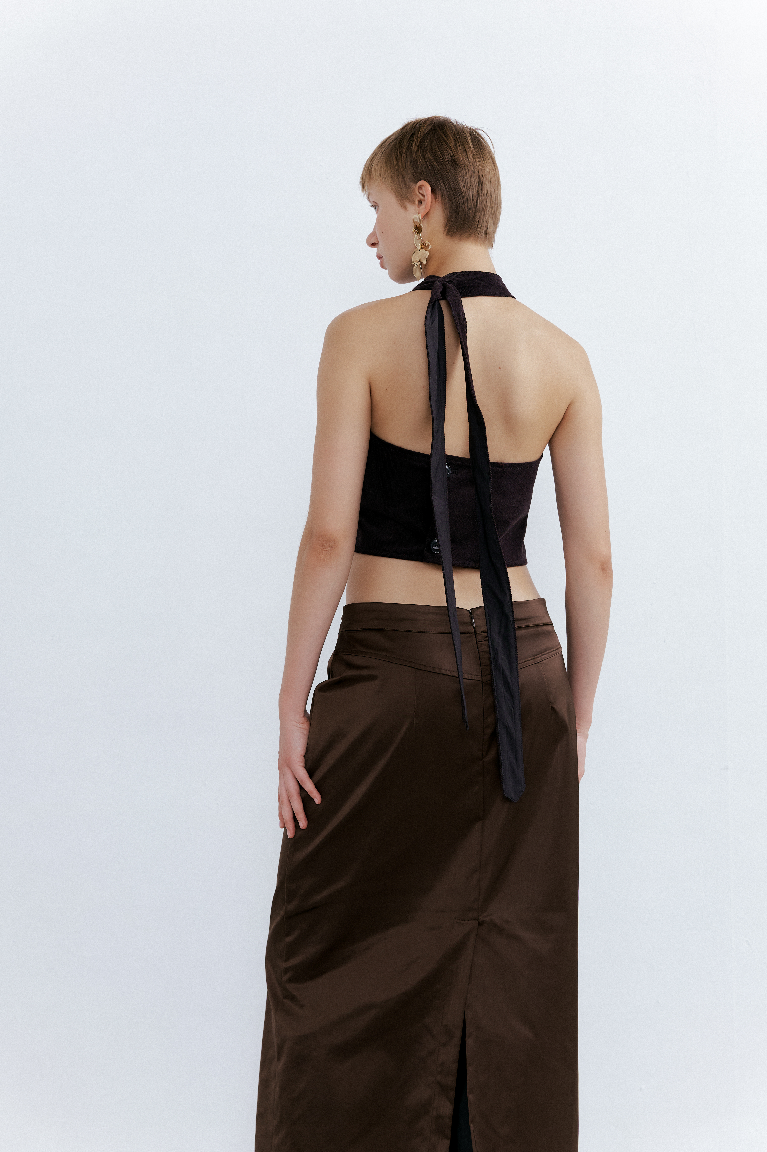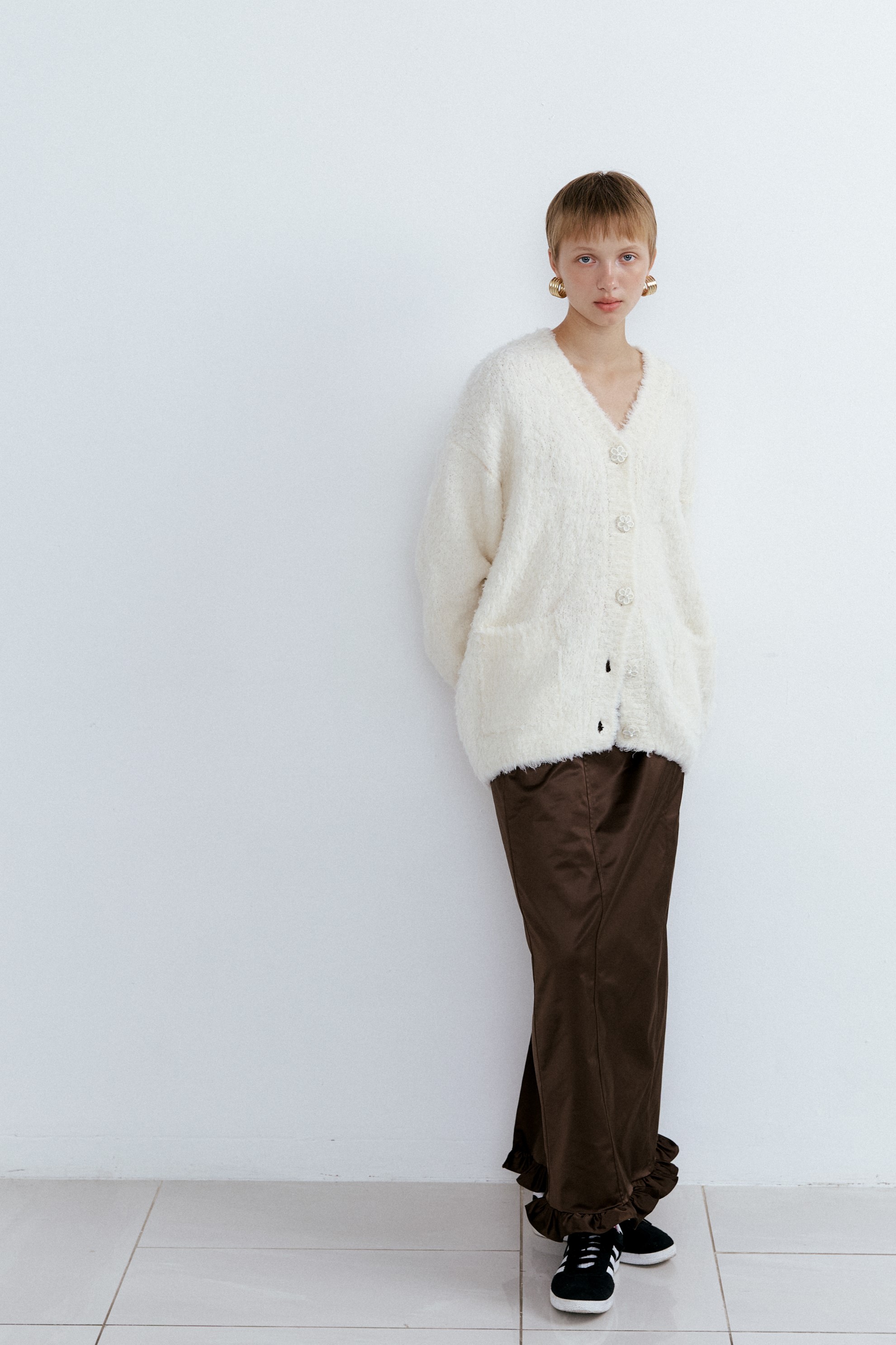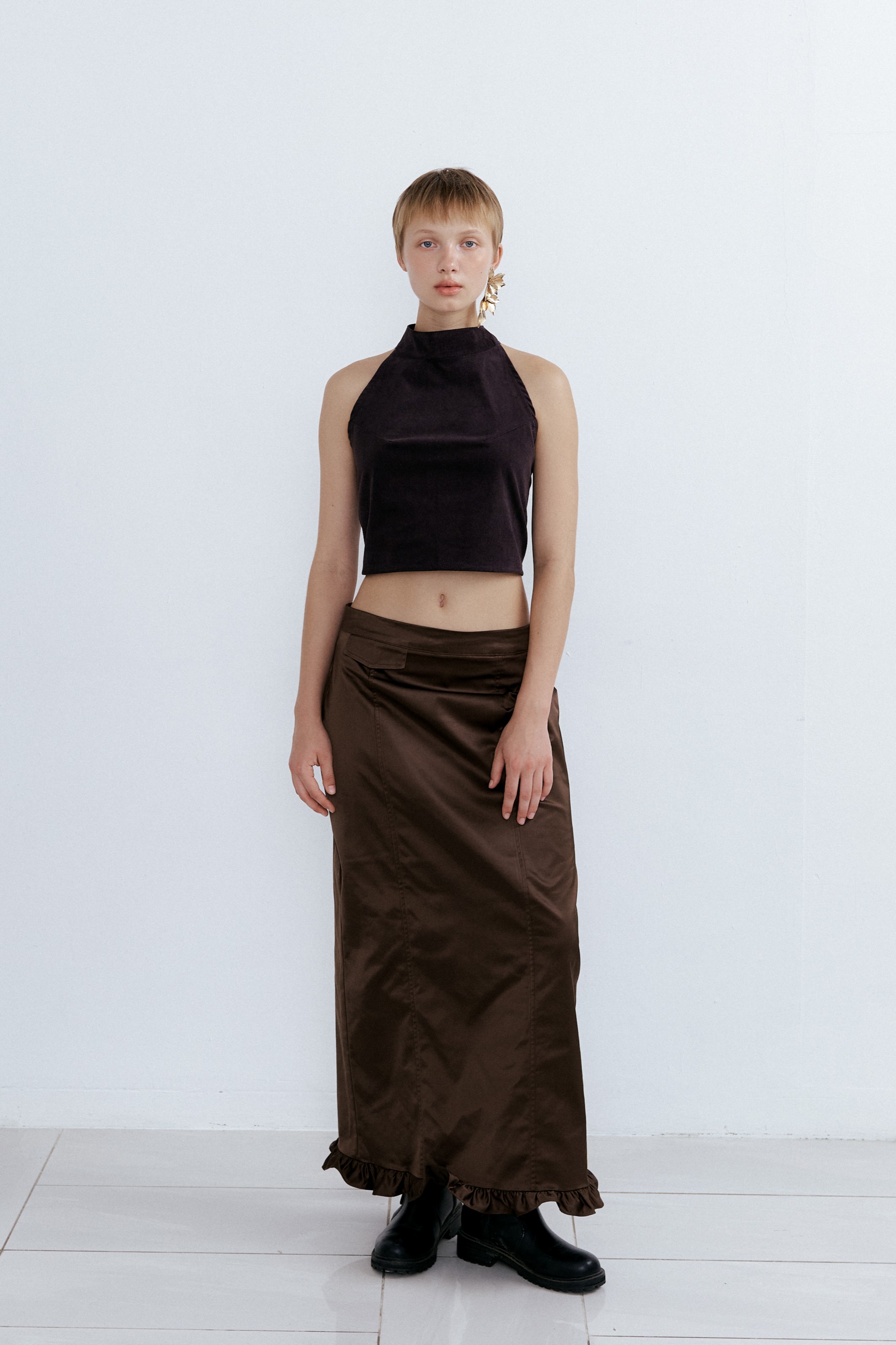 Frill Maxi Long Skirt_Saddle Brown