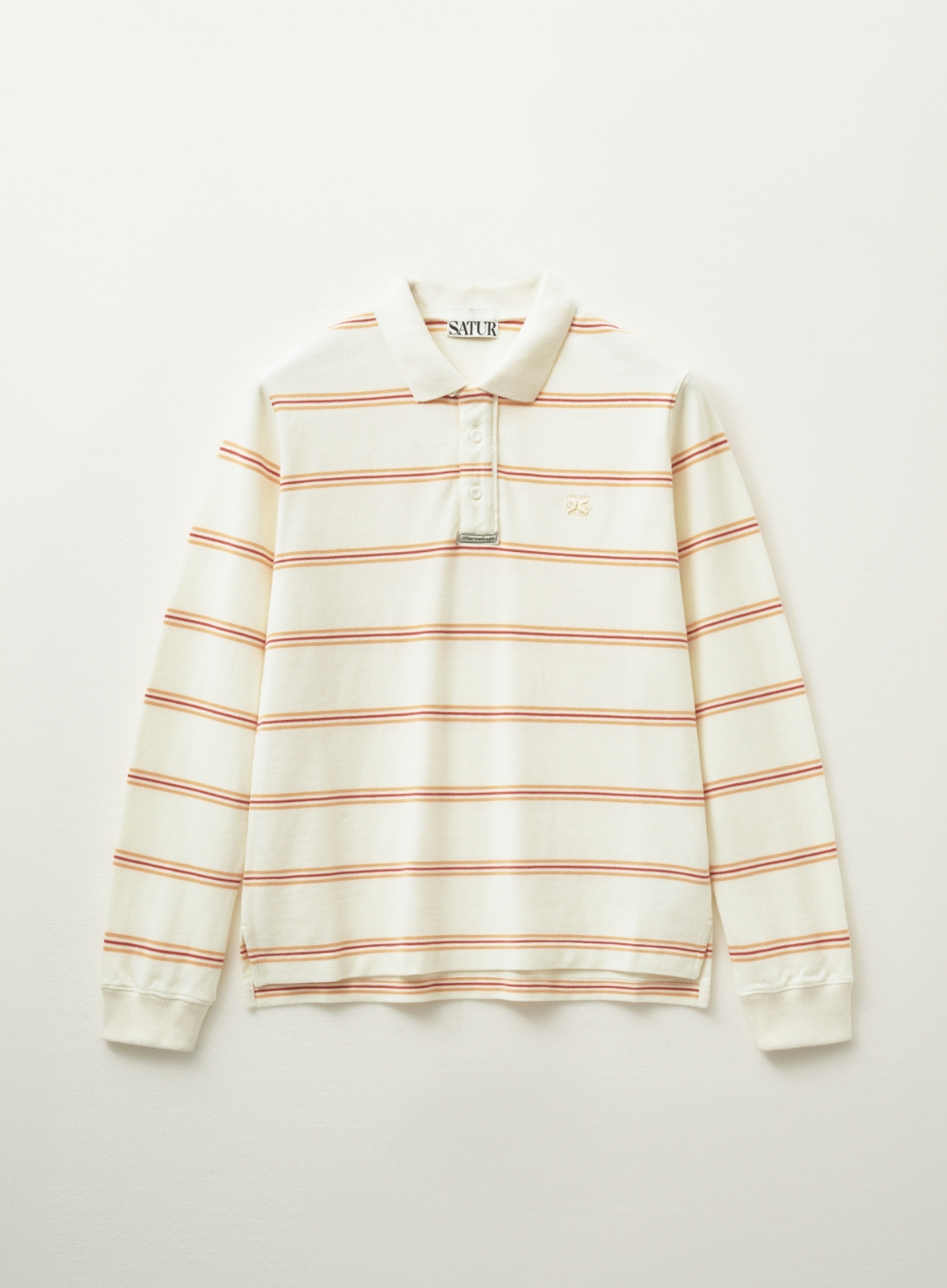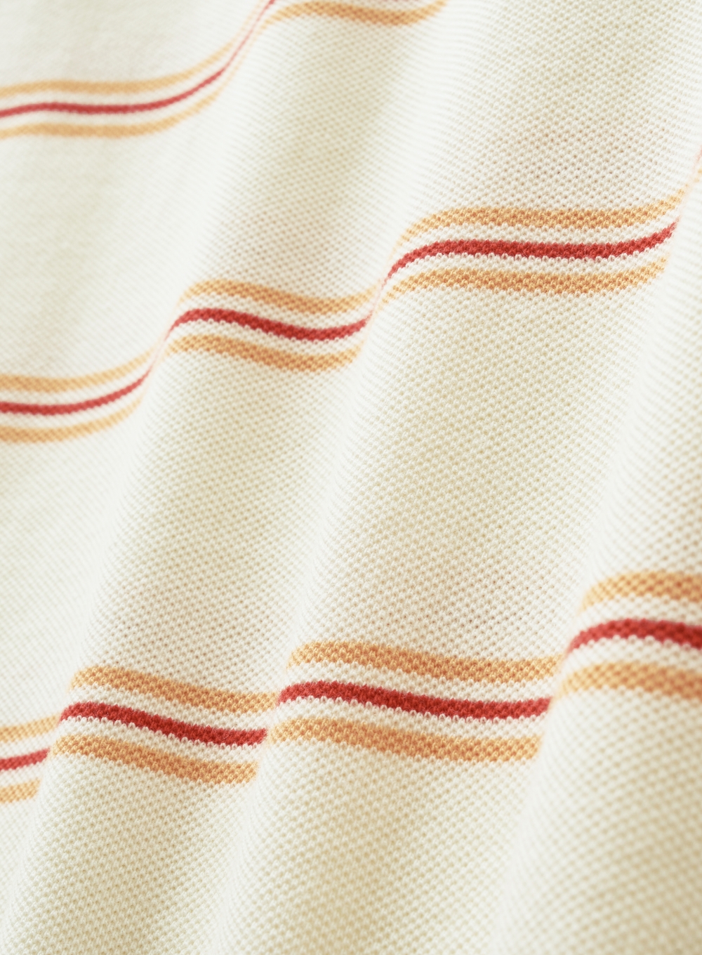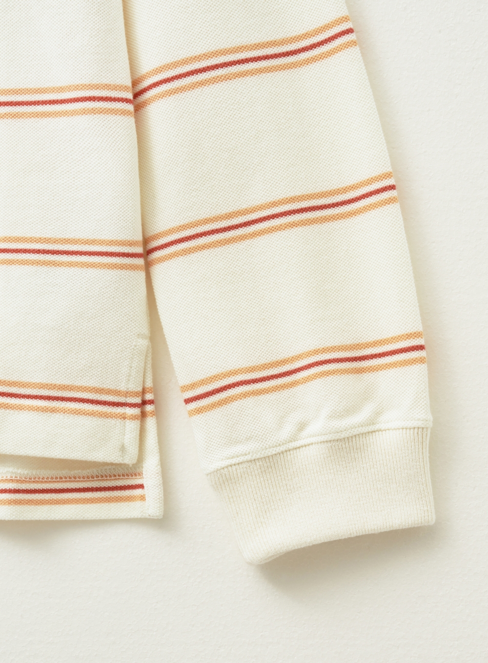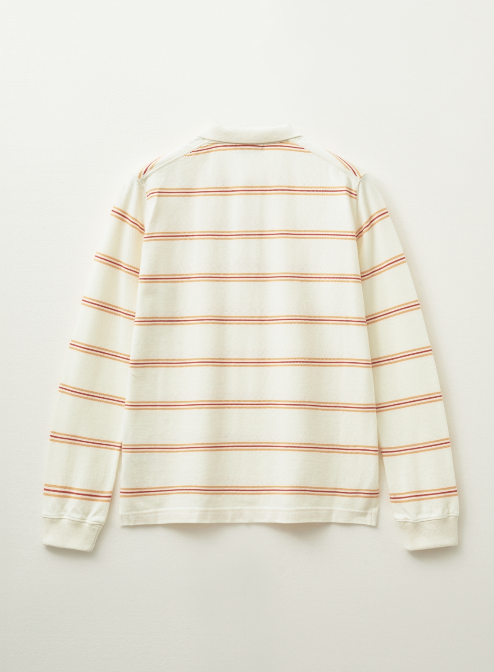 (W) Stripe Pique Polo Long Sleeve - Ivory