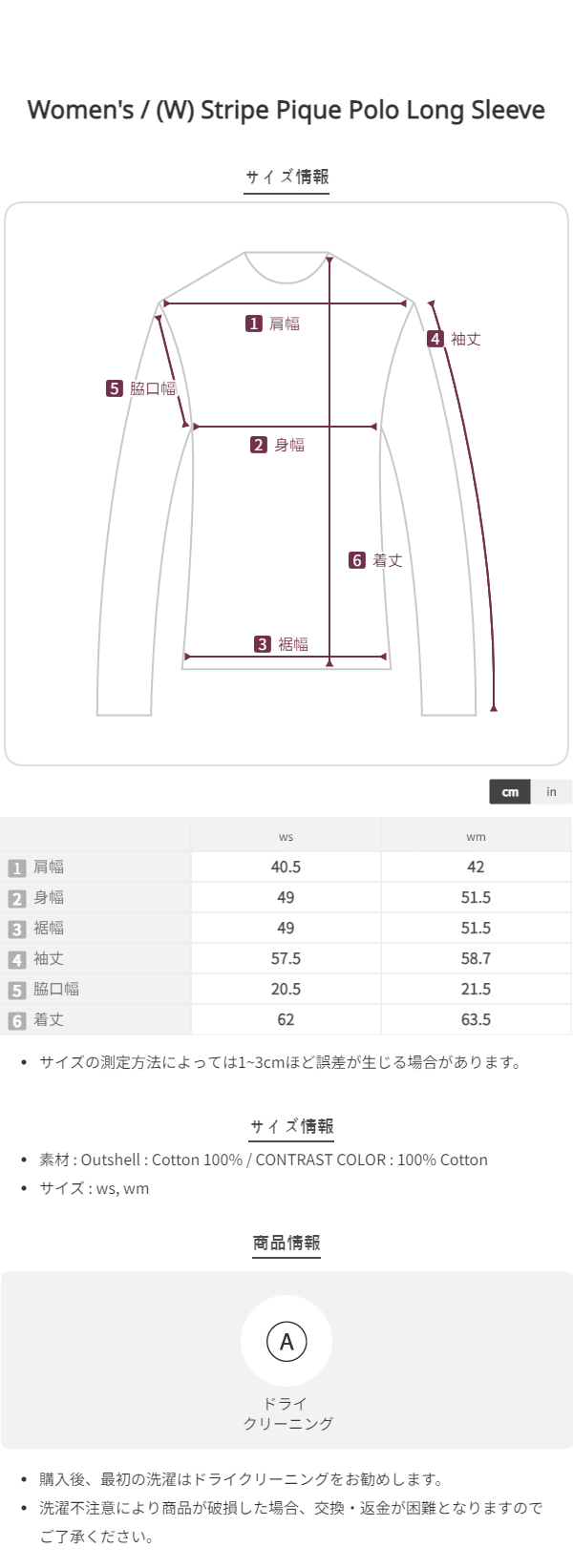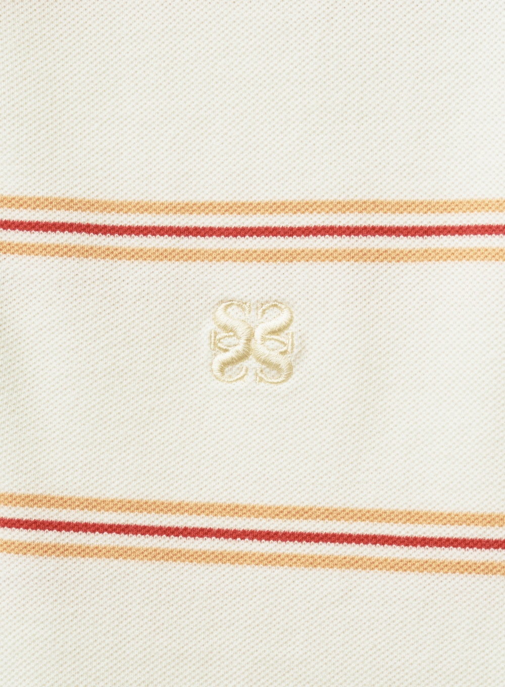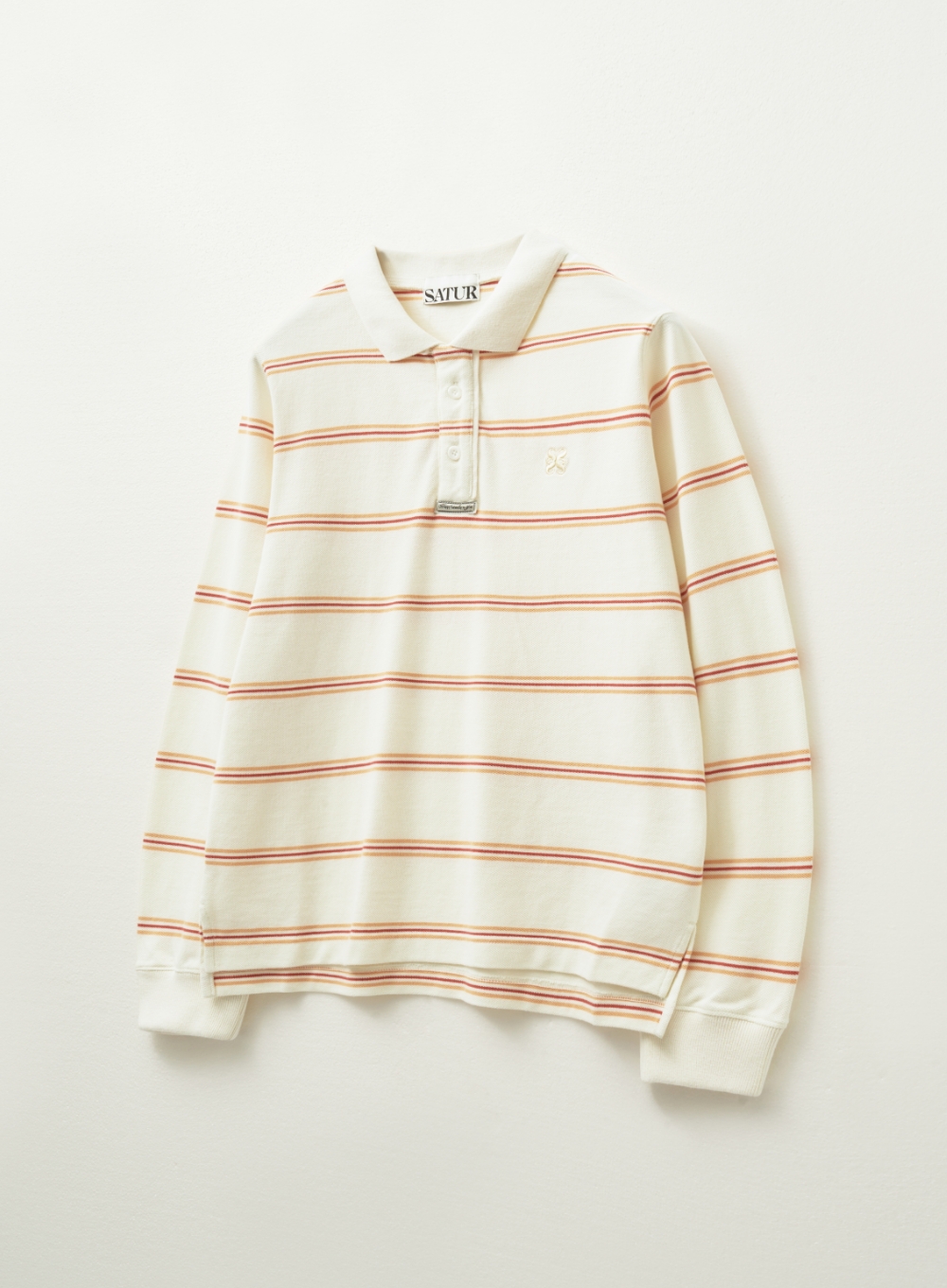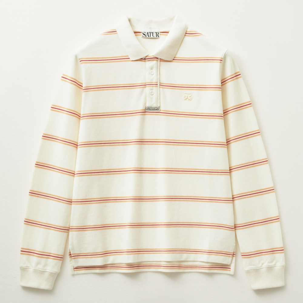 (W) Stripe Pique Polo Long Sleeve - Ivory