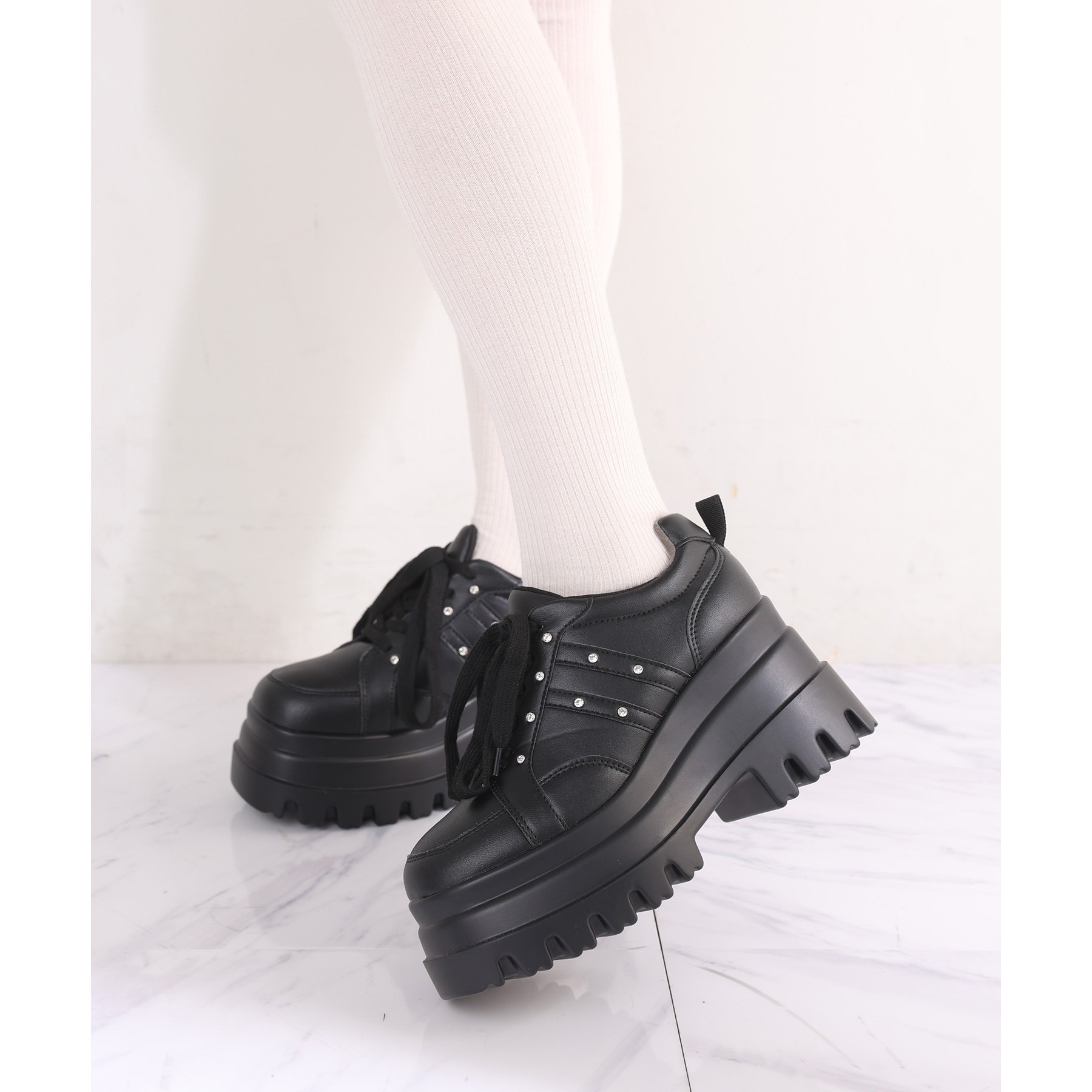 ボリューム感のあるトリプルソールが目を引くヒールスニーカー。