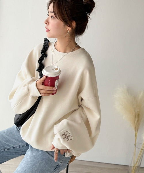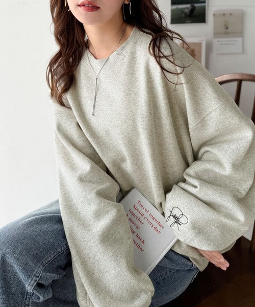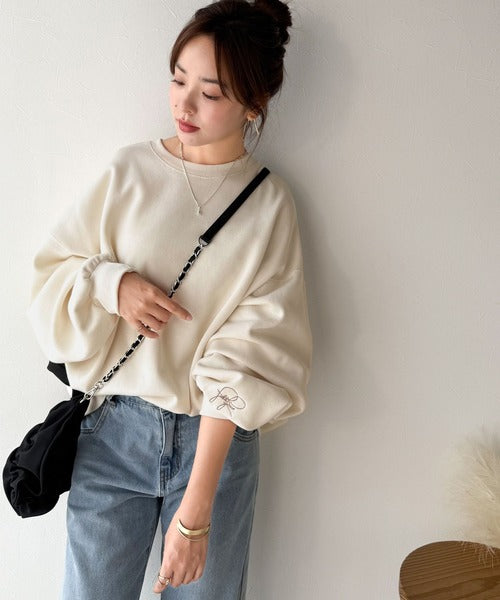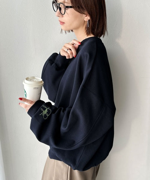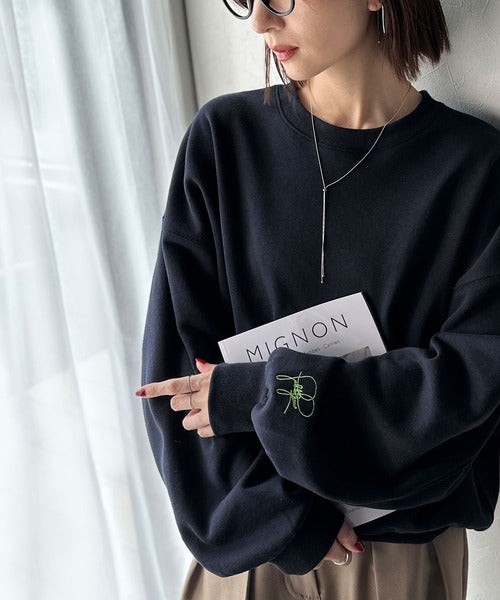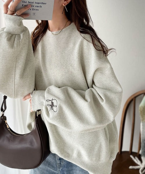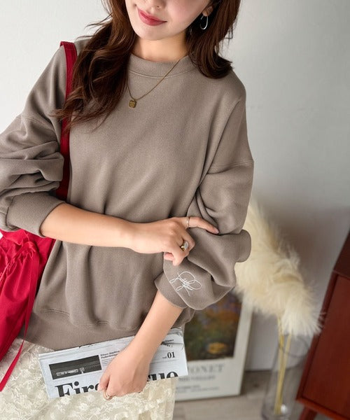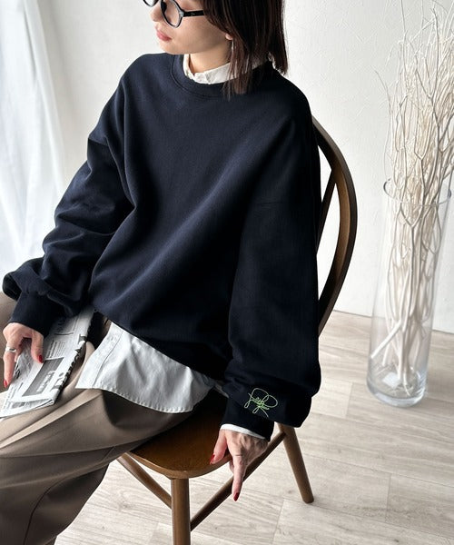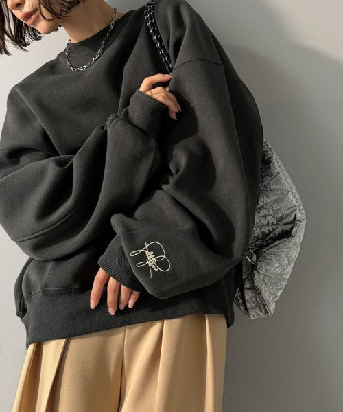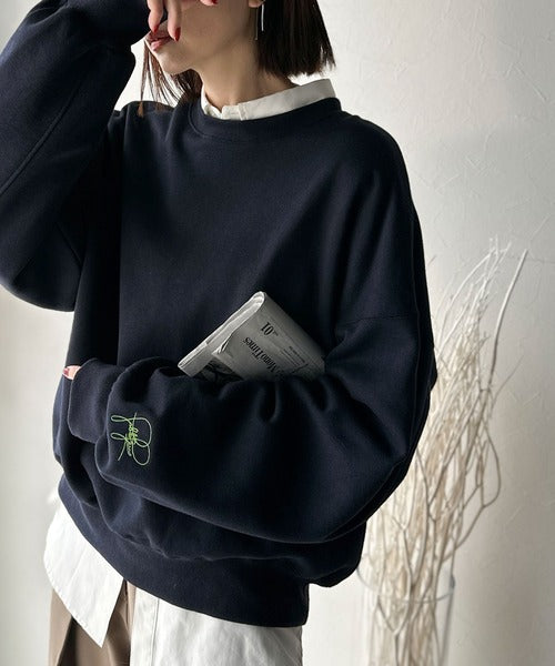 袖先のさりげない刺繍がアクセント。サインロゴ刺繍裏起毛スウェット ce1260464