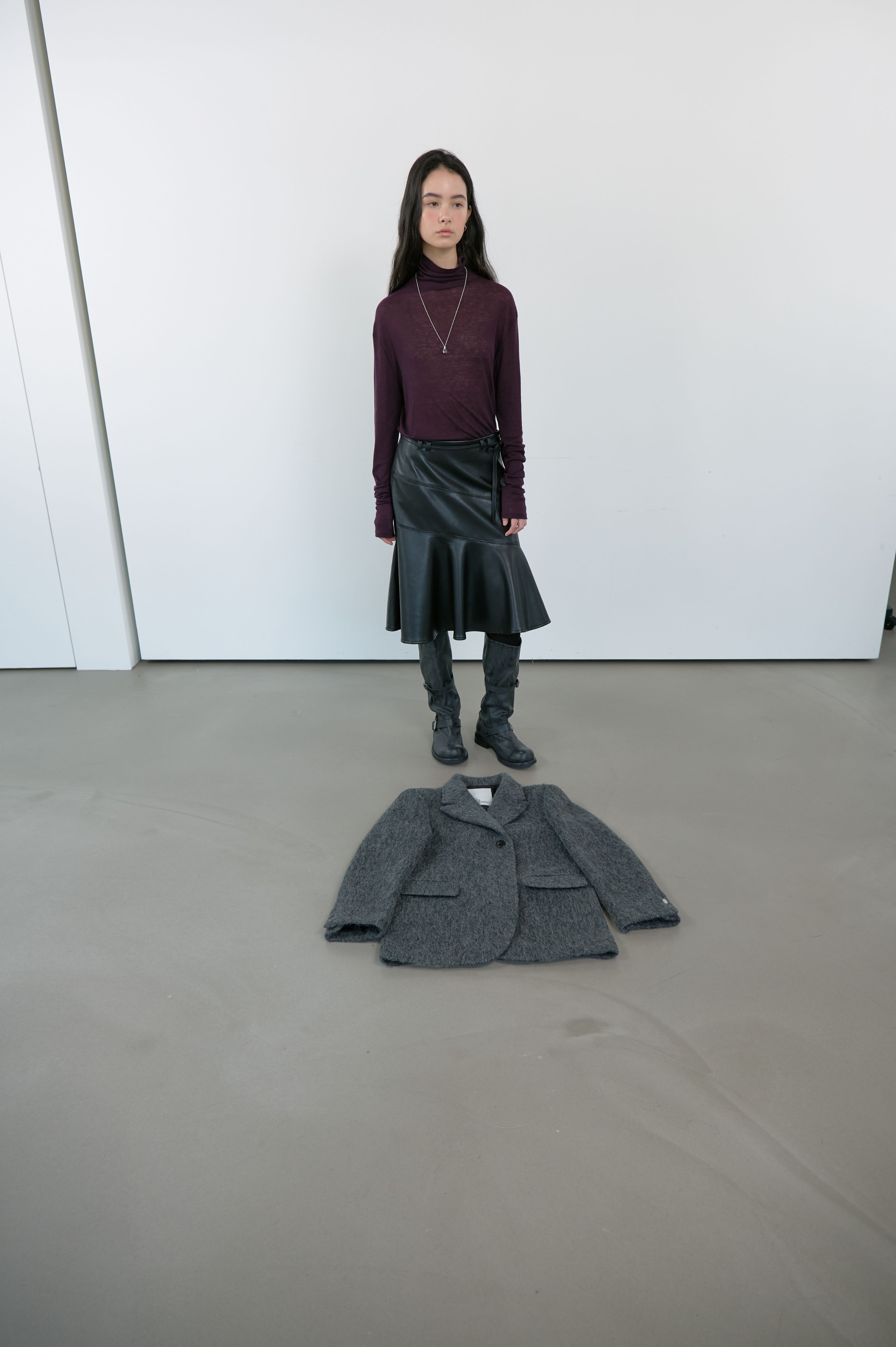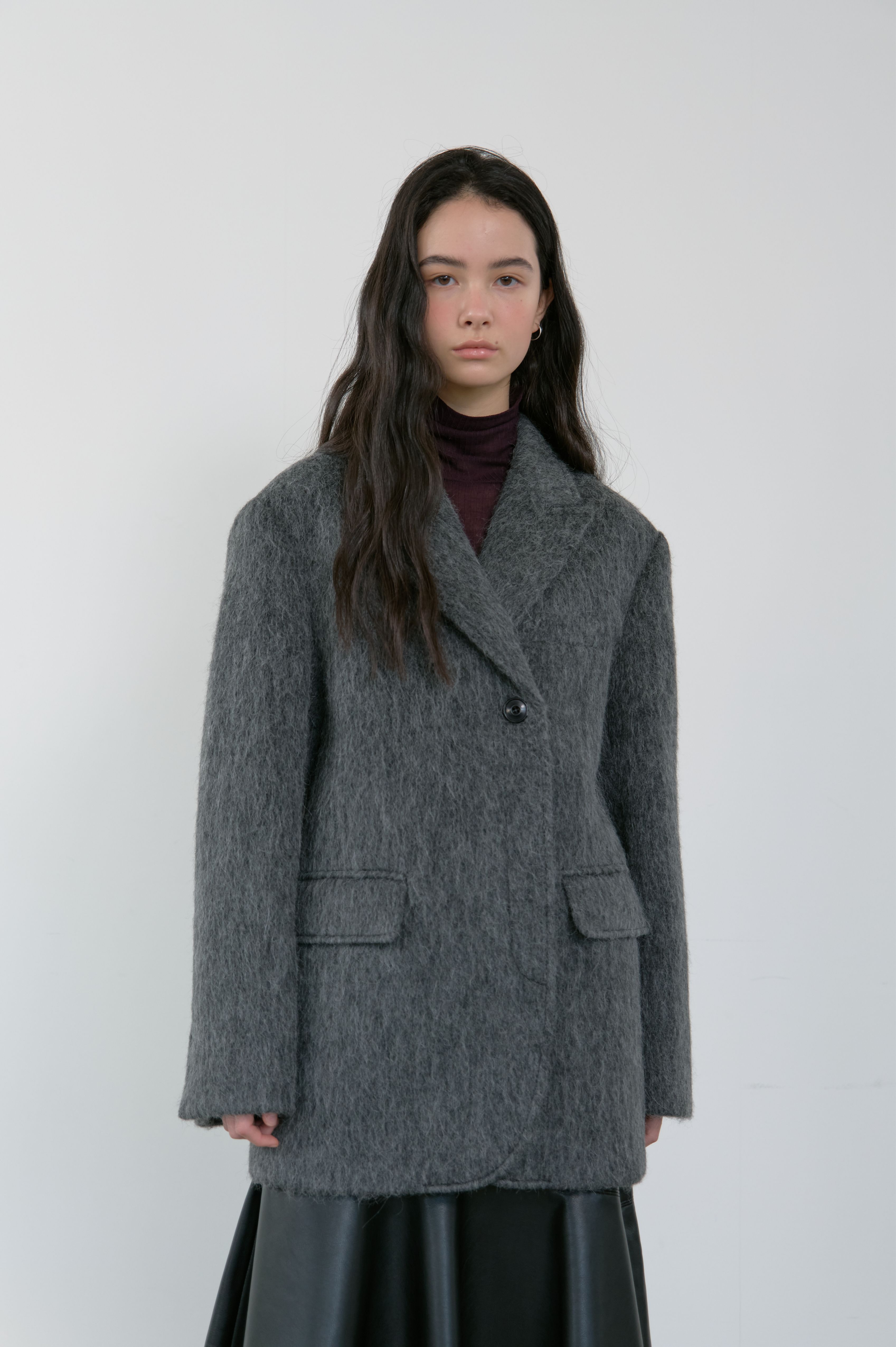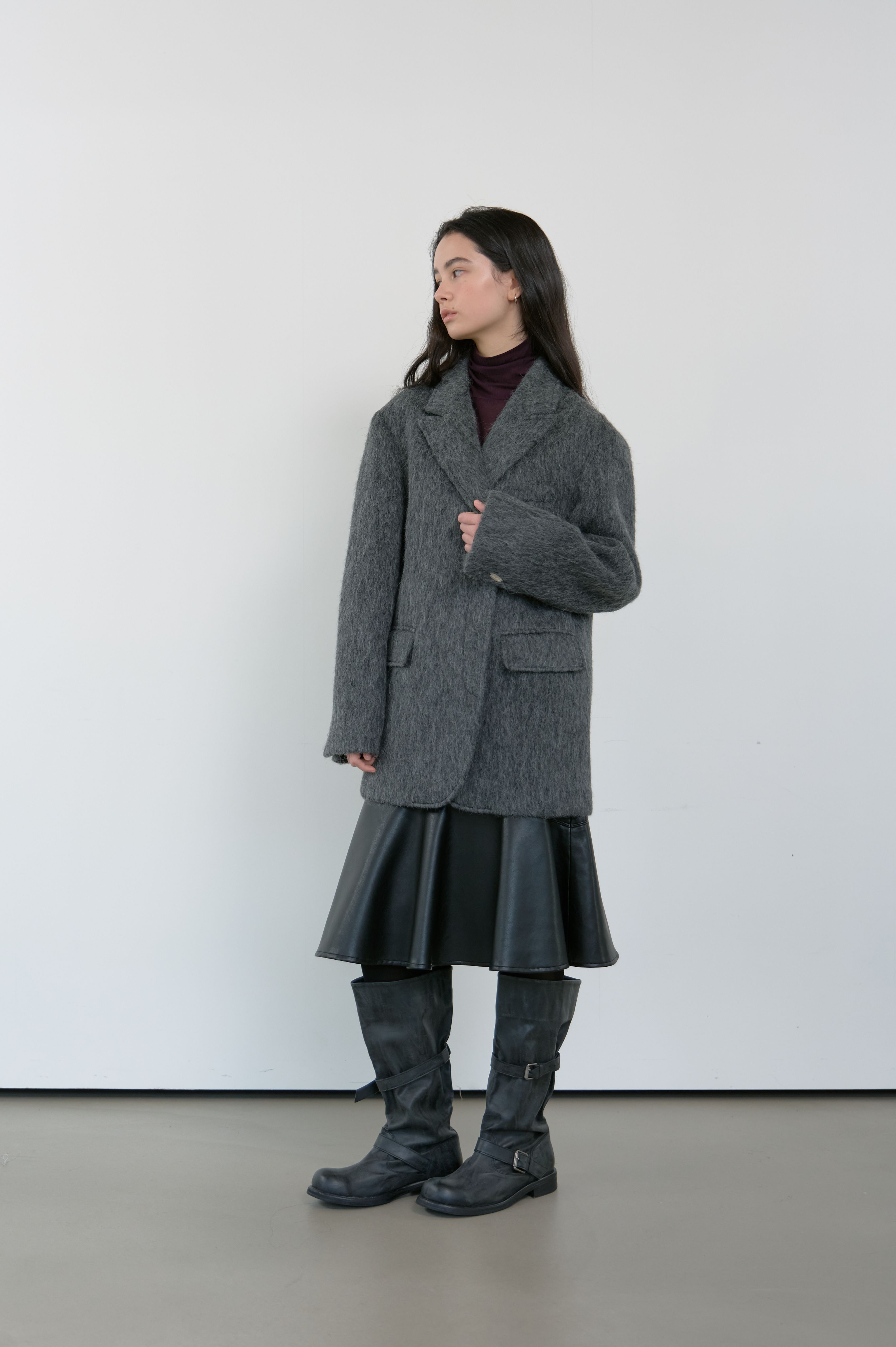 HAIRY ALPACA DOUBLE HALF COAT_CHARCOAL