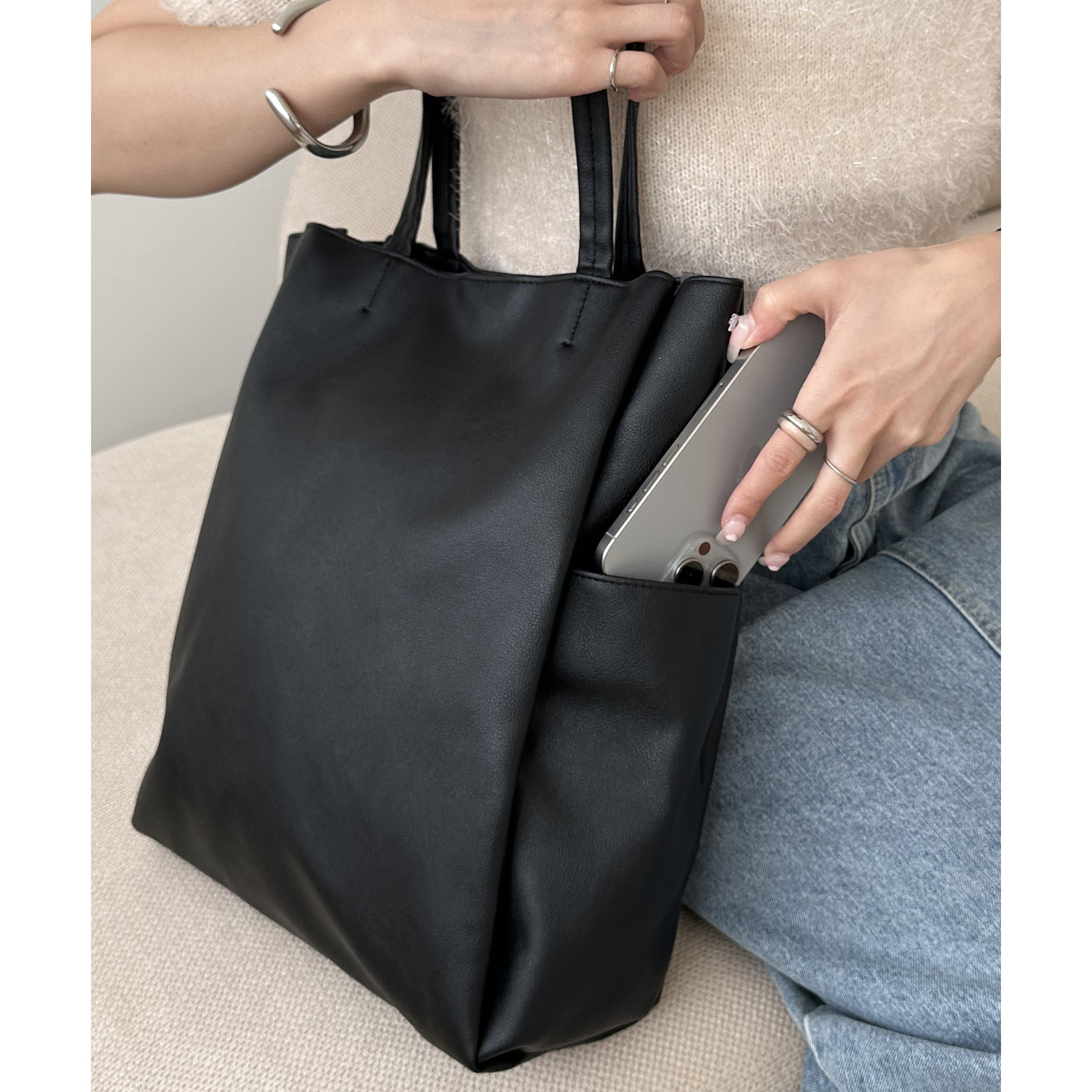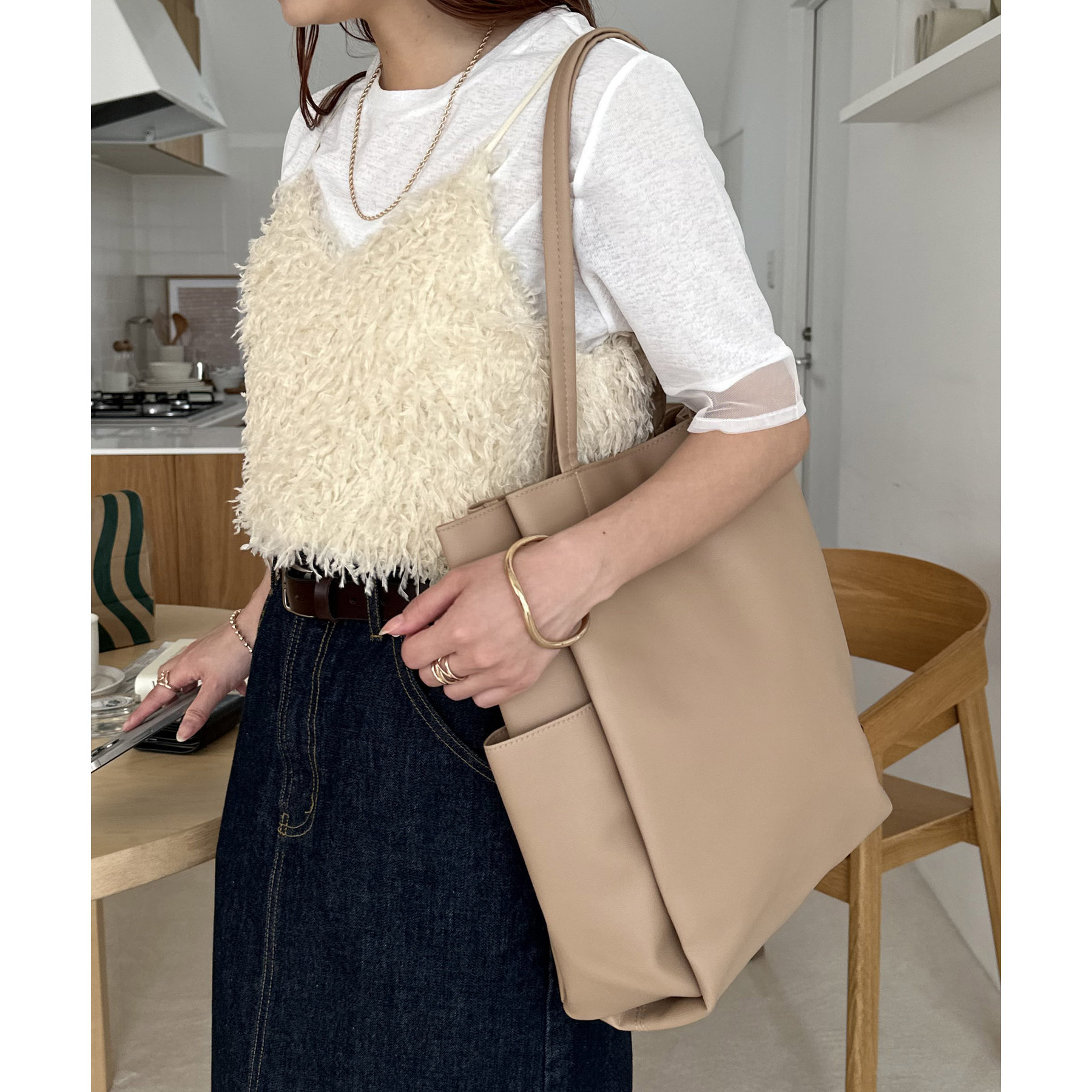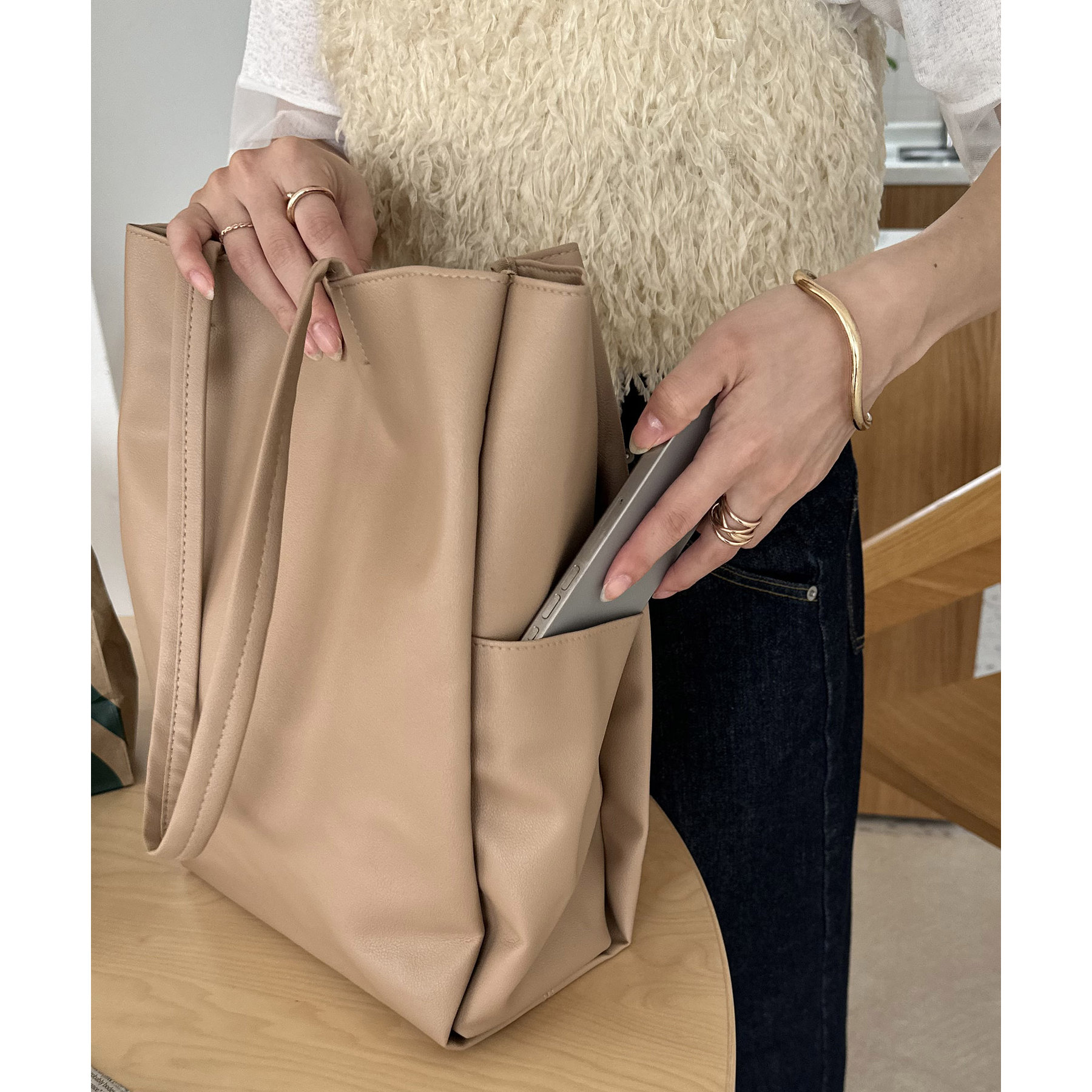 内側には仕切りポケットをしっかり備えていて、荷物を整理整頓しながら収納することができます◎A4サイズもすっぽり入るから、通勤や通学にもおすすめです♪シンプルなデザインなので、どんなコーデにも合わせやすいのがポイント。きちんと感と使いやすさを両立した、頼れる相棒バッグです。