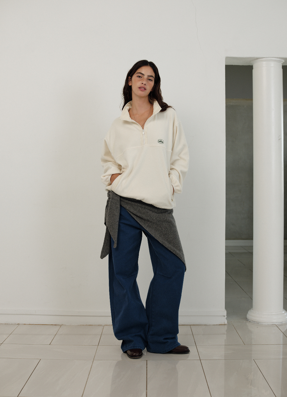 【購入特典】Laska Fleece Half-Zip Pullover_Ivory