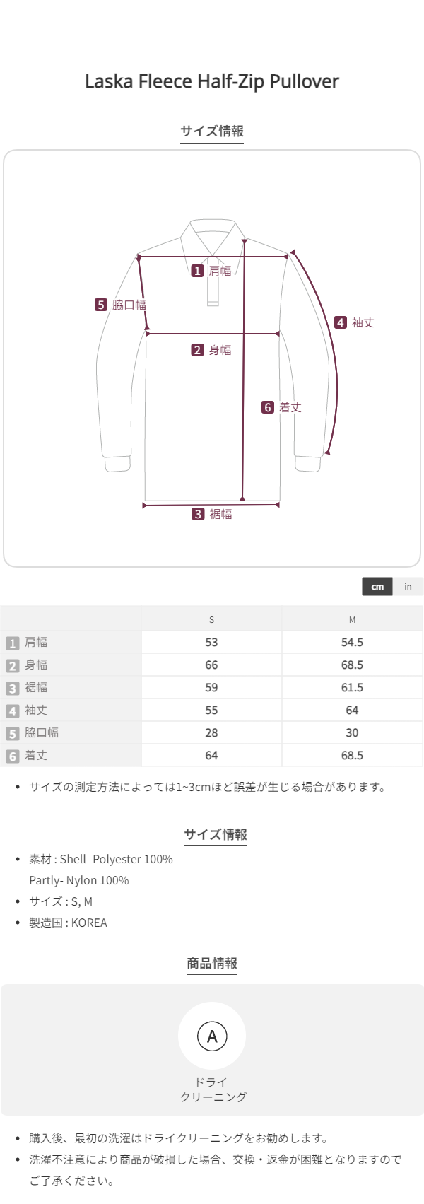 ハーフジップ、両袖口のバンディング、サイド配色ジッパーポケットなどの実用的なディテール