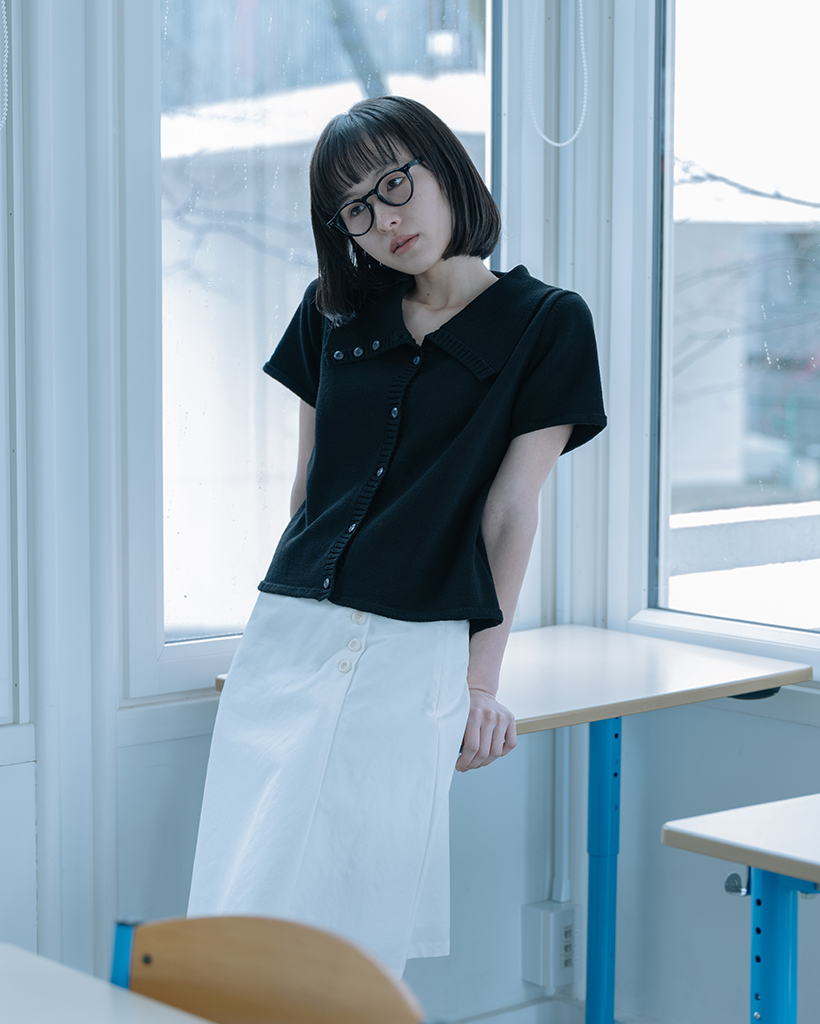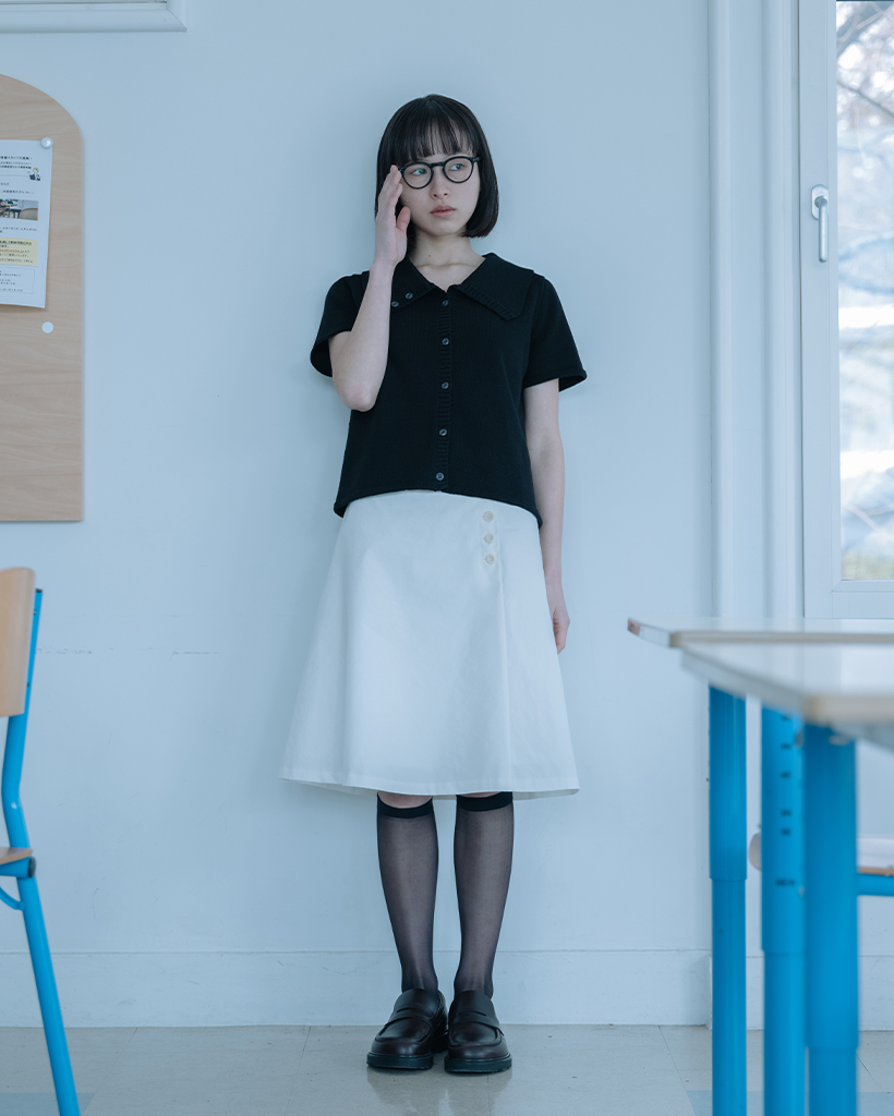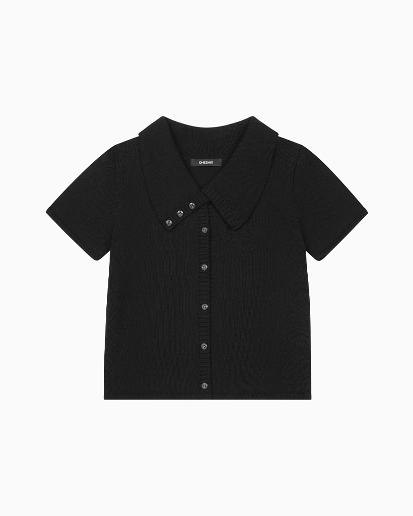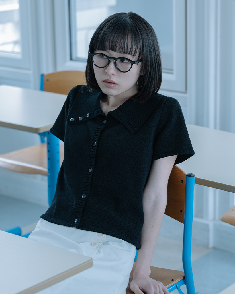 SAILOR COLLAR HALF CARDIGAN, BLACK