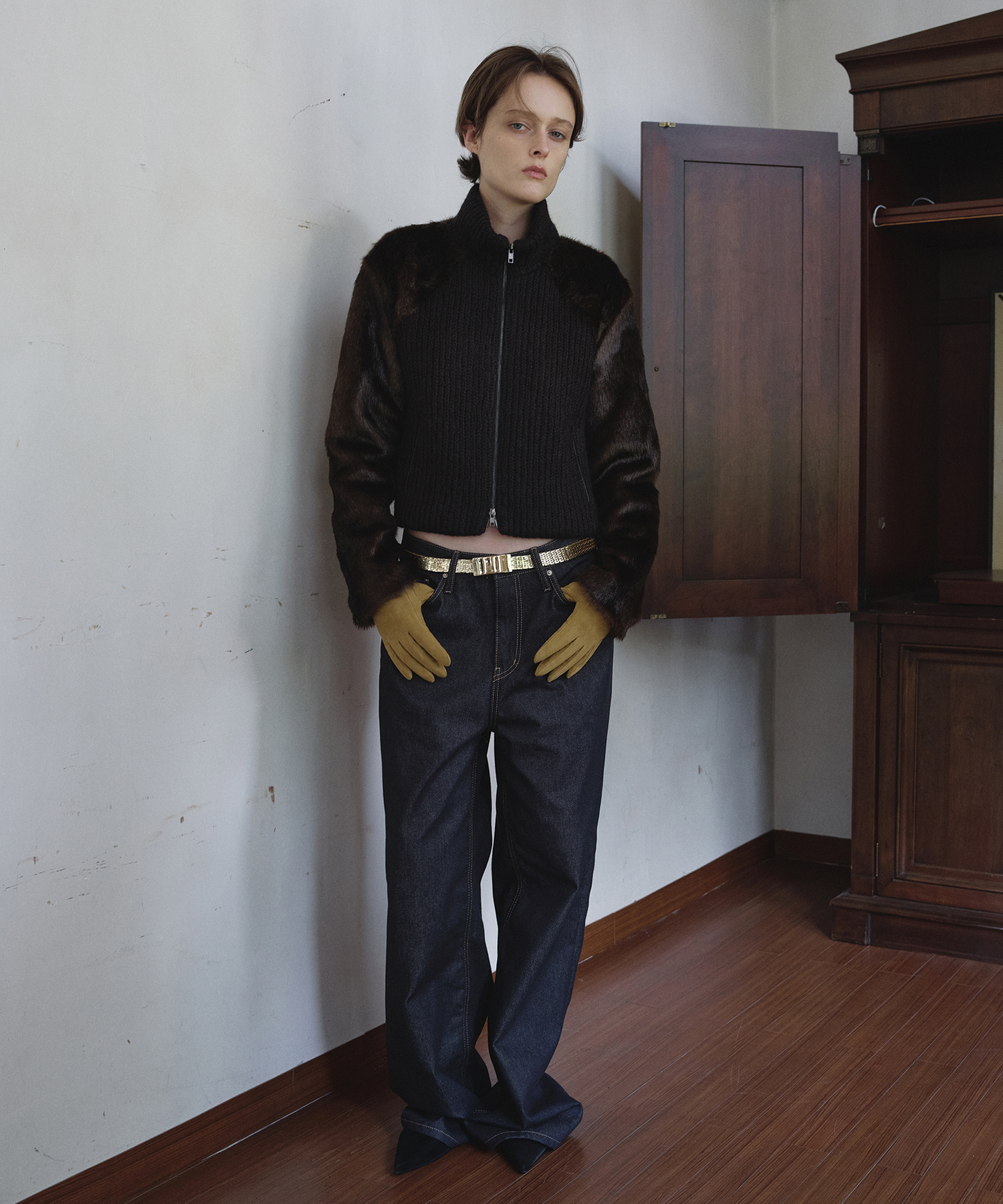 セミクロップ丈のスタンダードフィットで、ファー特有のボリューム感が上半身ラインを補完します。
