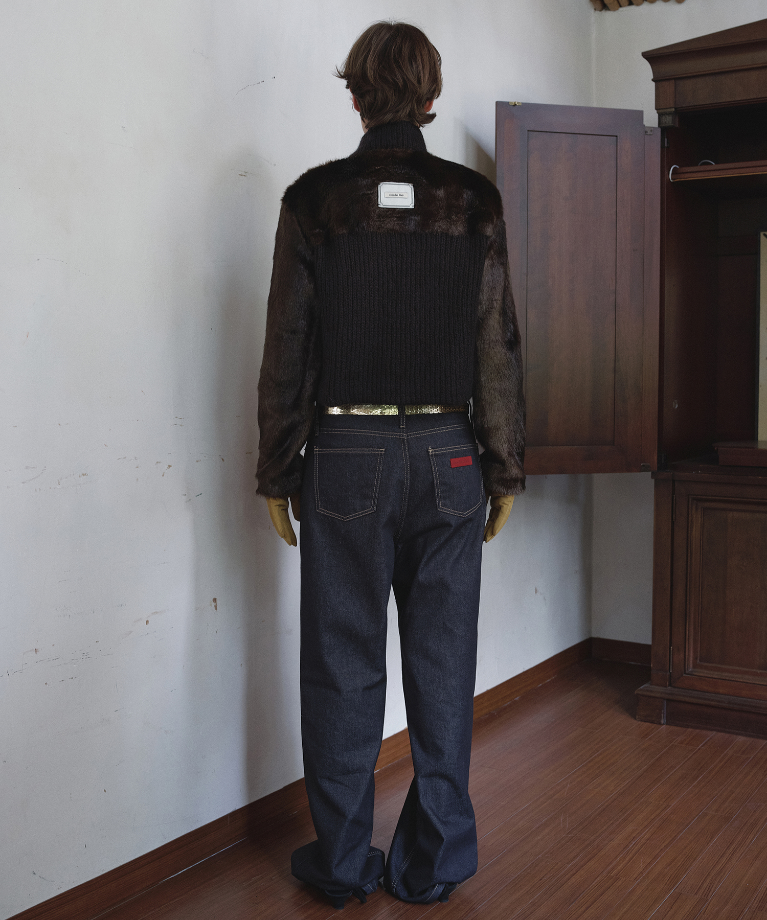 【購入特典】FUR COMBI WOOL KNIT JACKET_BLACK BROWN