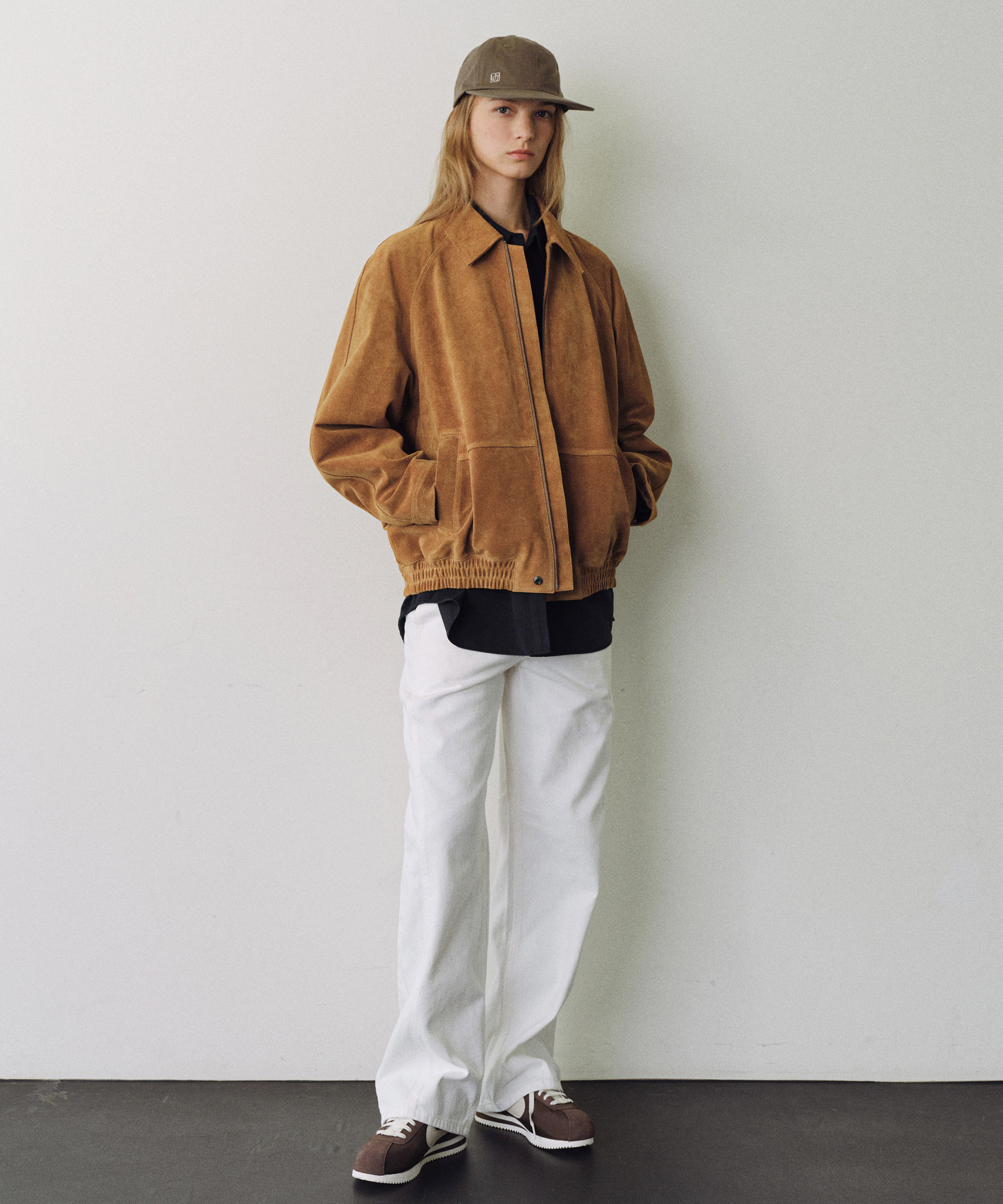 - ボンバージャケットのディテールを活かしカジュアルなムードを出しつつ、素材感による洗練された雰囲気が加わり、さまざまなスタイルに自然にマッチします。