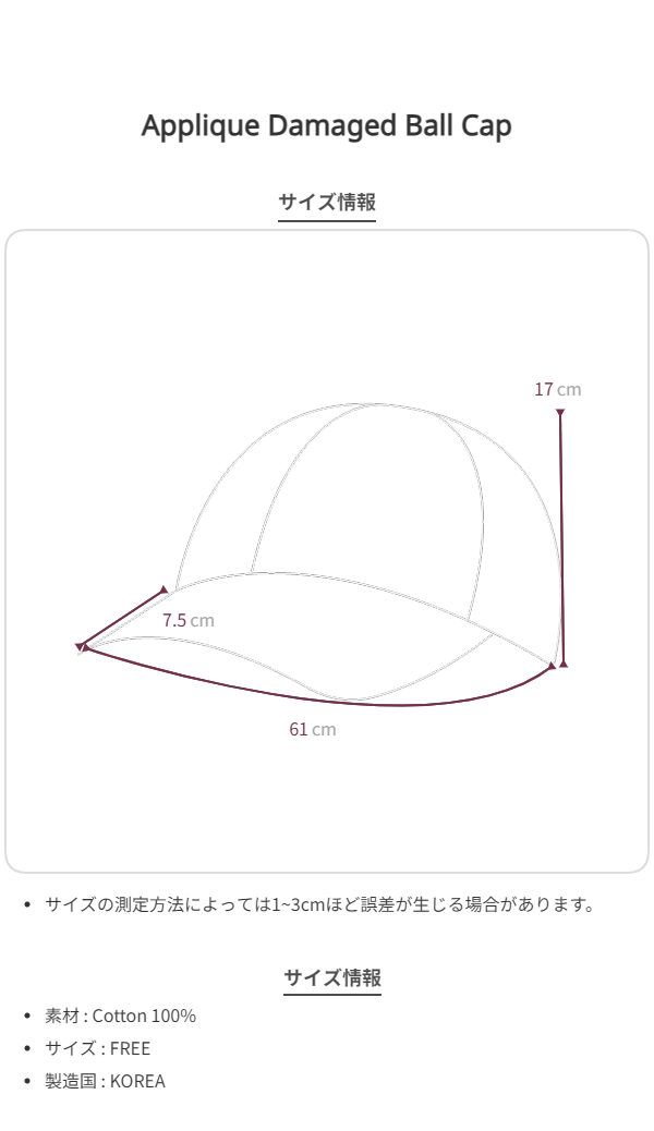 アップリケダメージボールキャップ[ブラック]