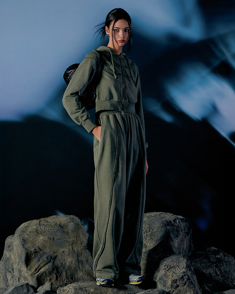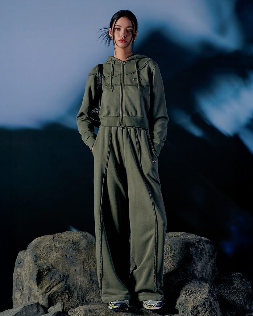 Pigment Cut-Off String Wide Pants - khaki