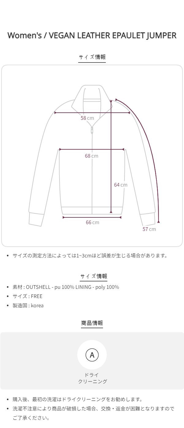 肩章とリベットがポイントのバルキーなシルエットのビーガンレザーのジャンパーです。ヴィンテージで柔らかな質感を持ち、初冬まで着用可能な厚みがあります。構造的な切り替えラインが特徴です。また、大きな立体ポケットとインナーポケットがあり、実用性を高めています。裾の肩章で周囲を調整できるため、2つのシルエットを楽しむことができます。