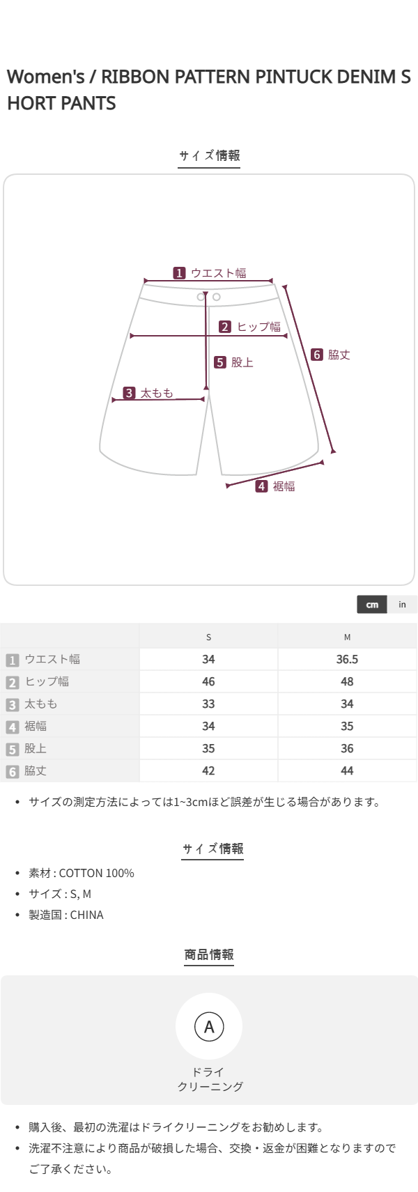 RIBBON PATTERN PINTUCK DENIM SHORT PANTS MEDIUM BLUE