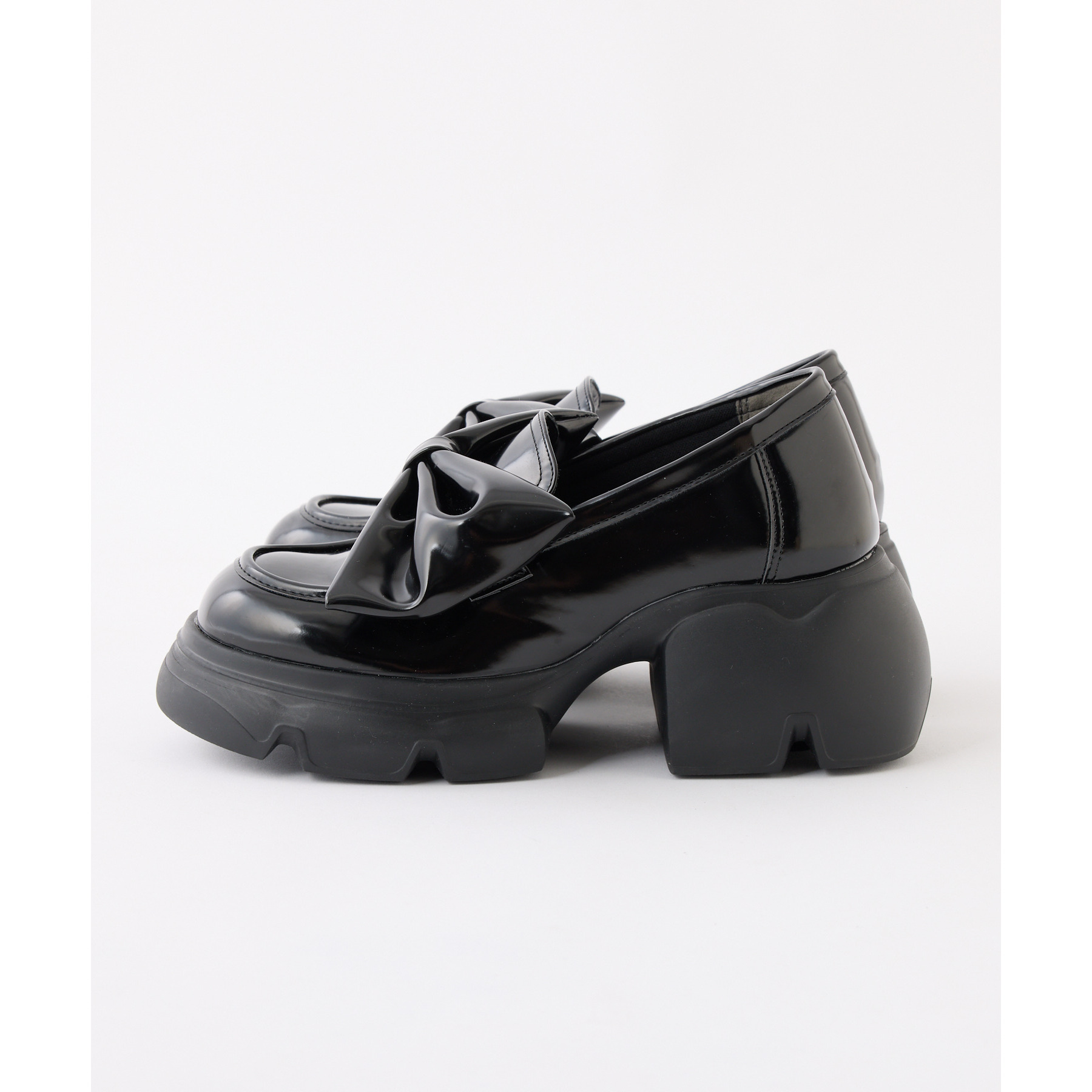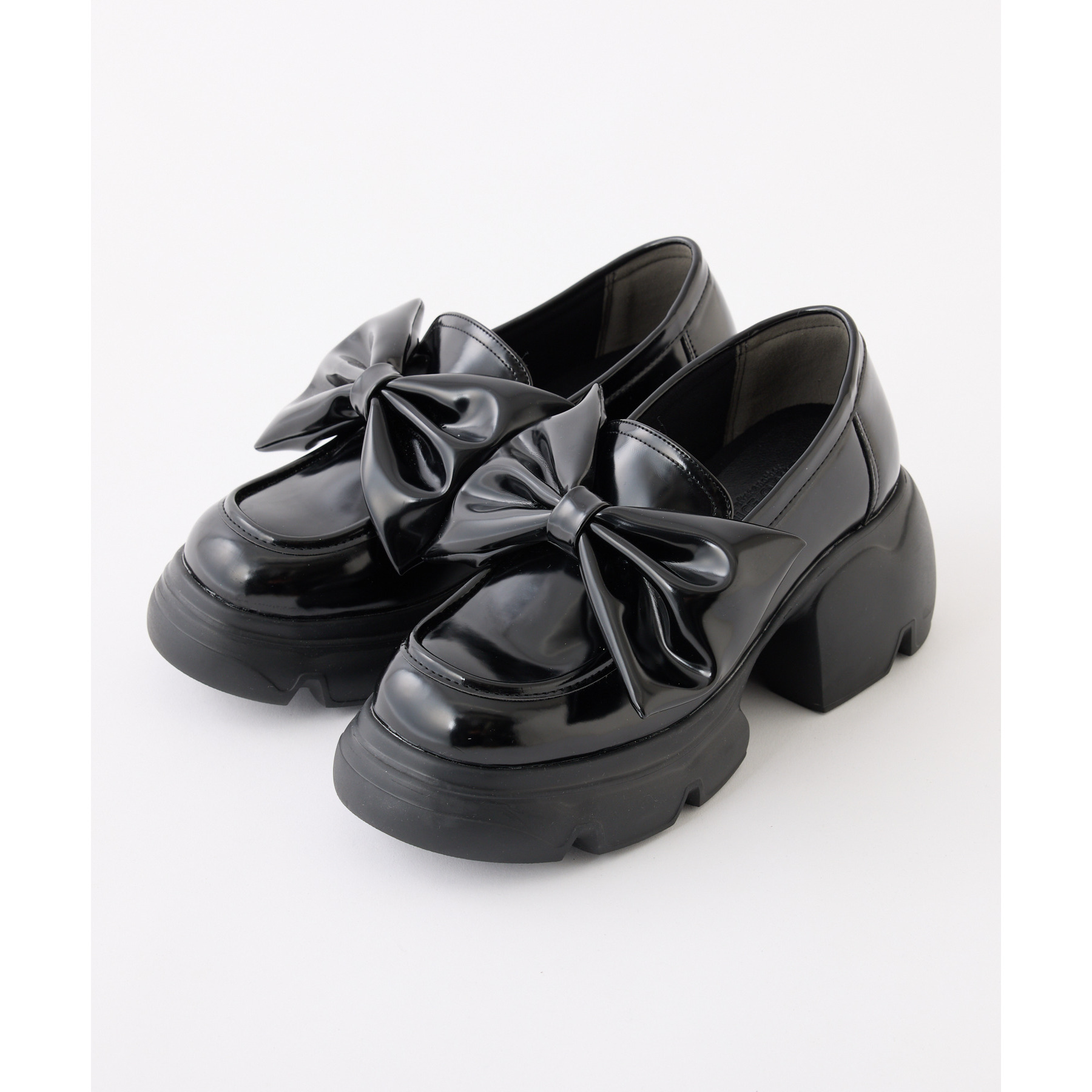 大きめリボンがポイントの厚底ローファー