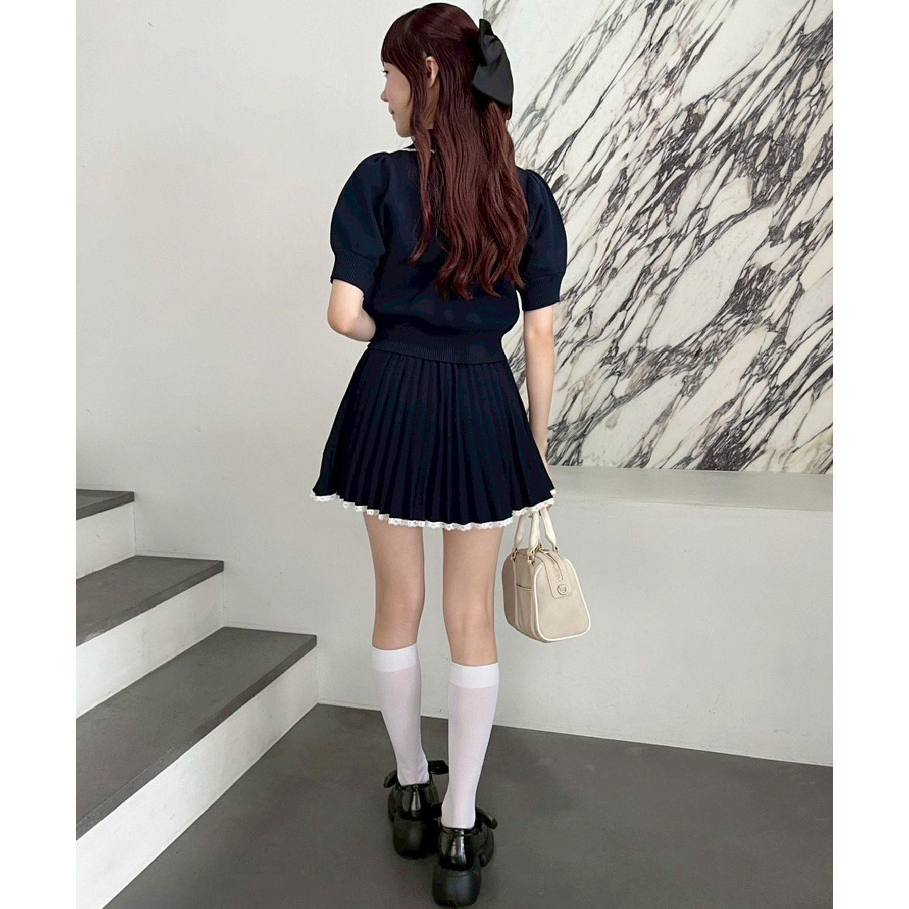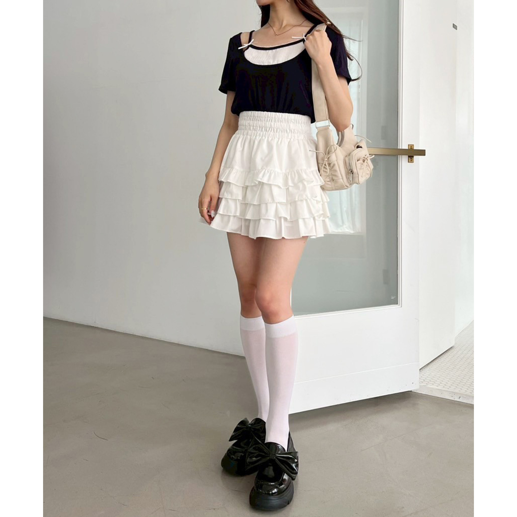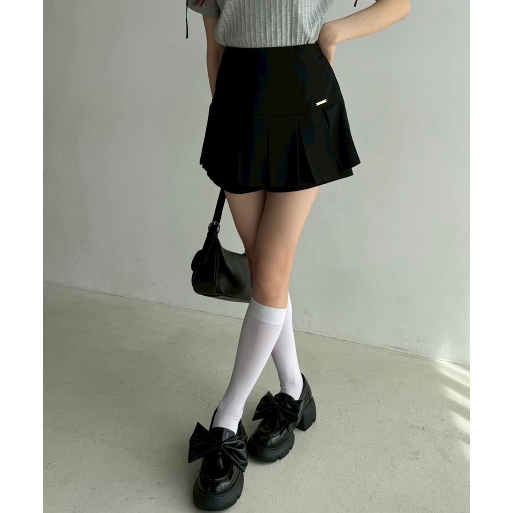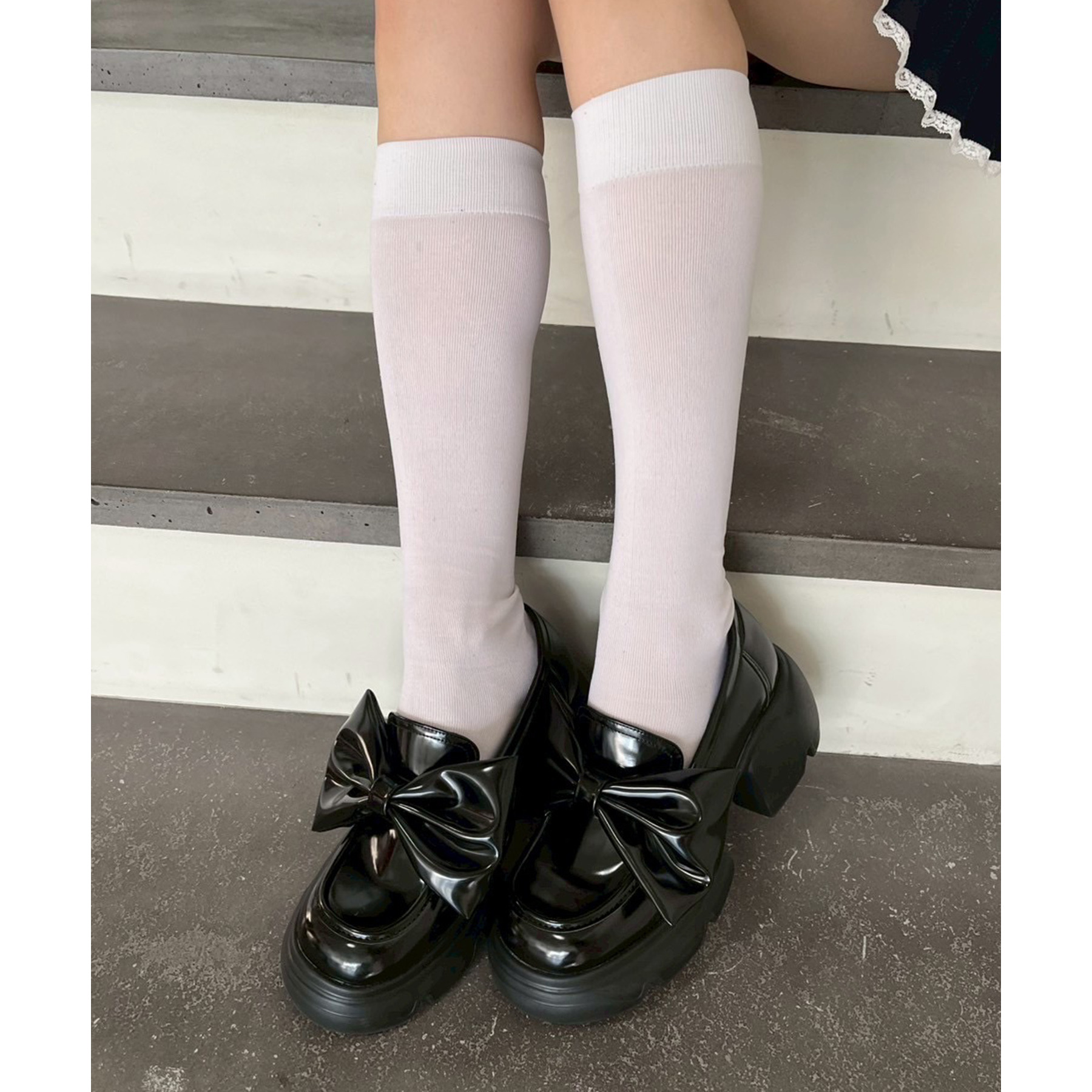 白ソックスやルーズソックスとのスタイリングで、トレンド感のある足元に。