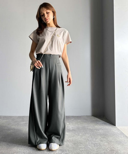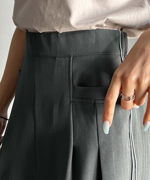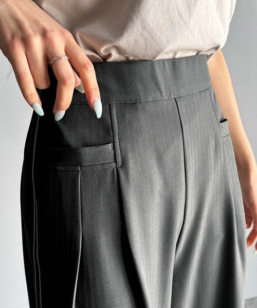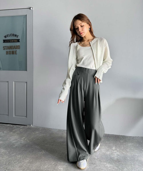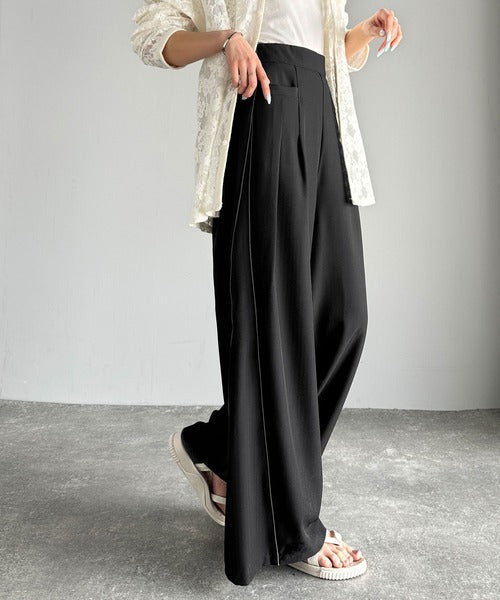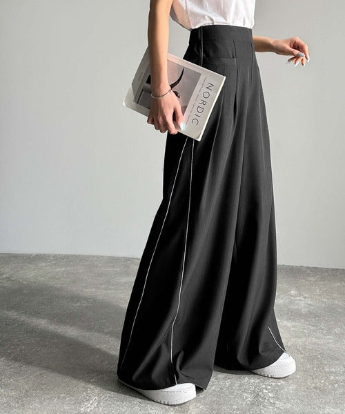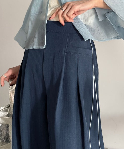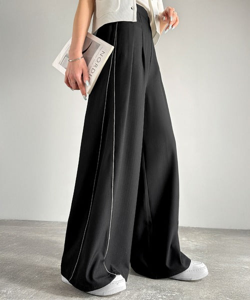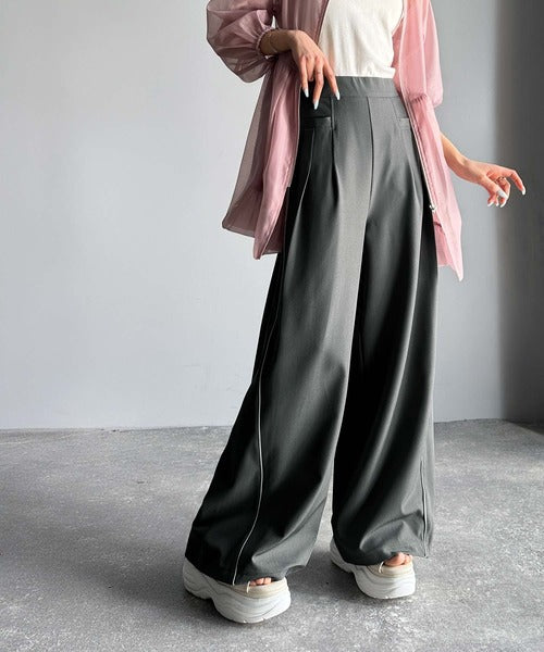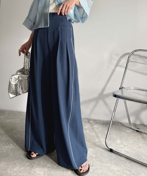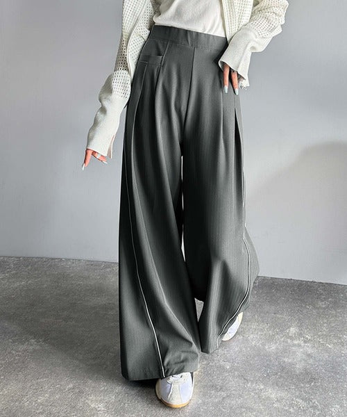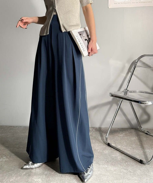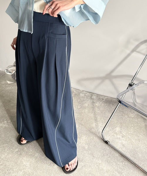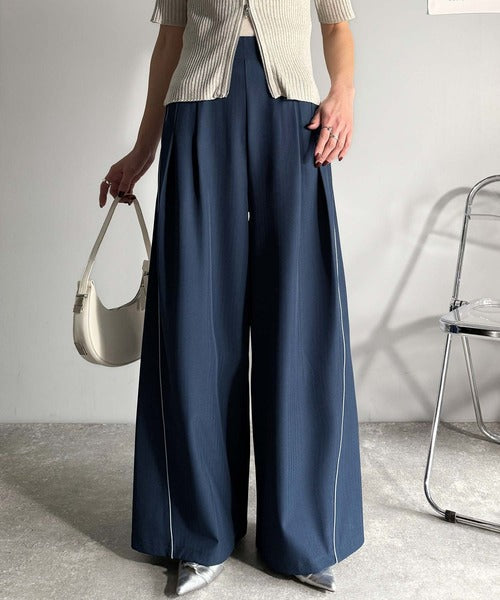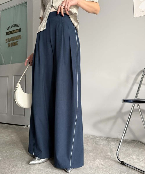 サイドのパイピングデザインがアクセントのワイドパンツ。