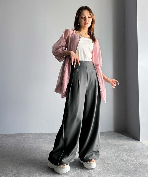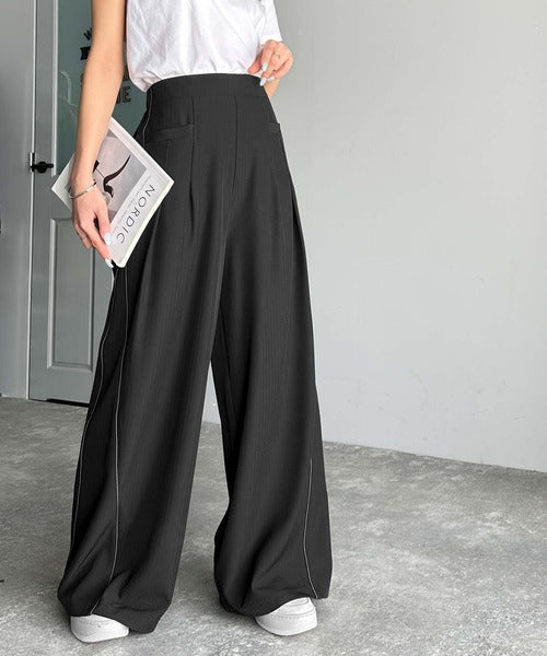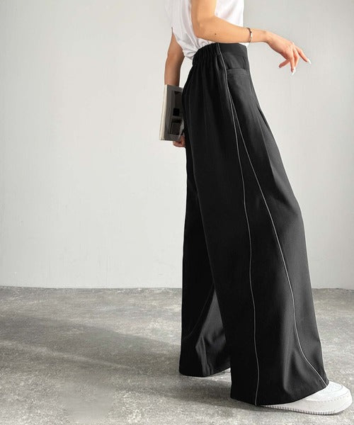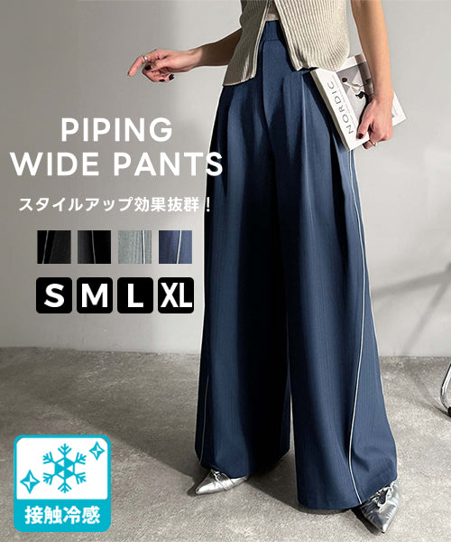 トレンドライクな美シルエット。パイピングジャージワイドパンツ(接触冷感機能・防シワ加工付き) ce0940225