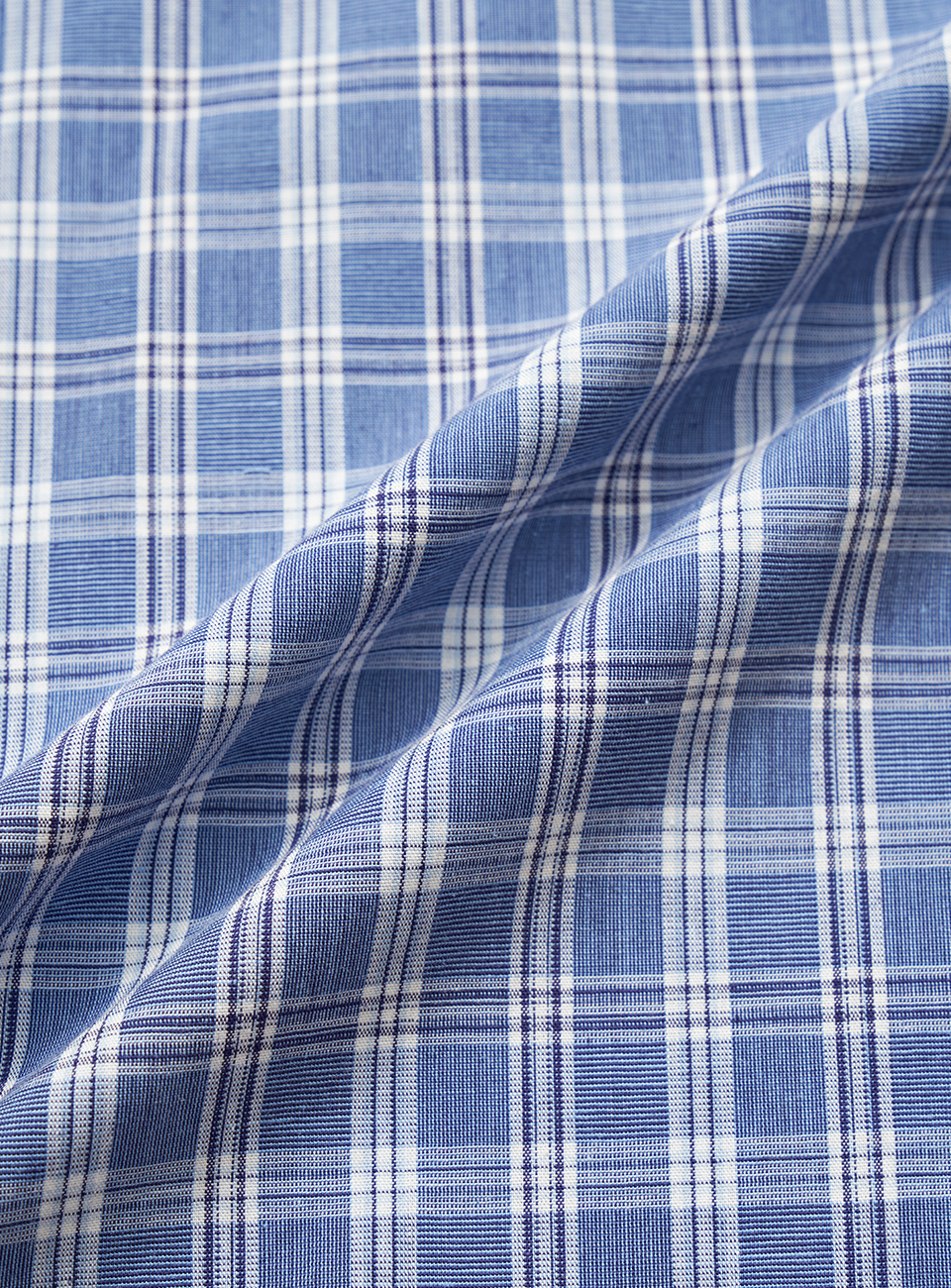 ブルーカラーのチェックパターンと柔らかな質感が特徴のコットンファブリック