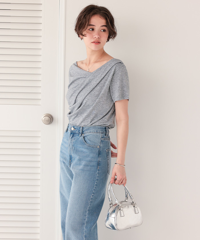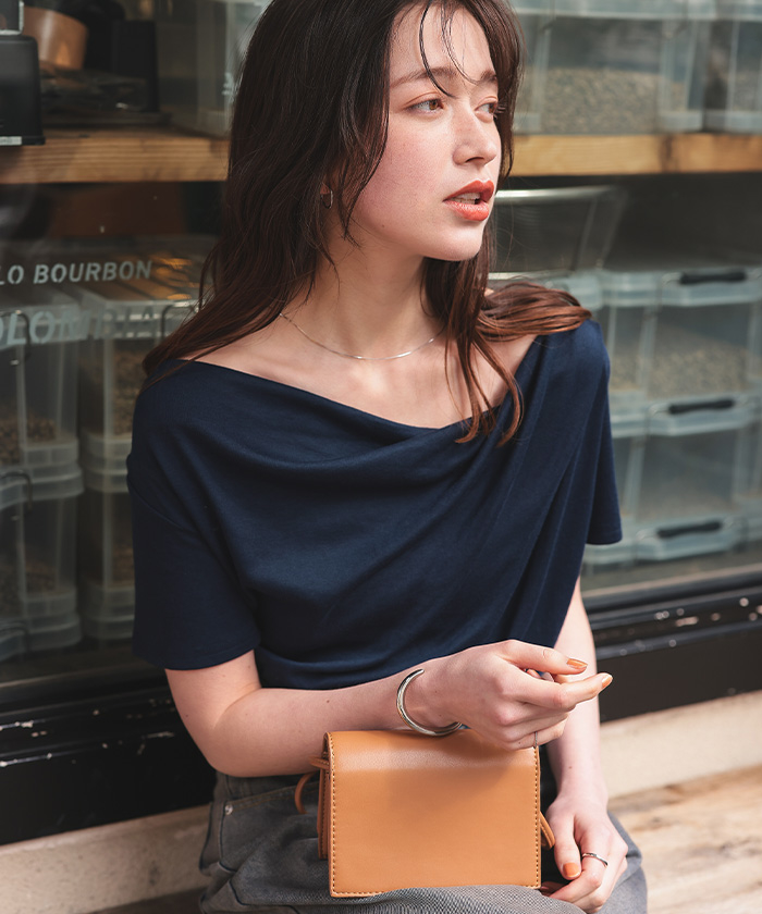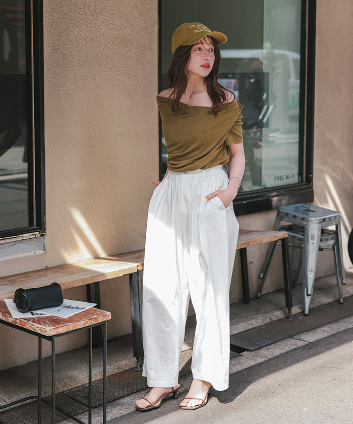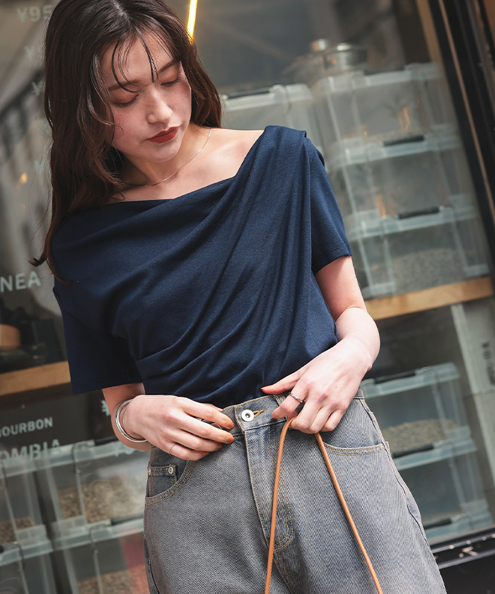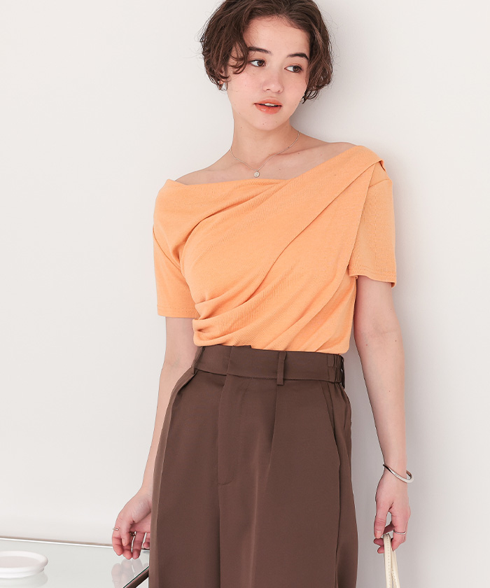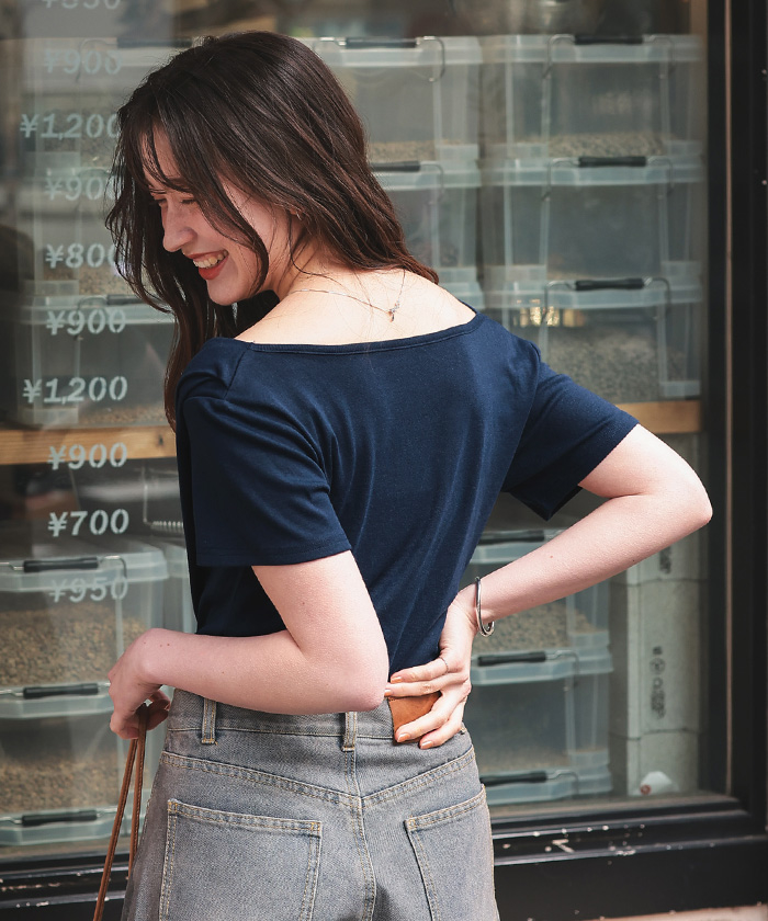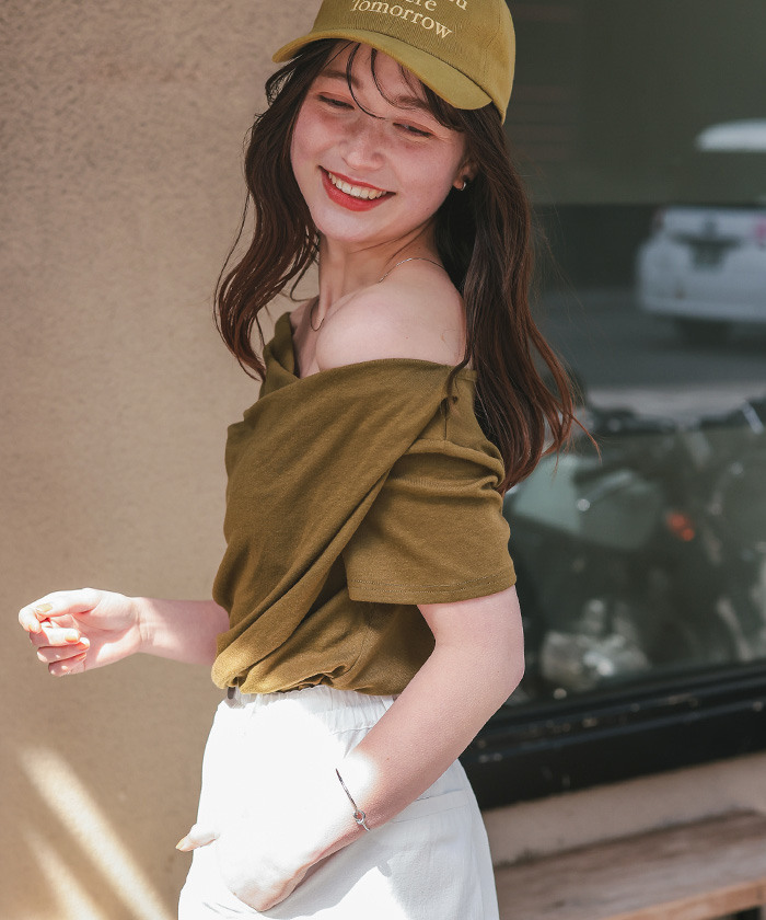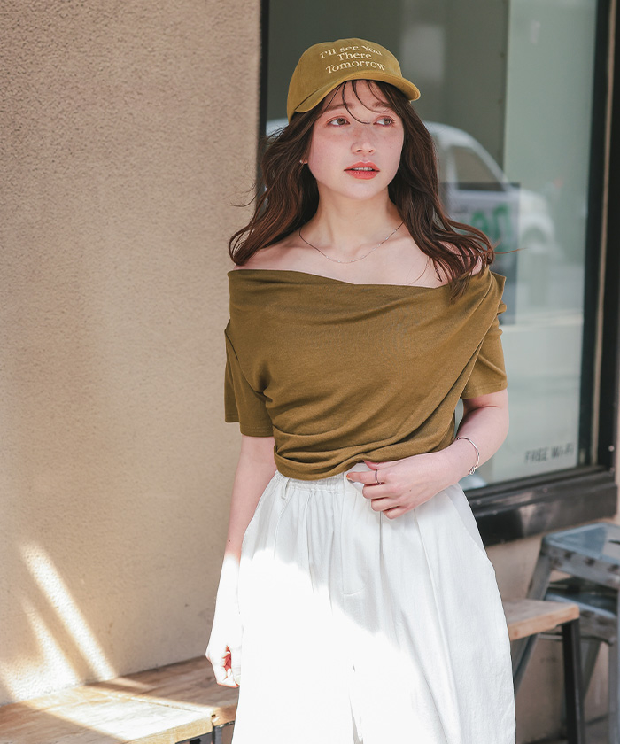 オフショルダーハーフスリーブTシャツ