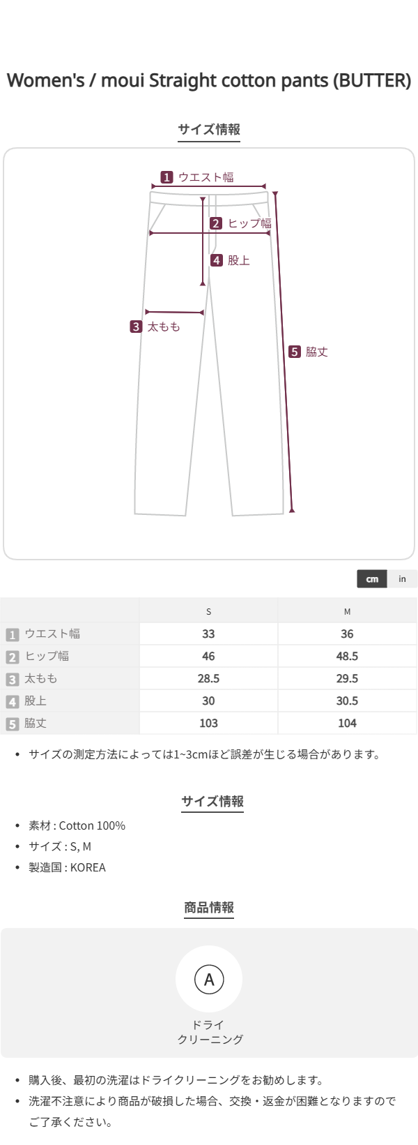 moui Straight cotton pants (BUTTER)