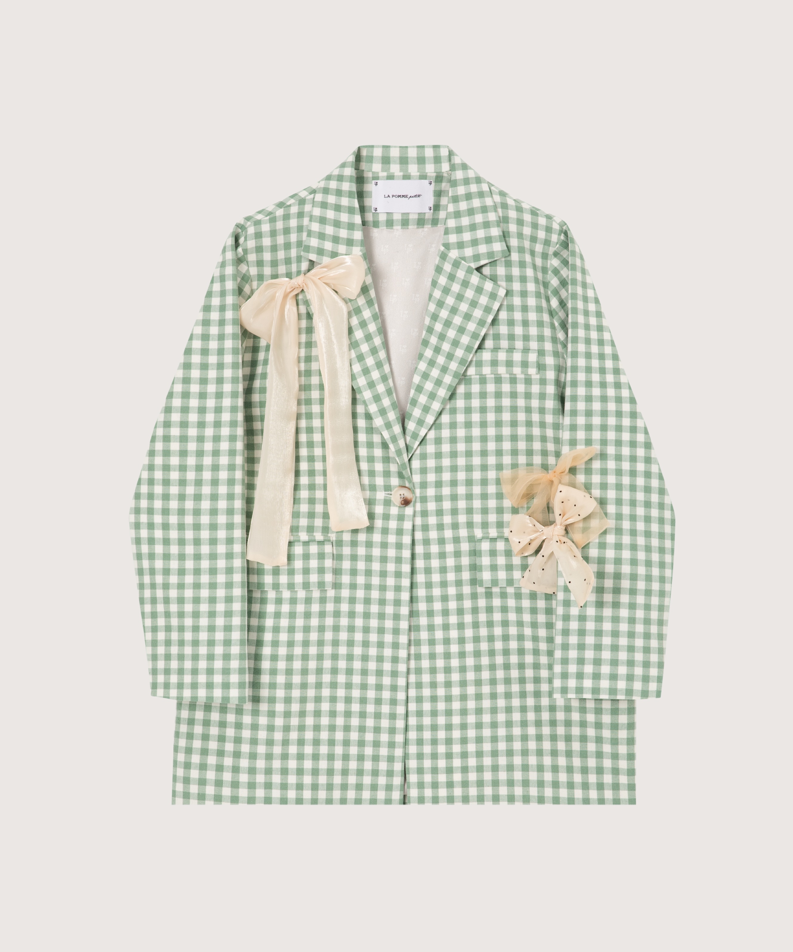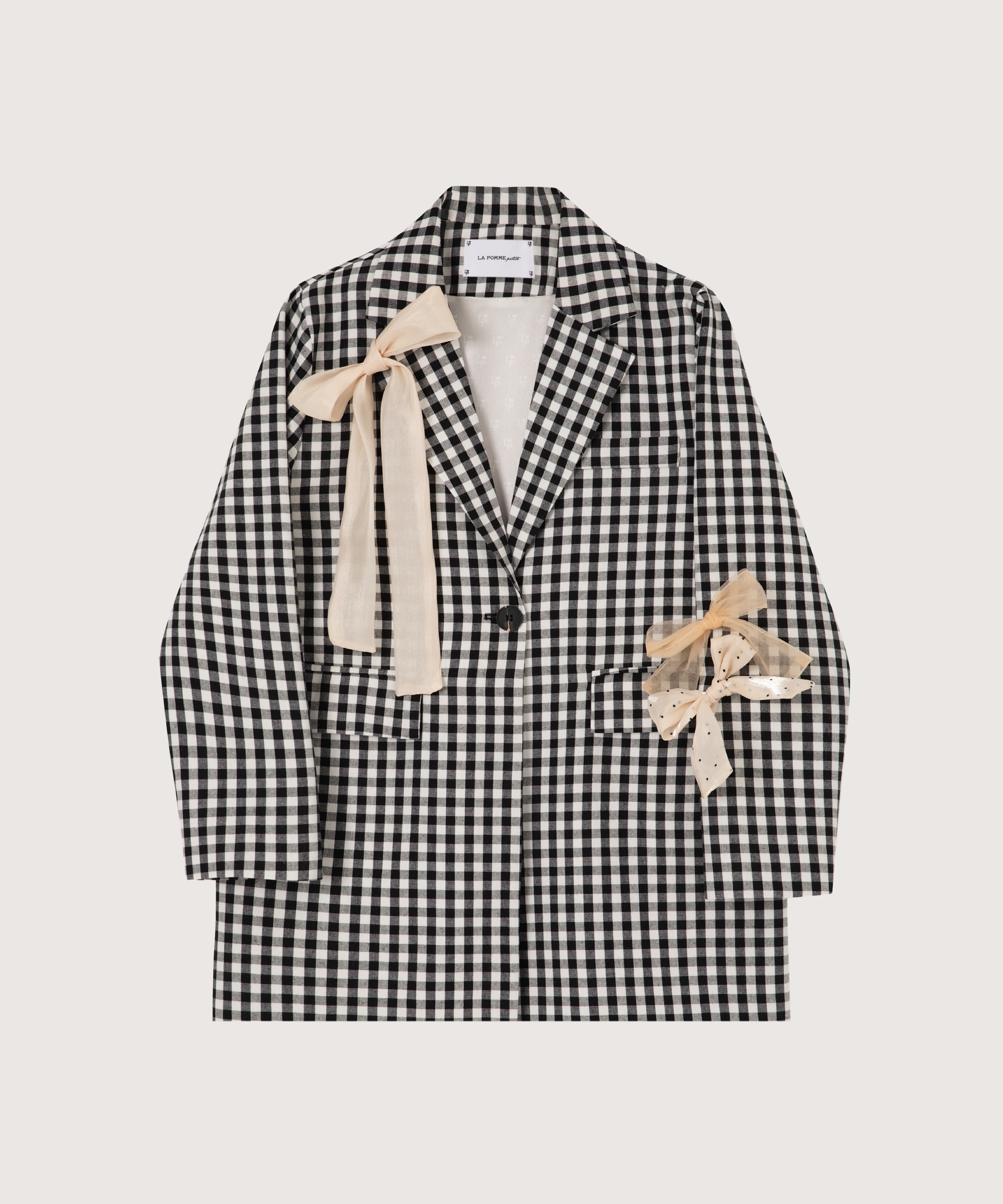 チェック柄リボン付きジャケット