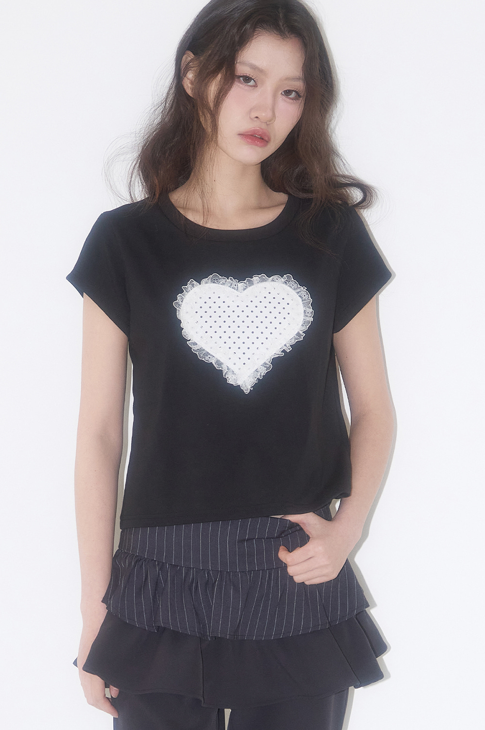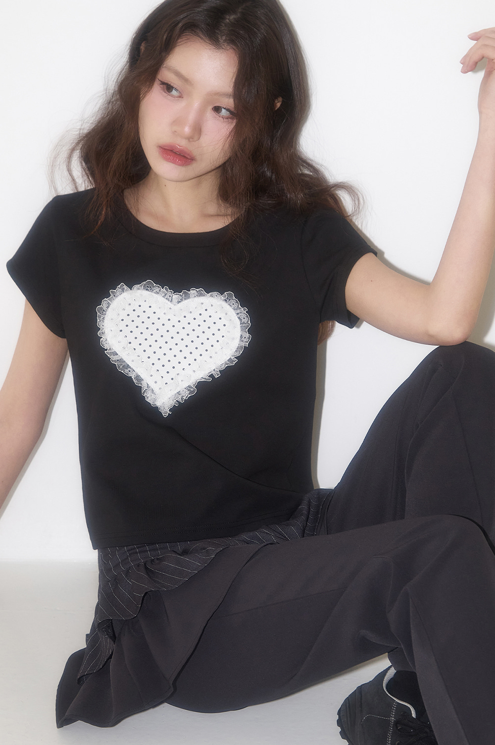 Lace Heart Dot T-Shirt Black