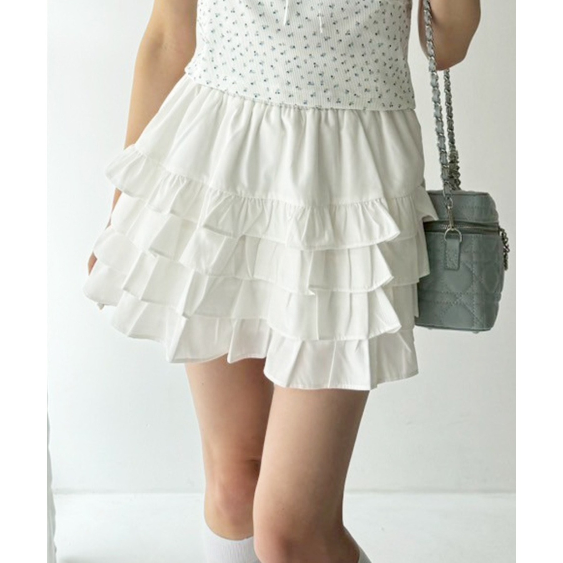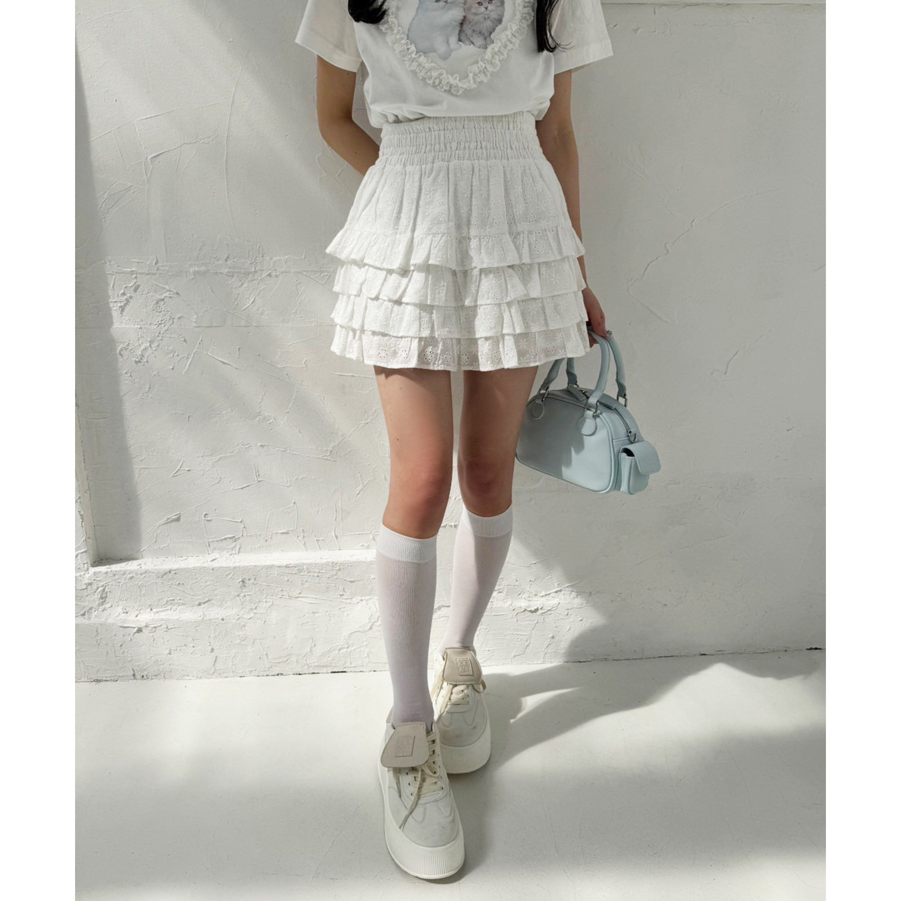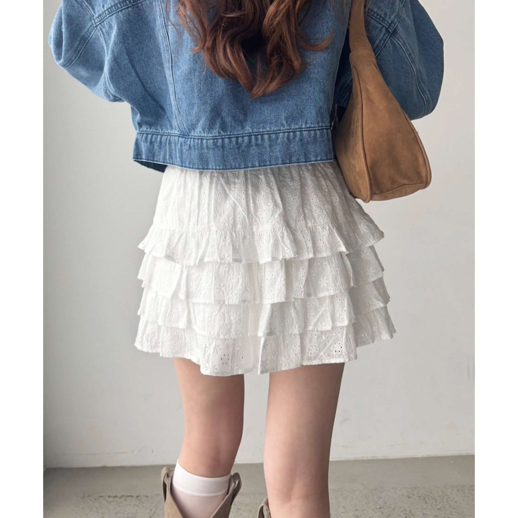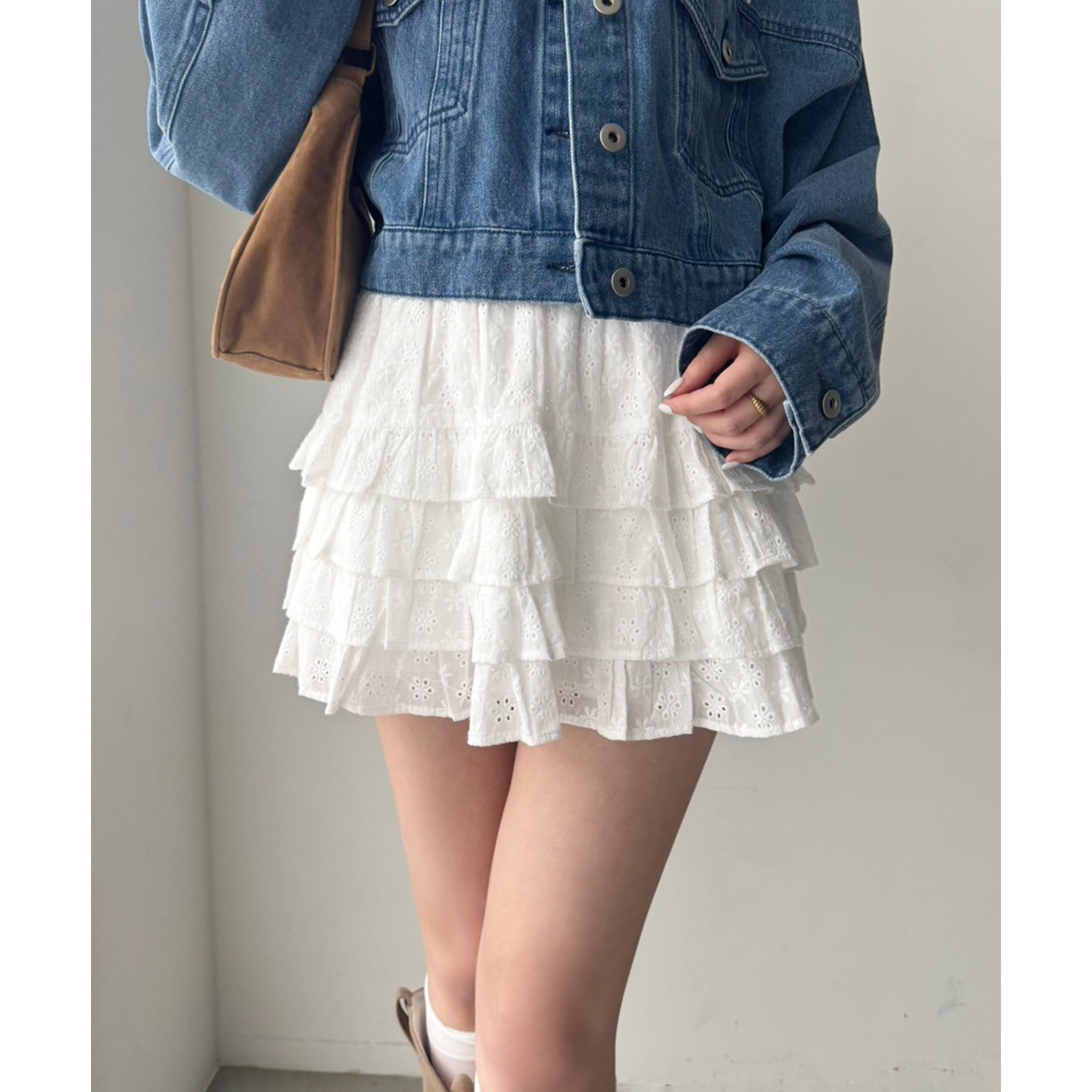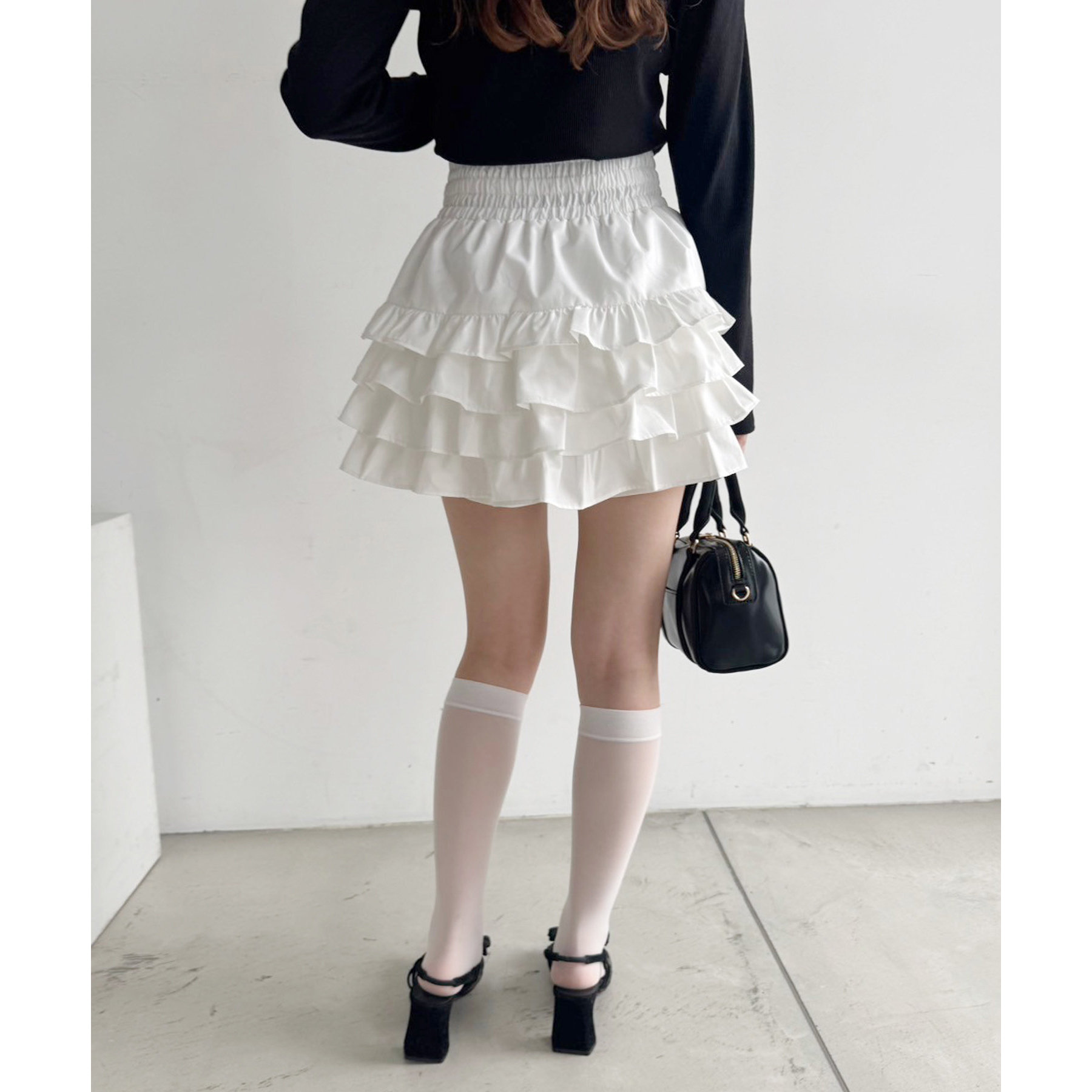 ふわっと広がるフリルティアードがかわいい韓国風スカート