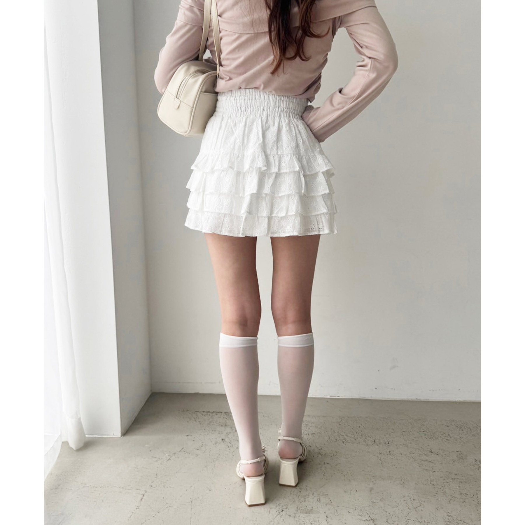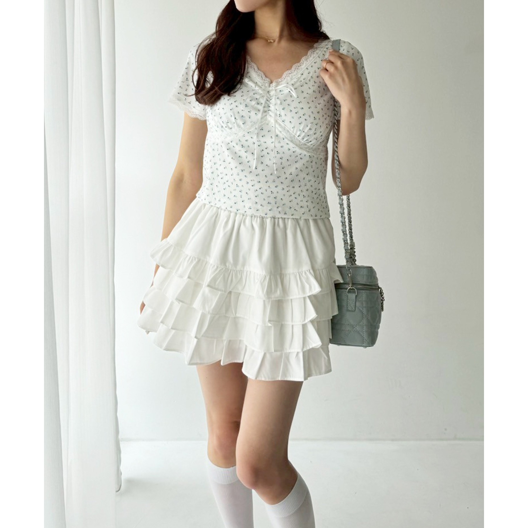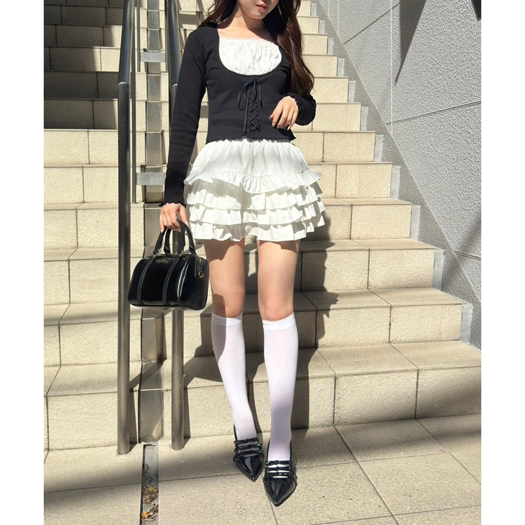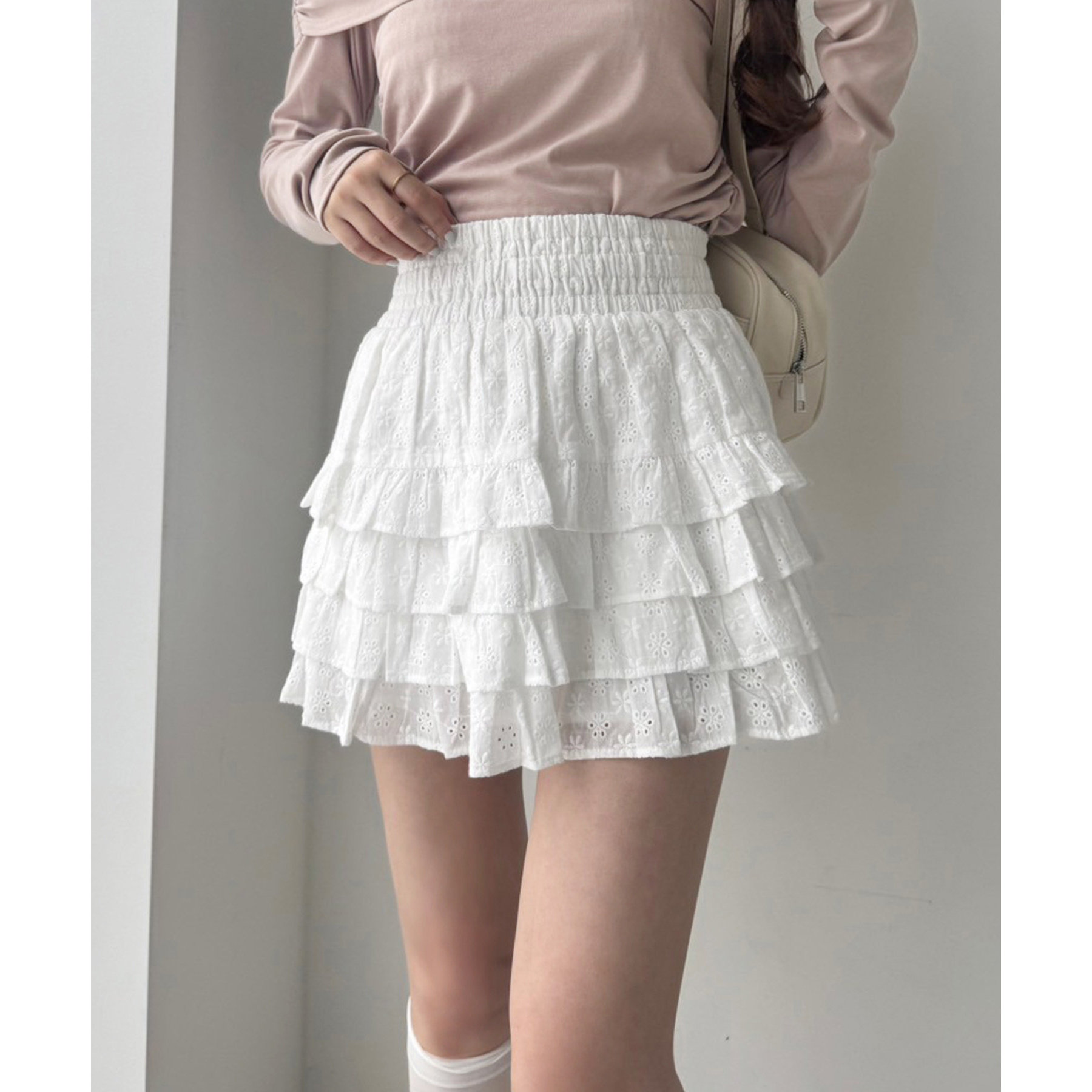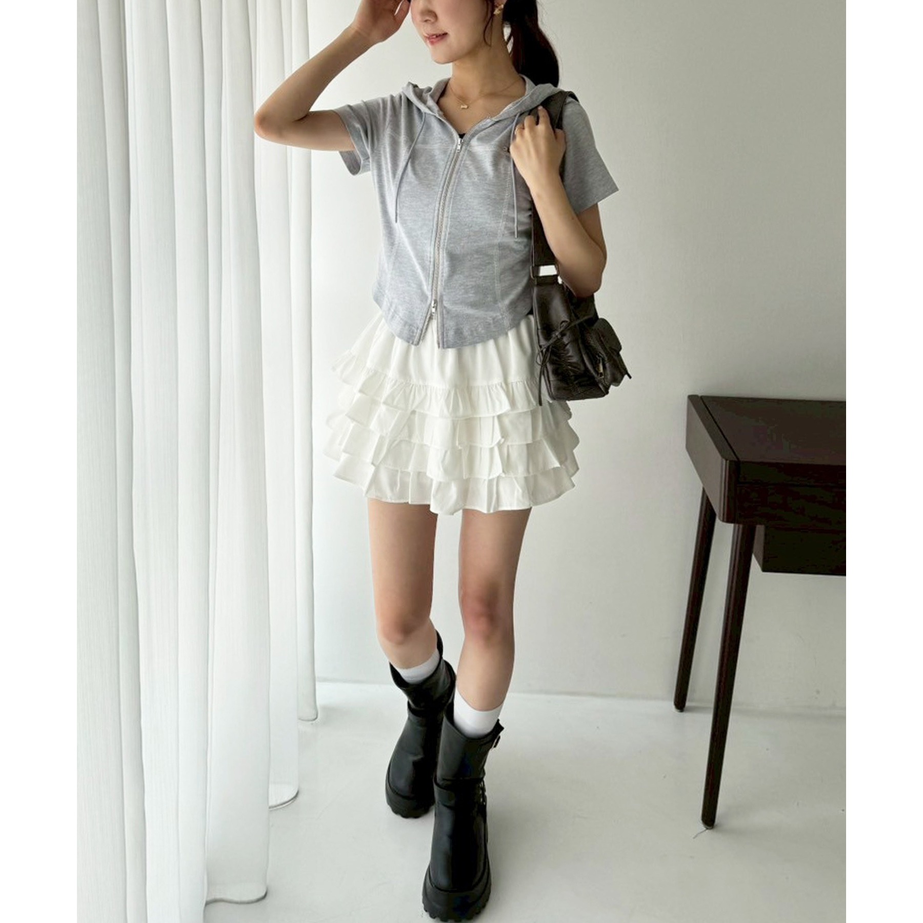 ふわっと広がるフリルティアードがかわいい韓国風スカート