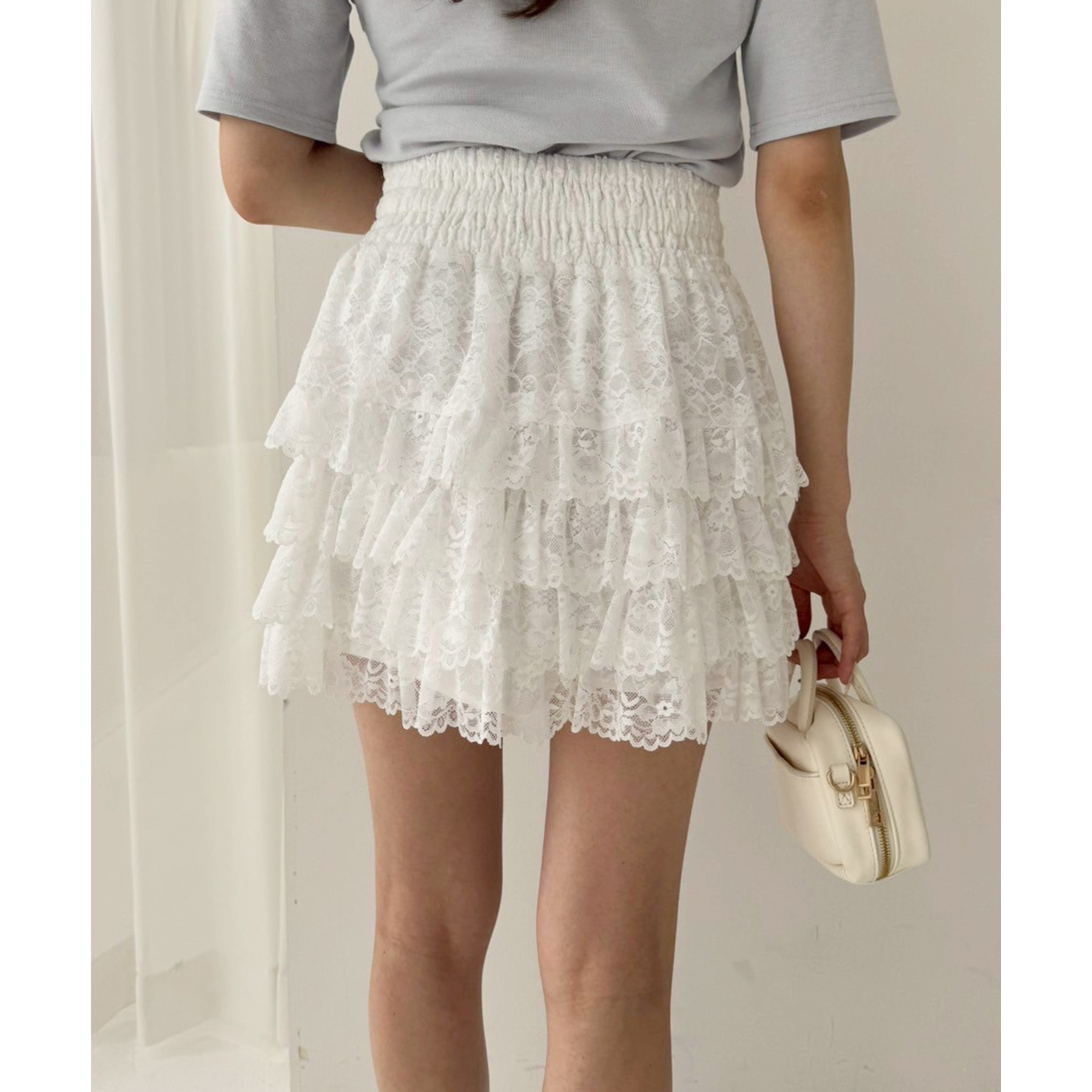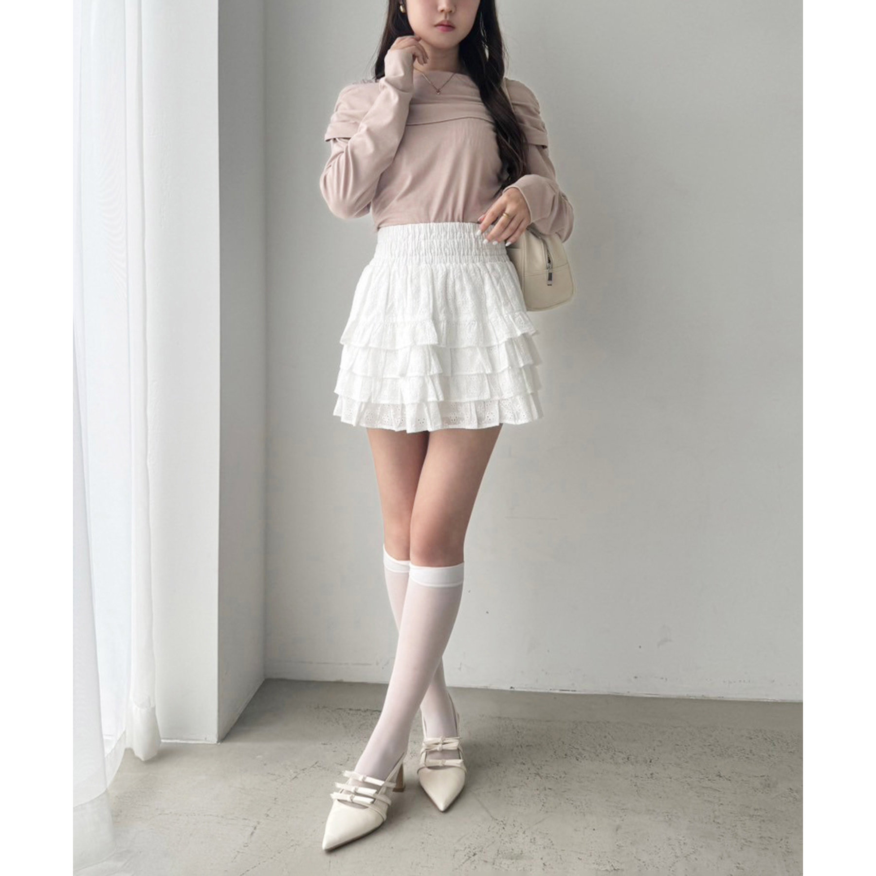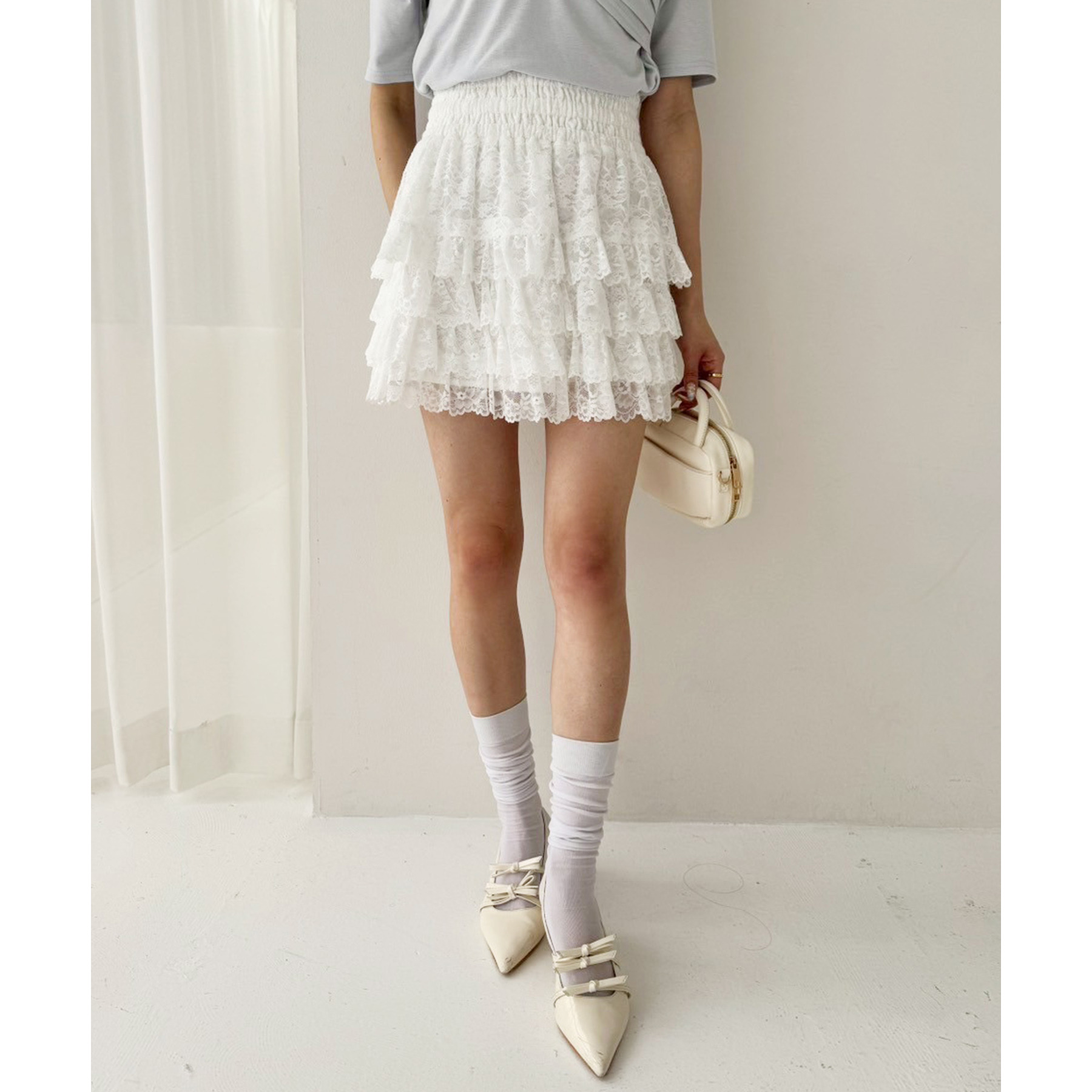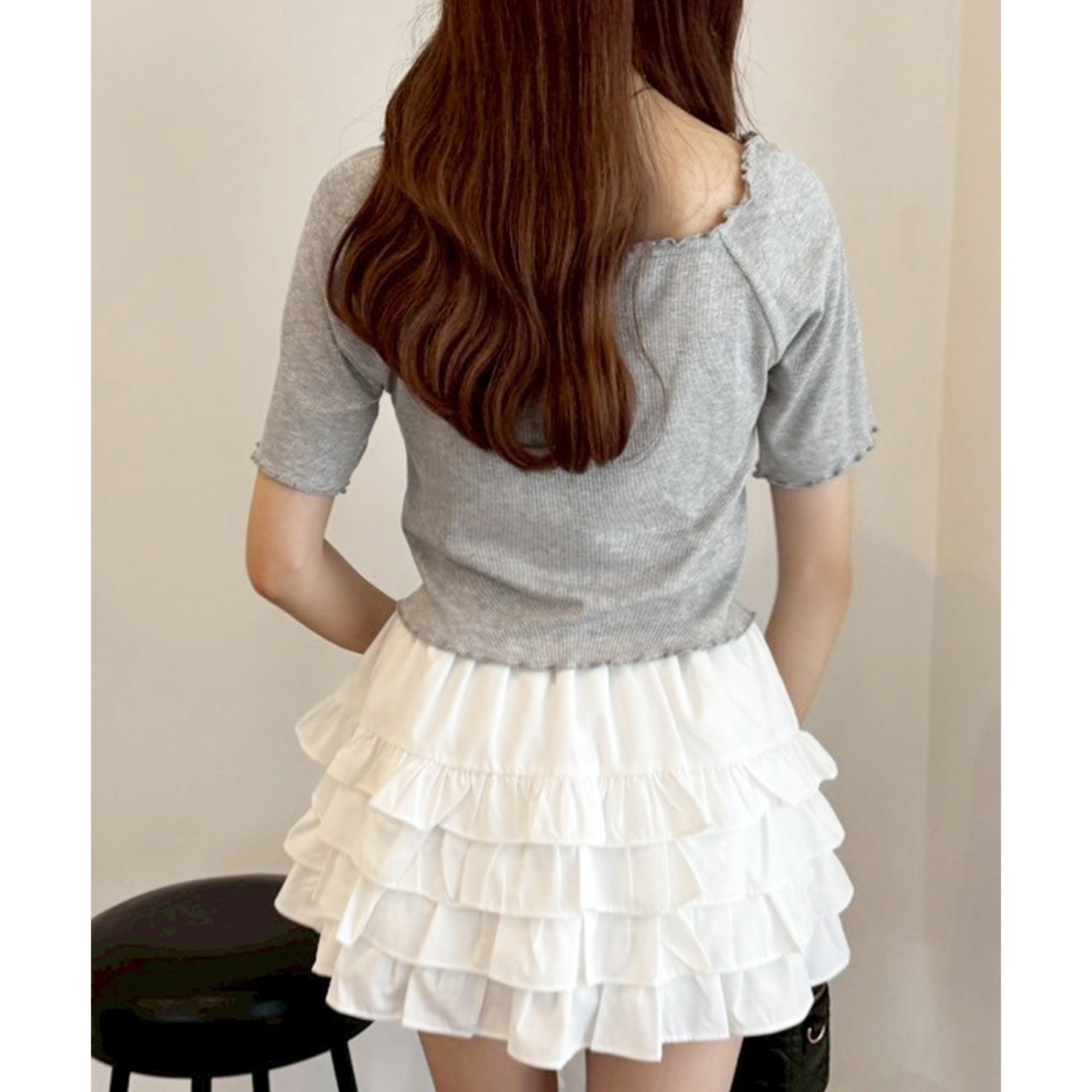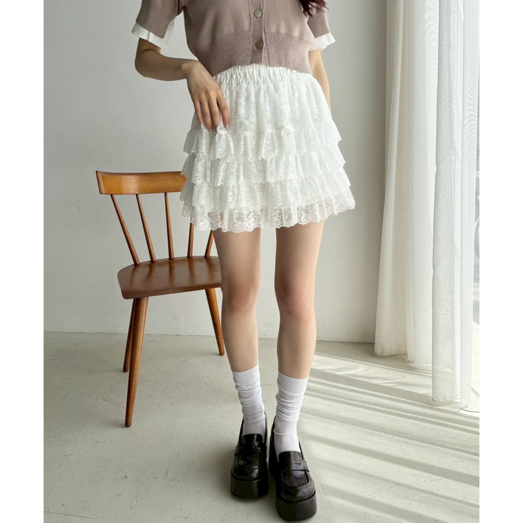 ふわっと広がるフリルティアードがかわいい韓国風スカート