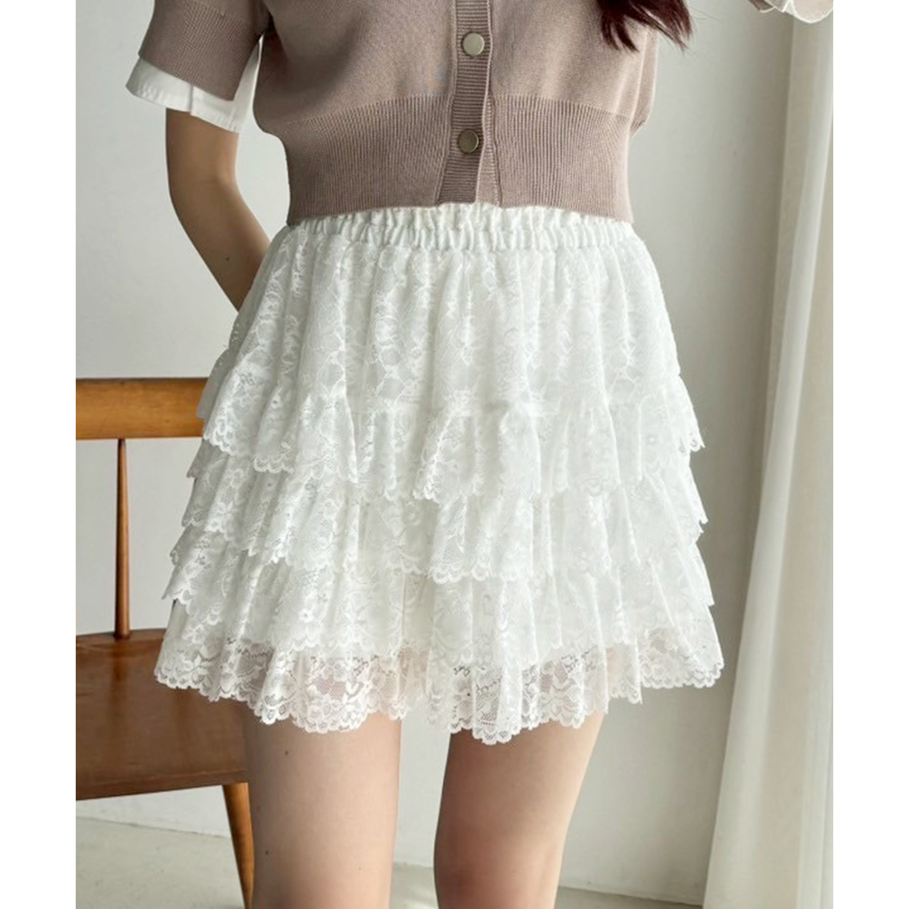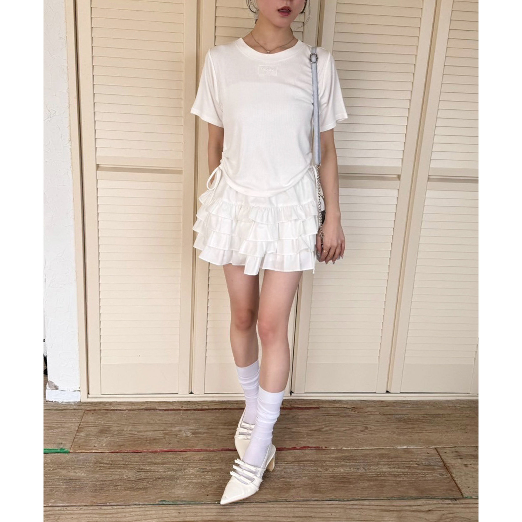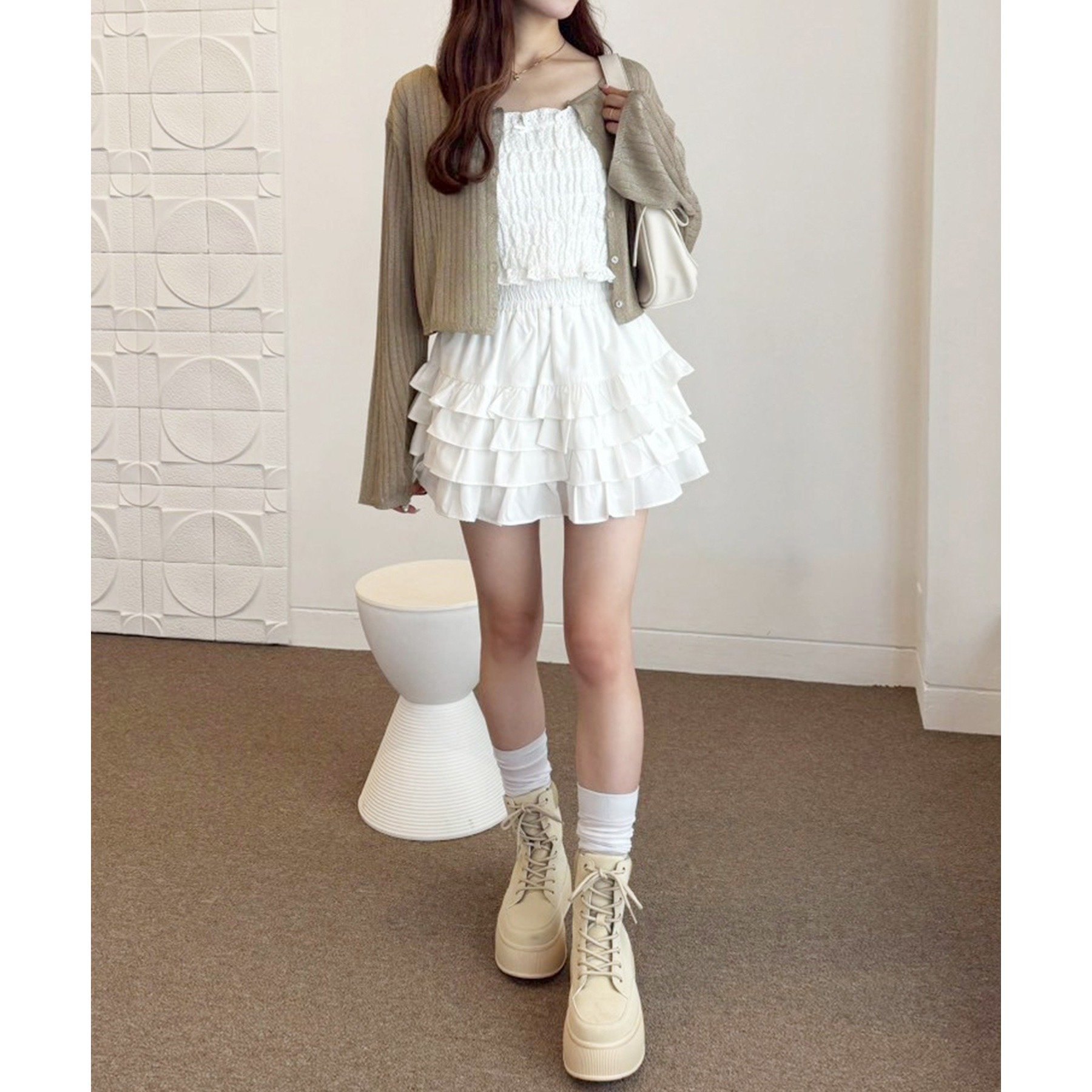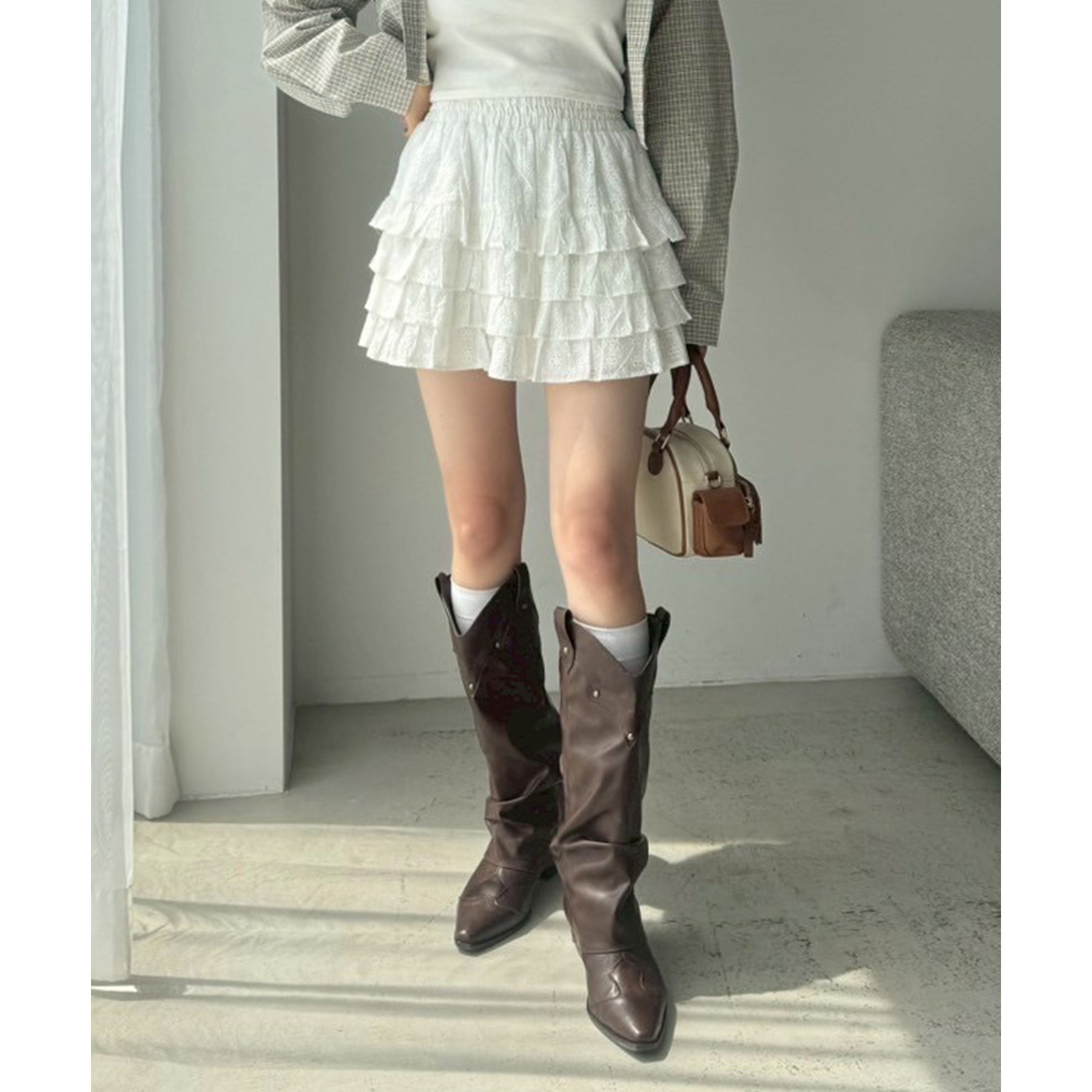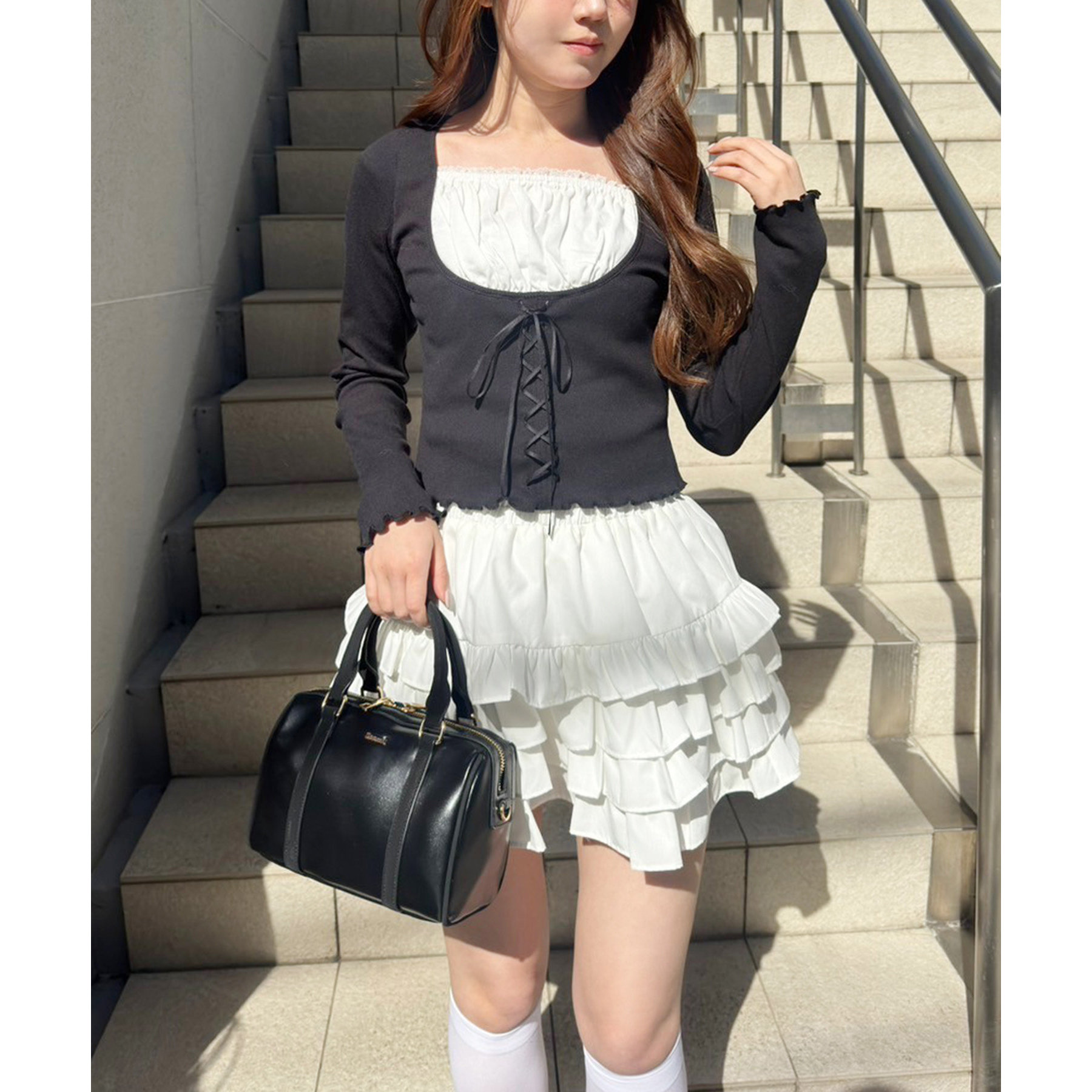 ふわっと広がるフリルティアードがかわいい韓国風スカート