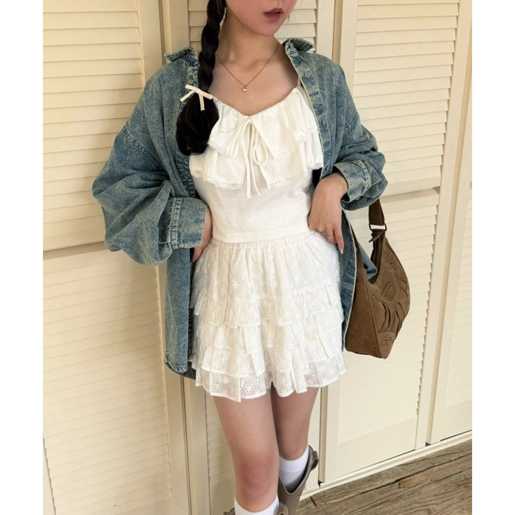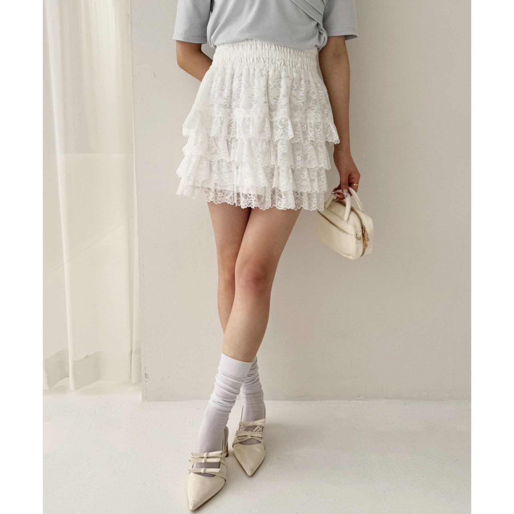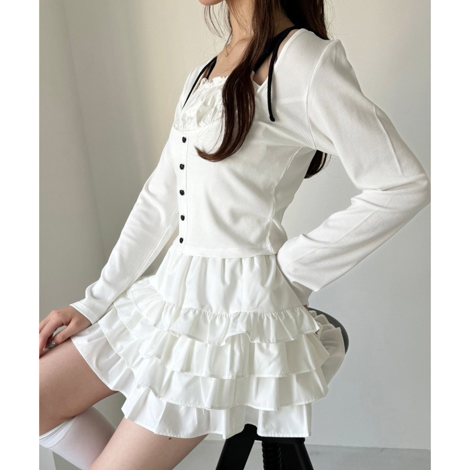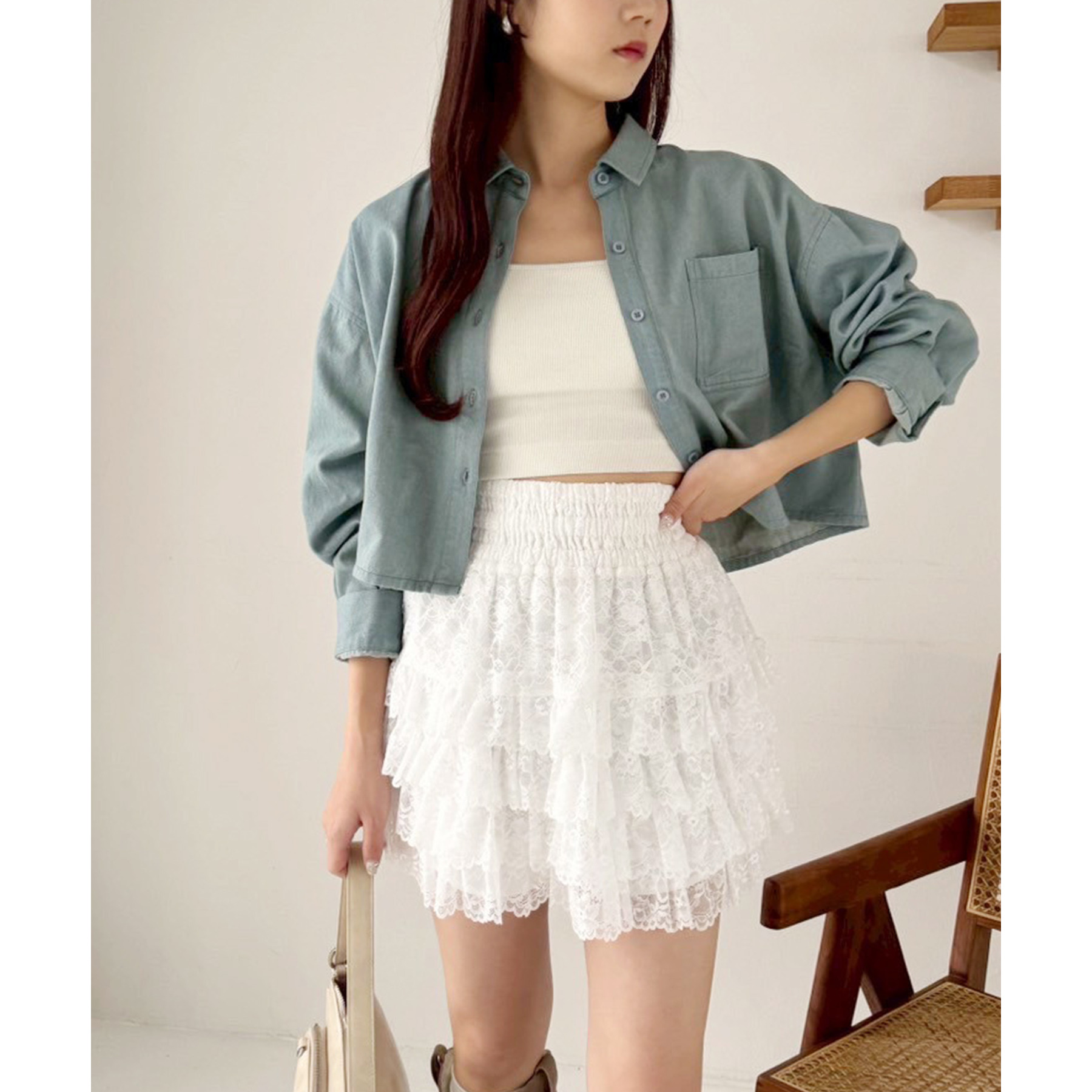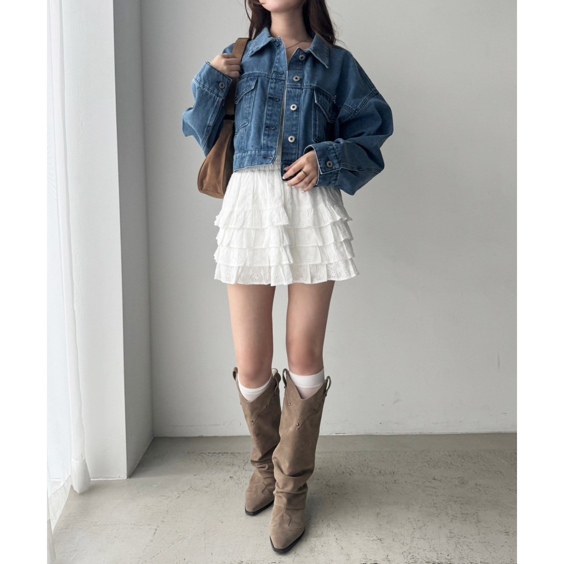 ふわっと広がるフリルティアードがかわいい韓国風スカート