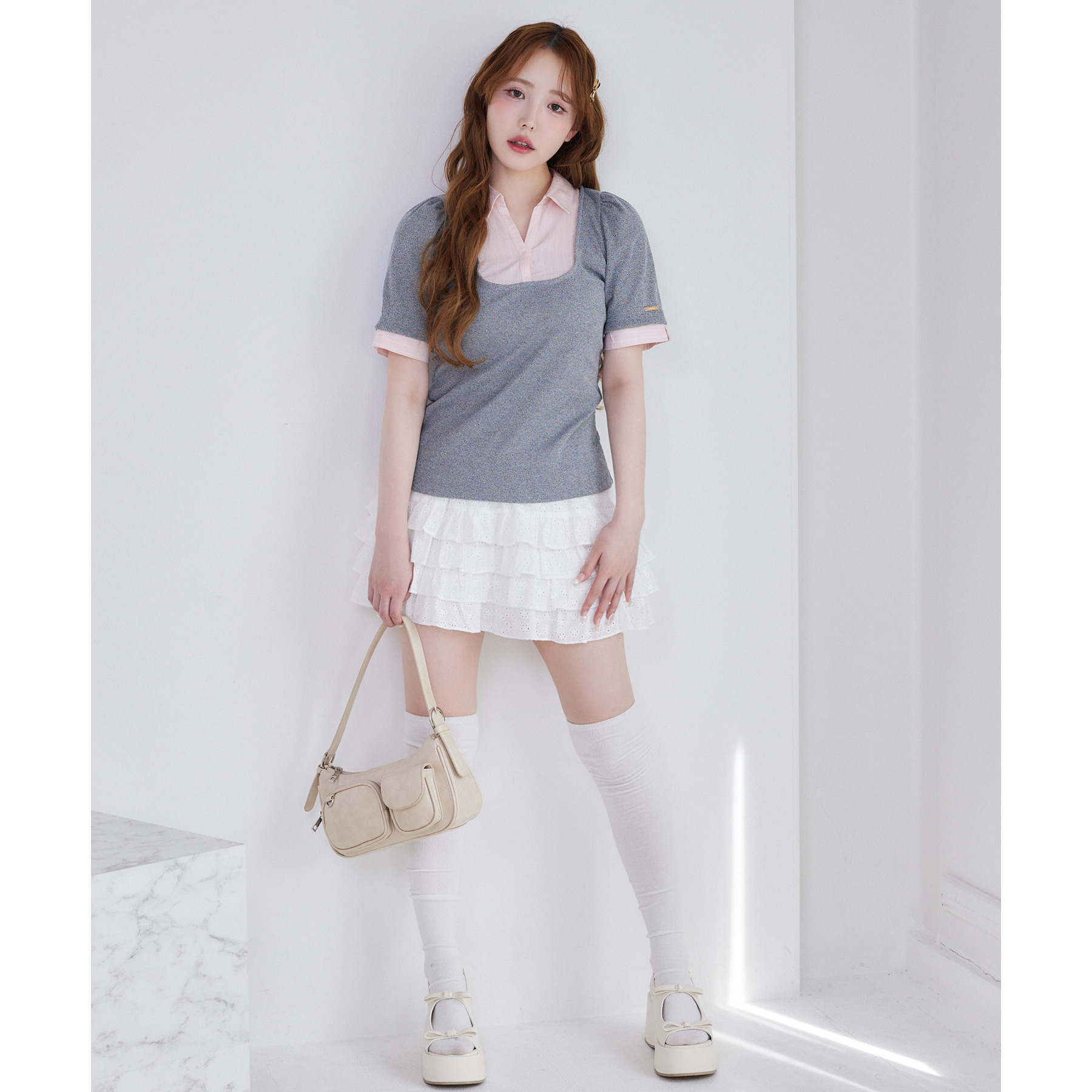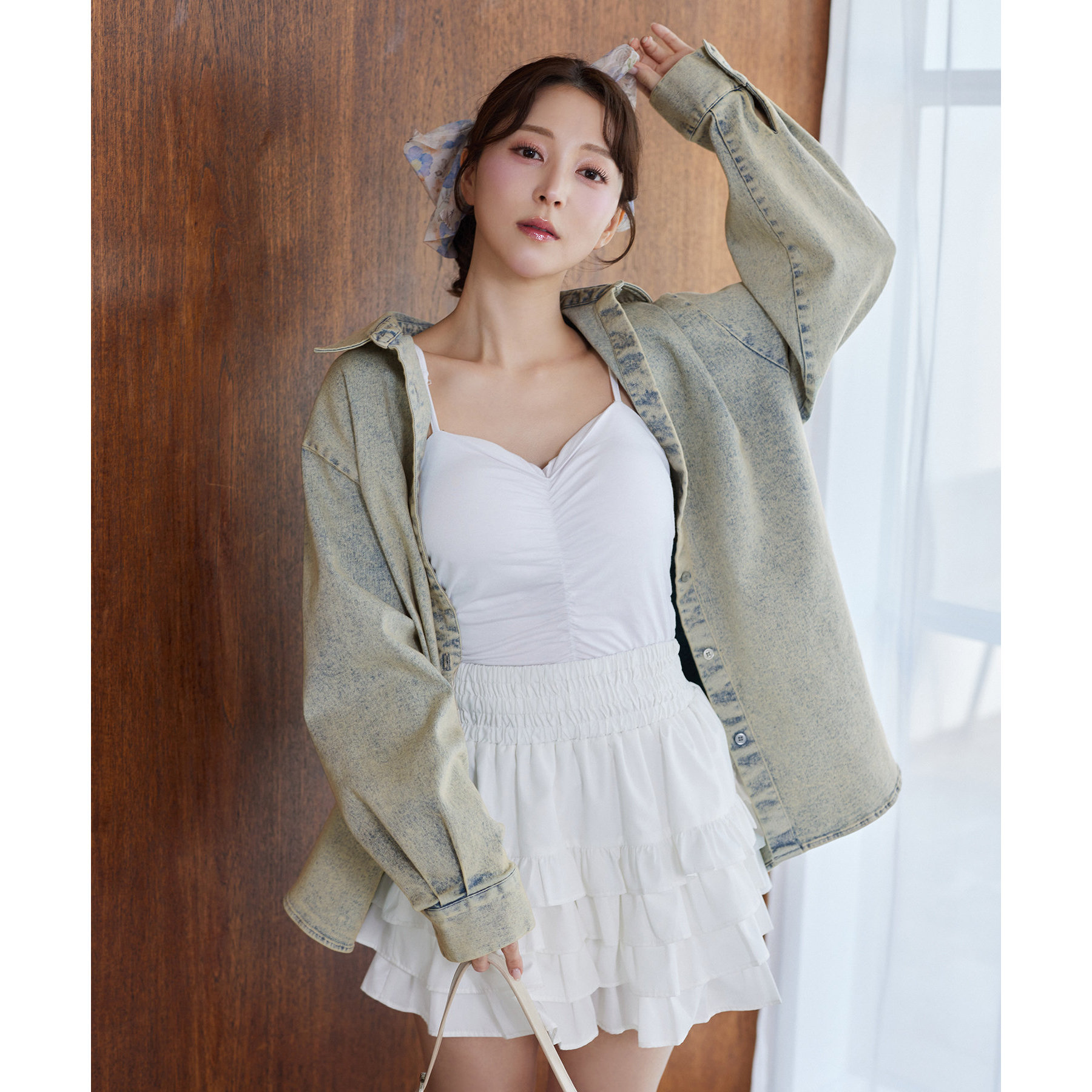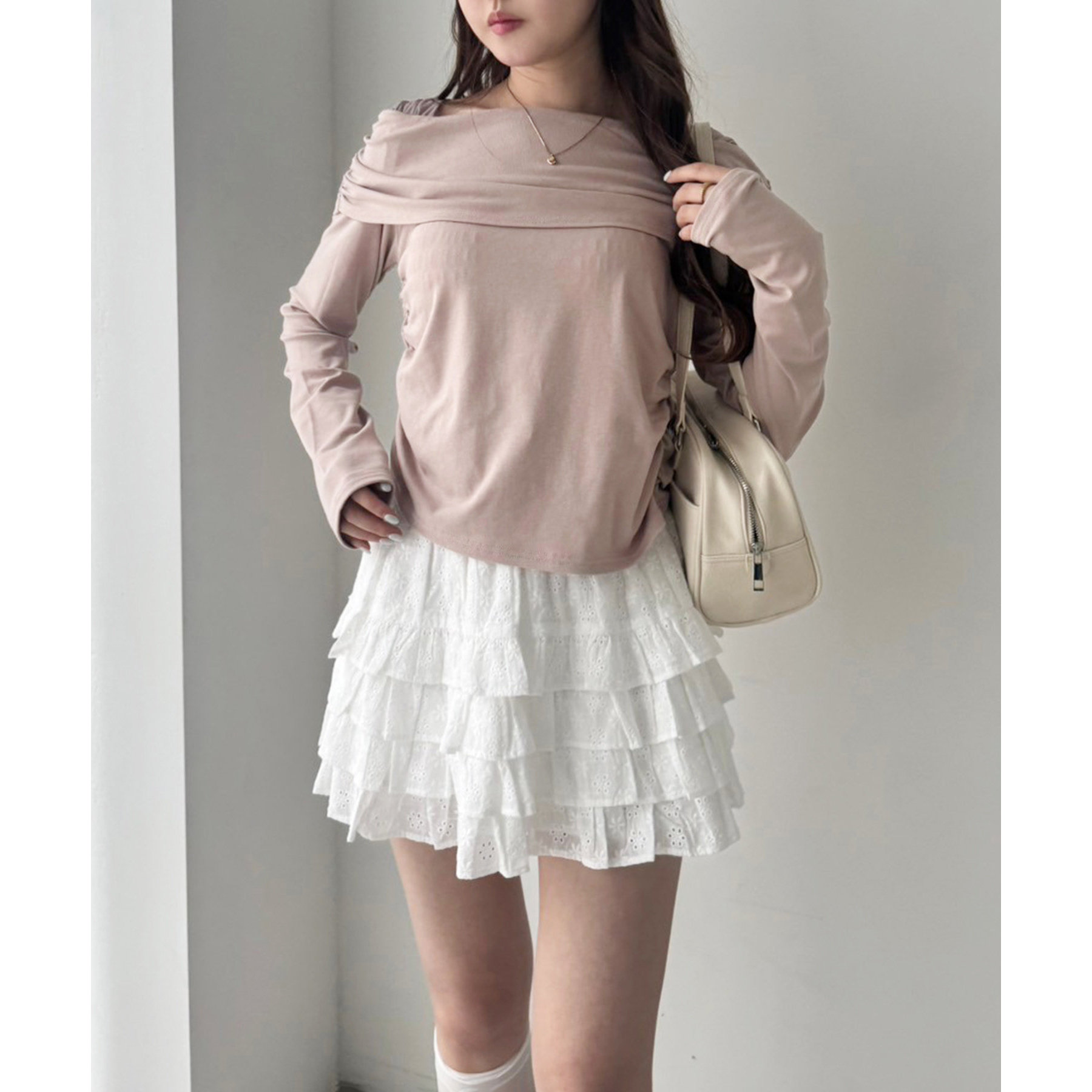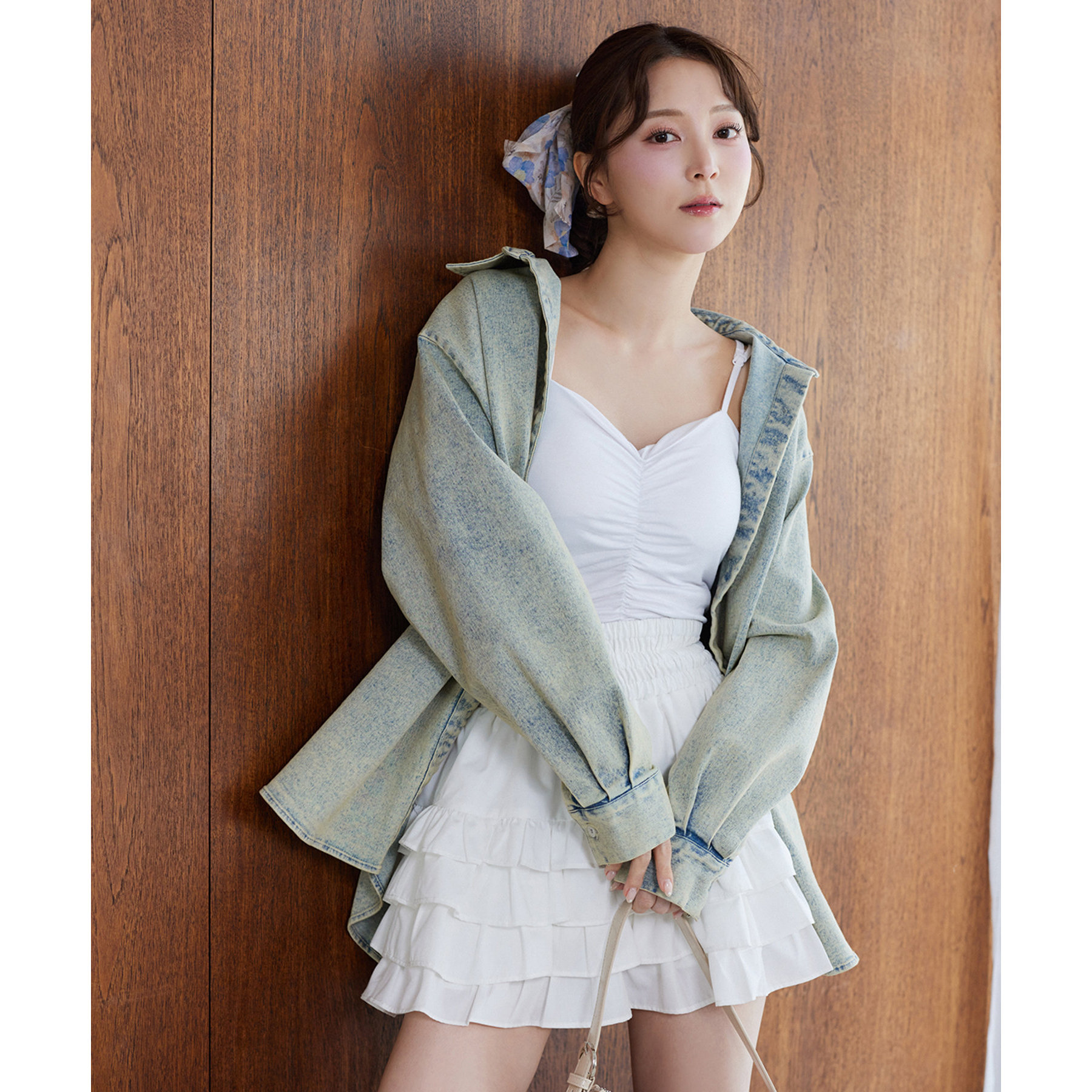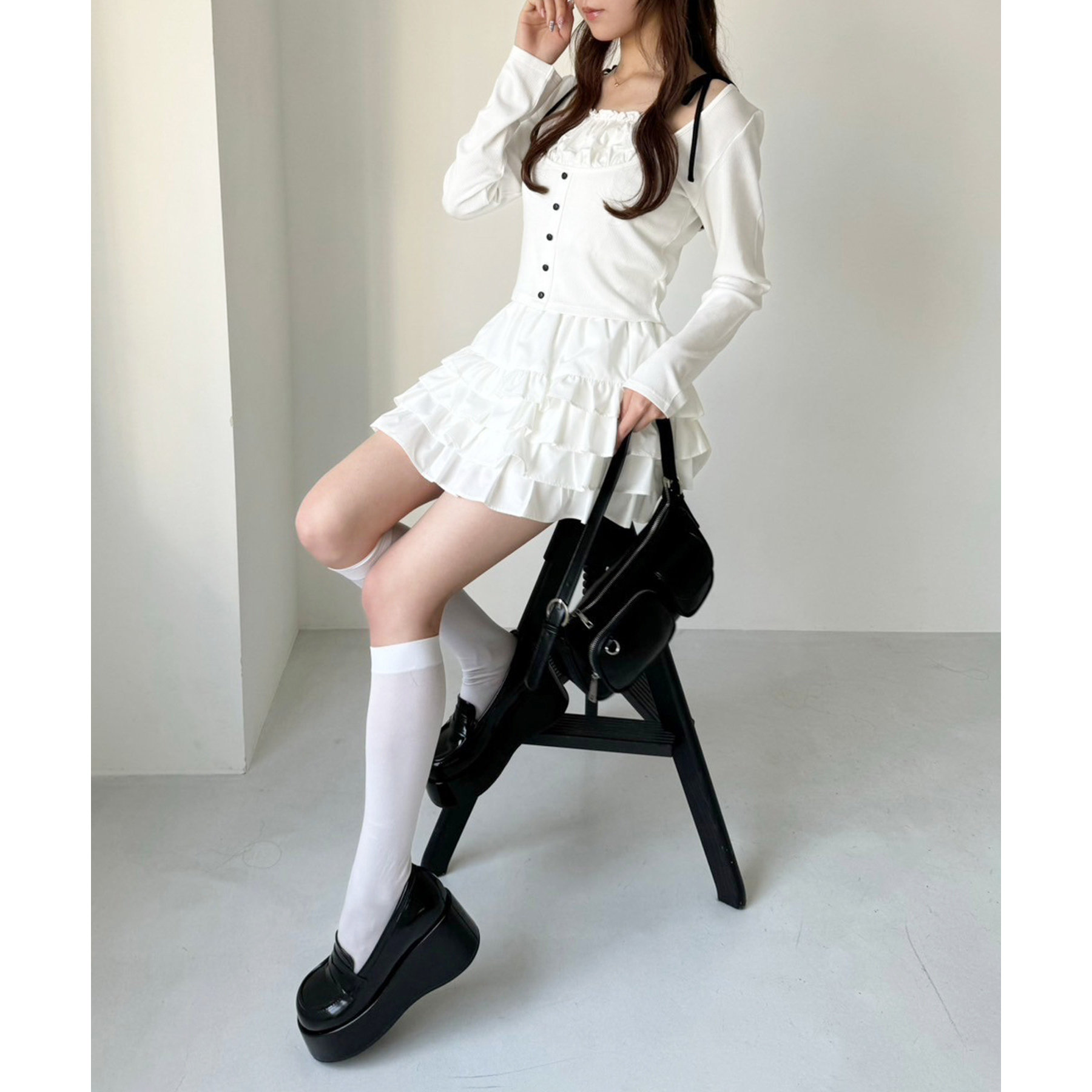 ふわっと広がるフリルティアードがかわいい韓国風スカート