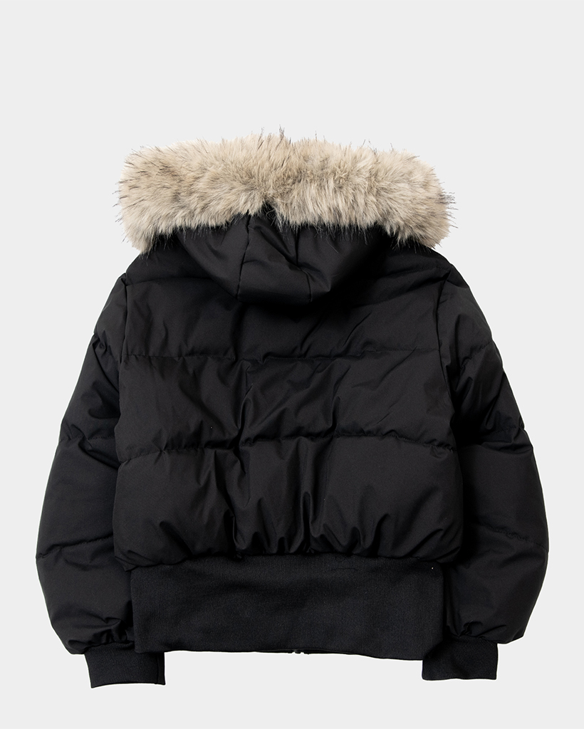 Hooded Fur Trimmed Soft High Neck Quilted Semi-Crop Zip-Up Padded Jumper [Black]