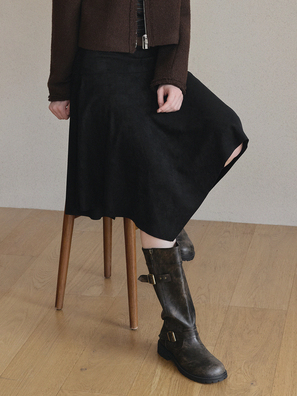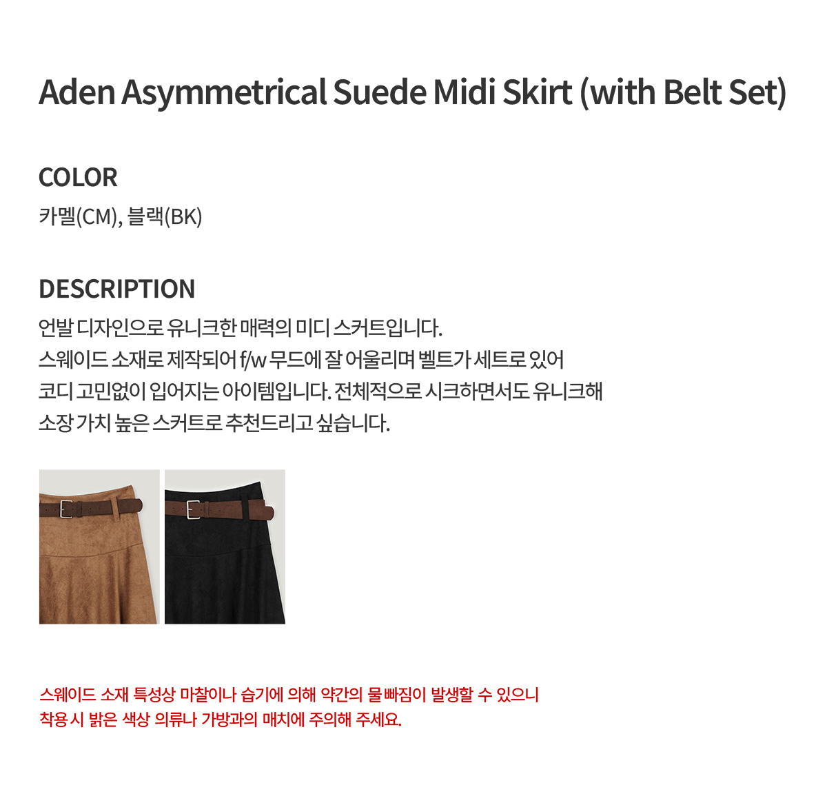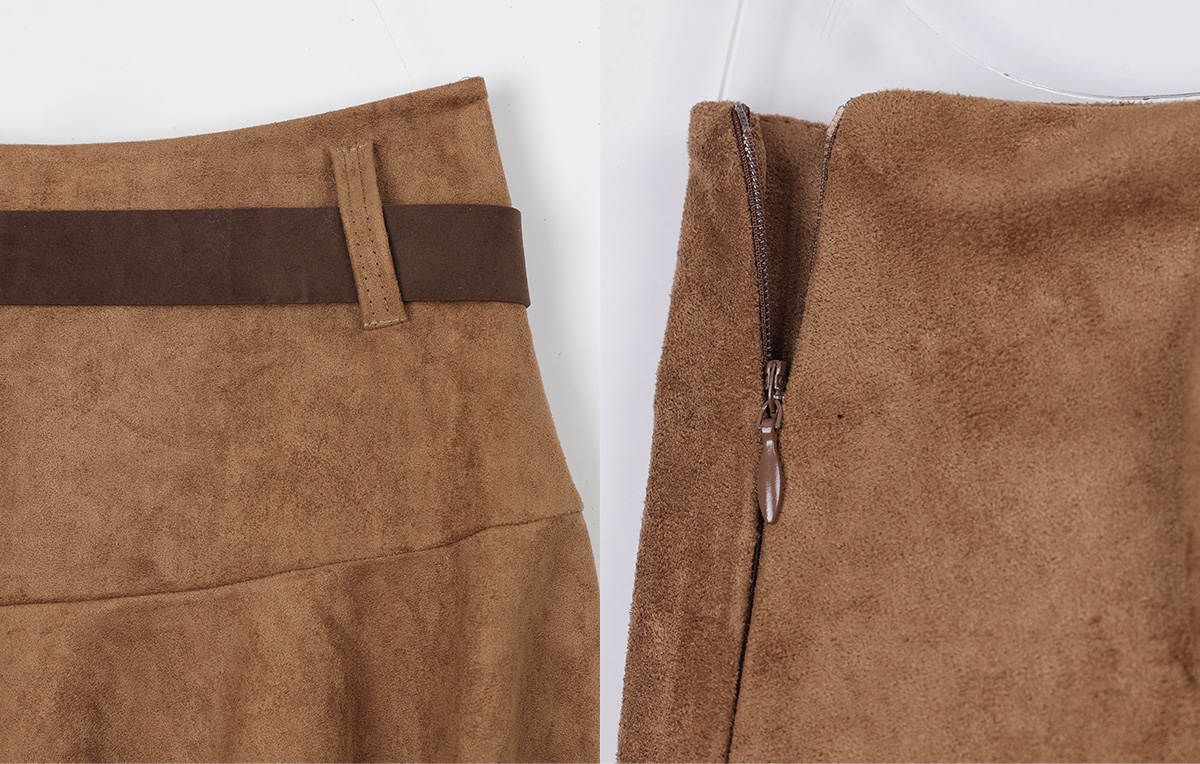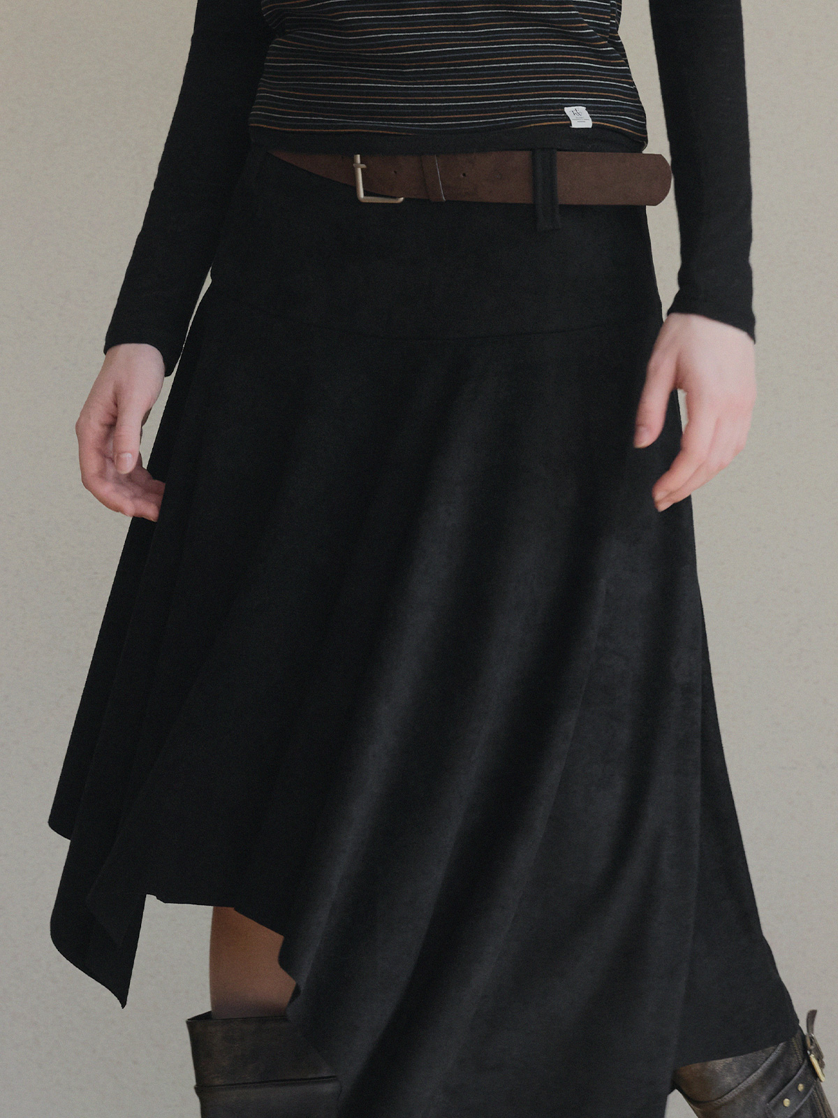 [Influencer pick] Aden Asymmetrical Suede Midi Skirt (with Belt Set)
