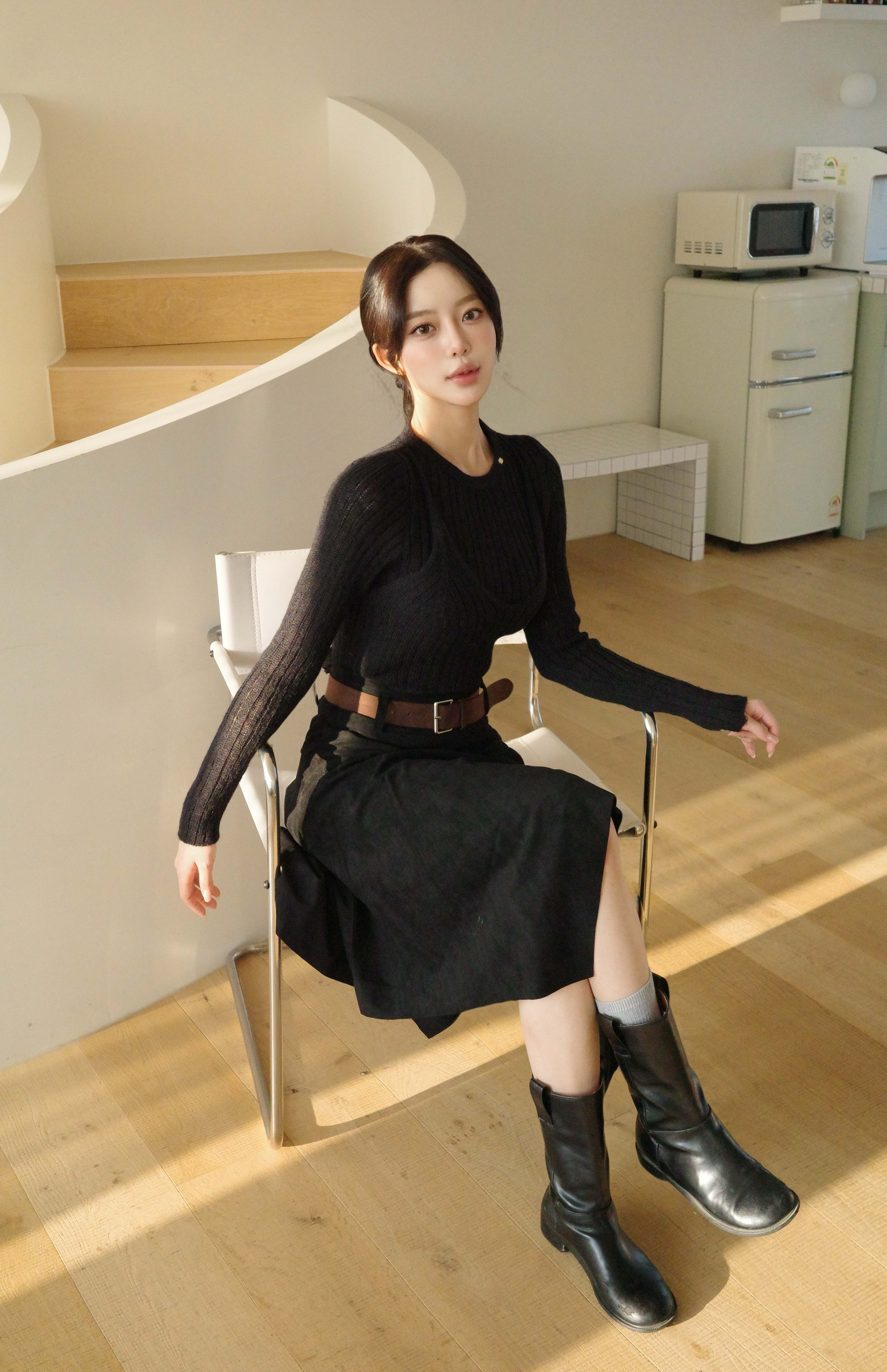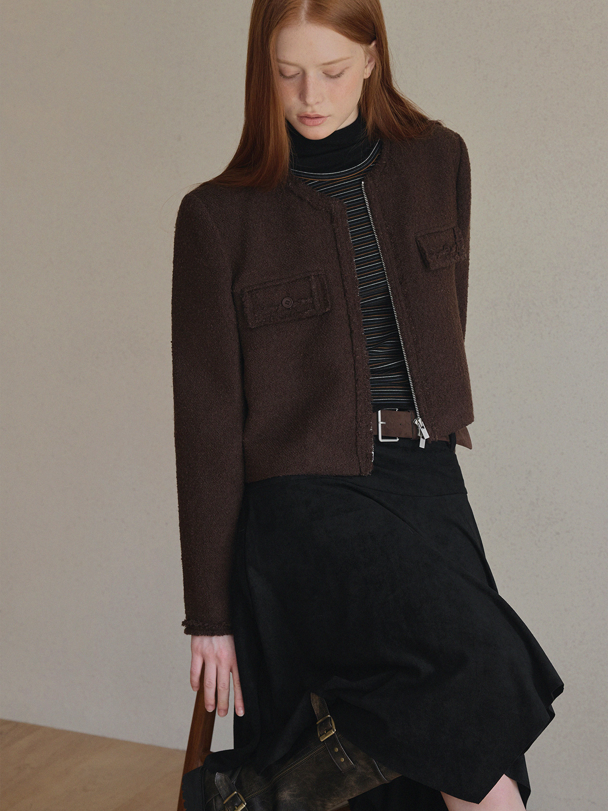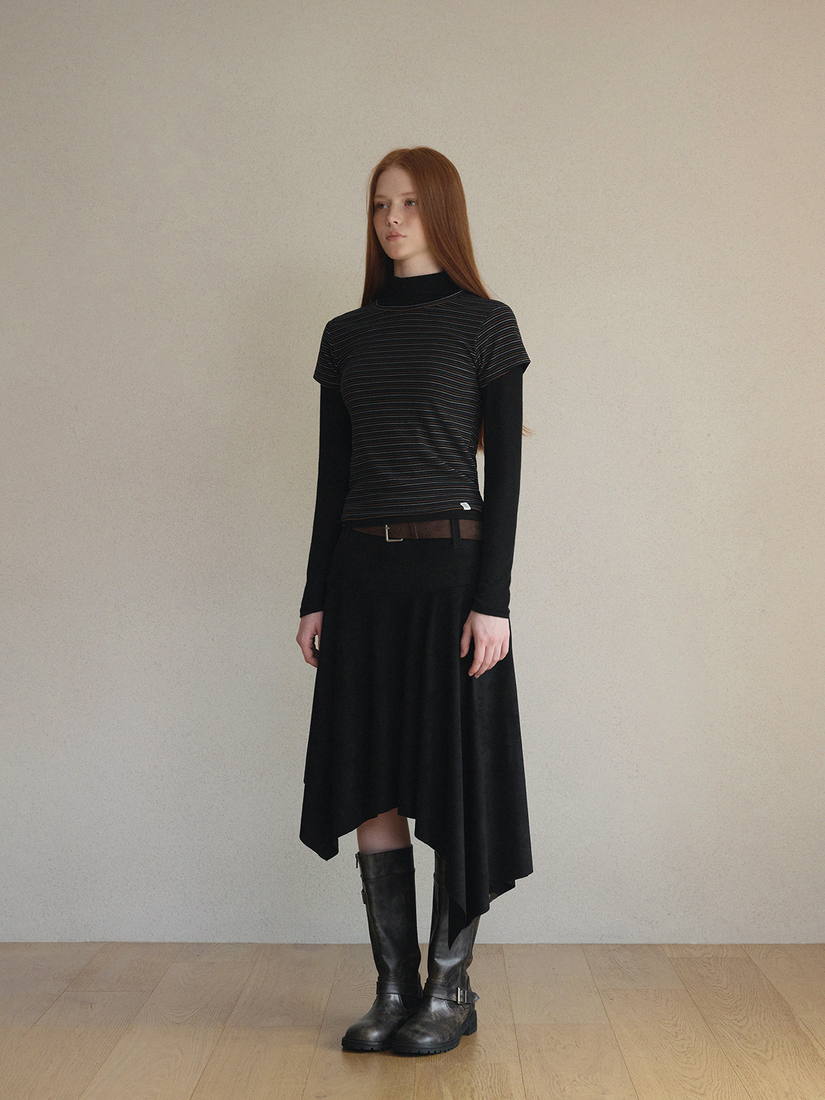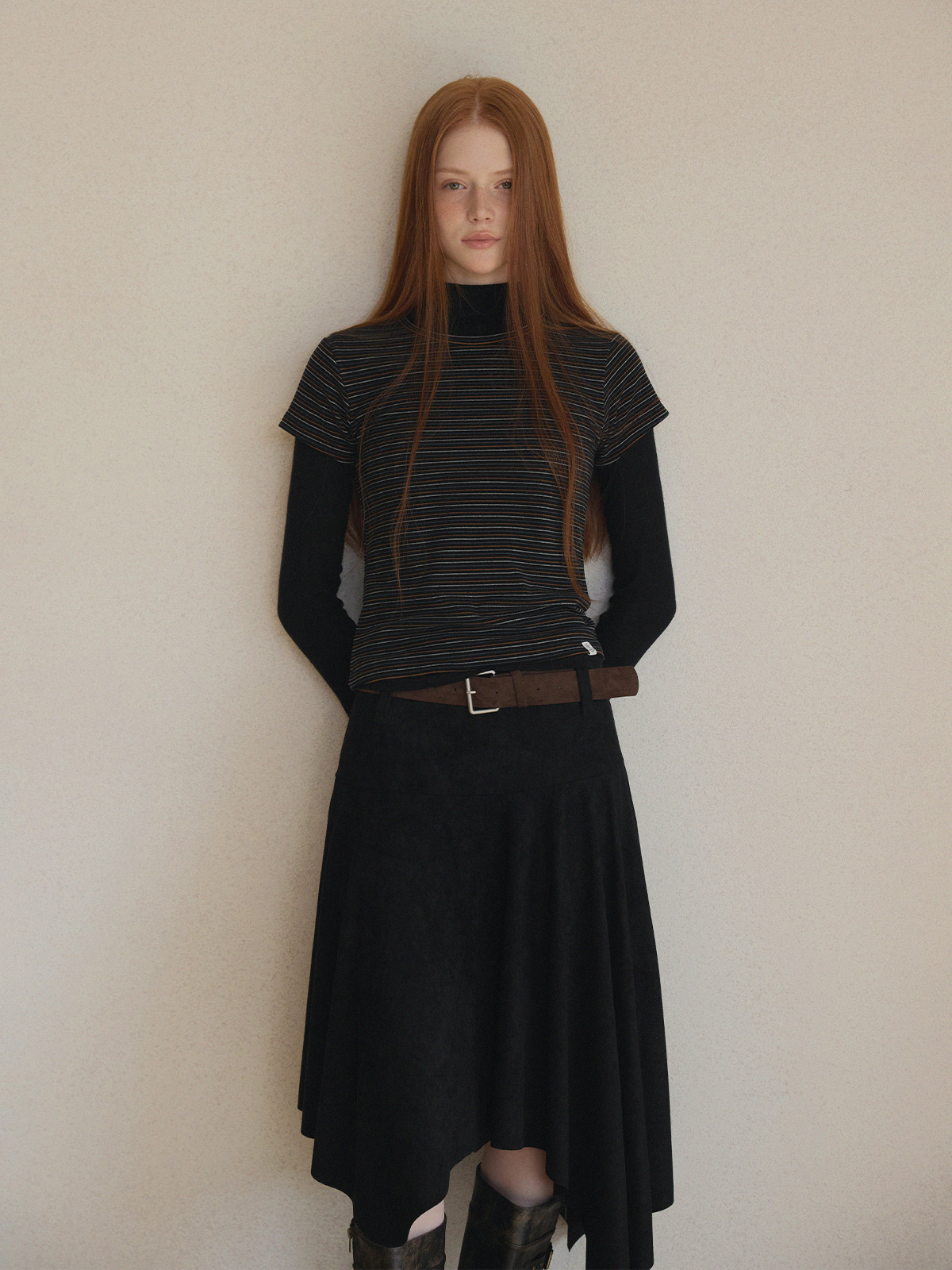 [Influencer pick] Aden Asymmetrical Suede Midi Skirt (with Belt Set)