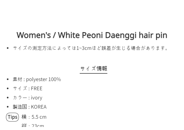 White Peoni Daenggi hair pin