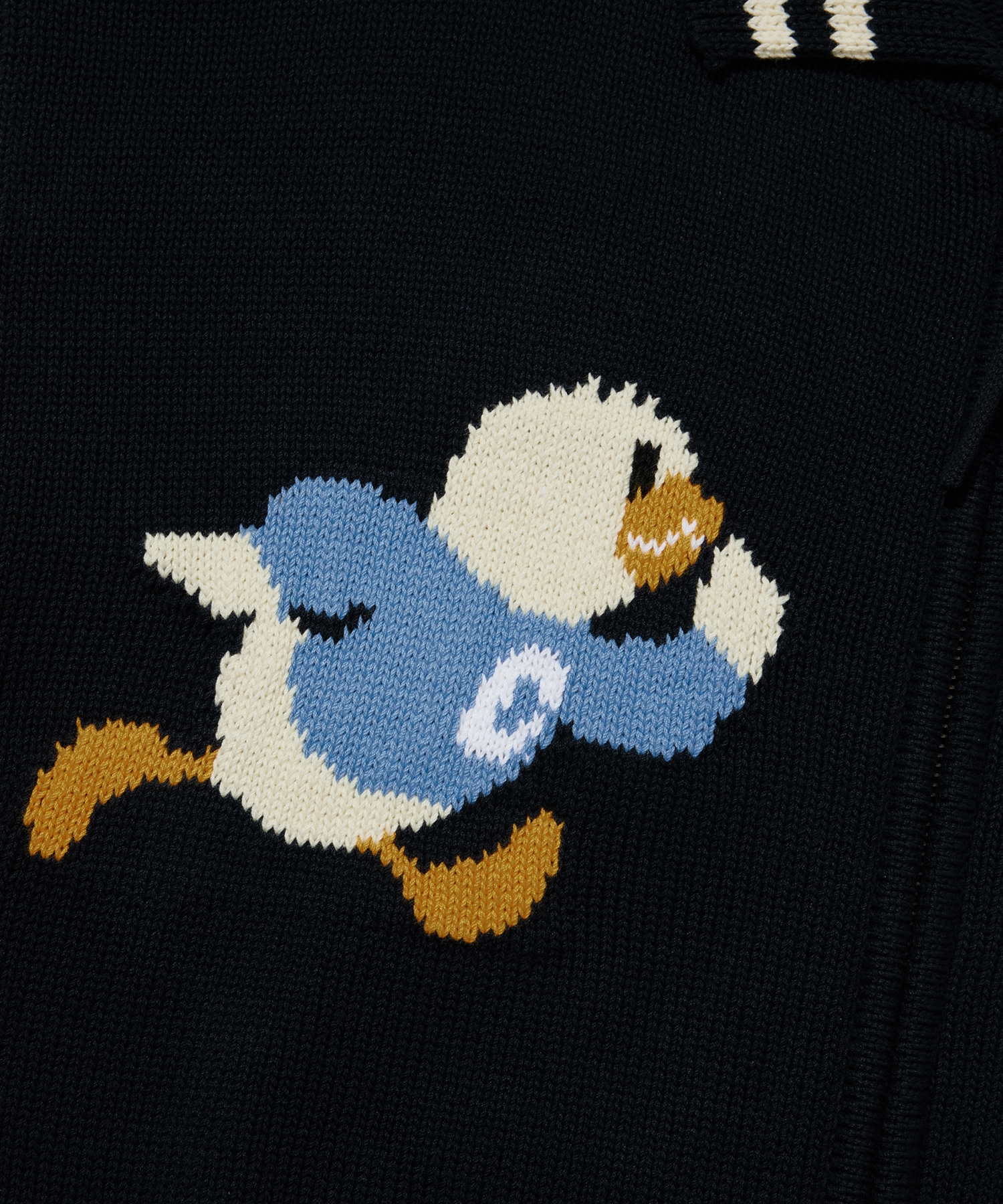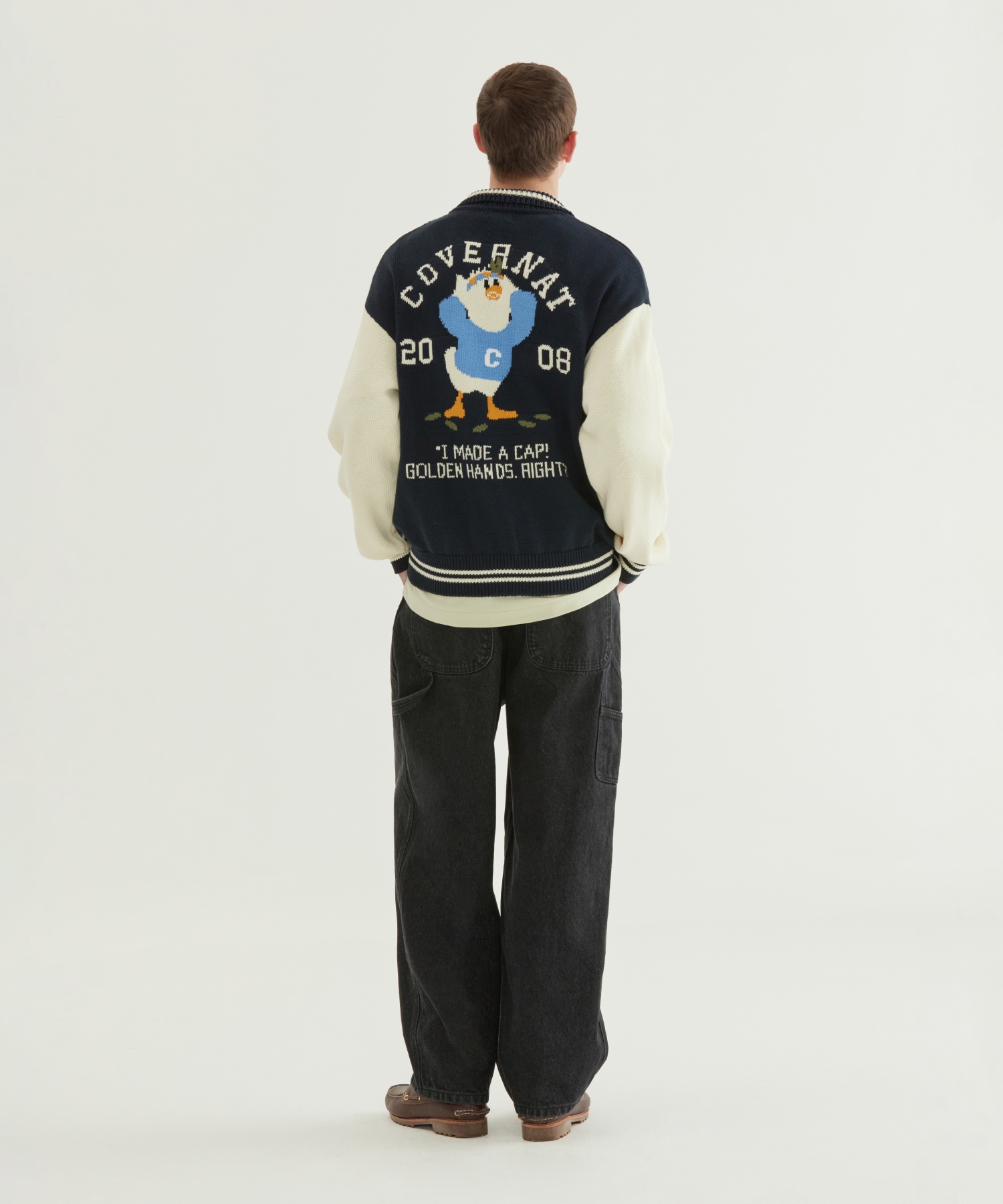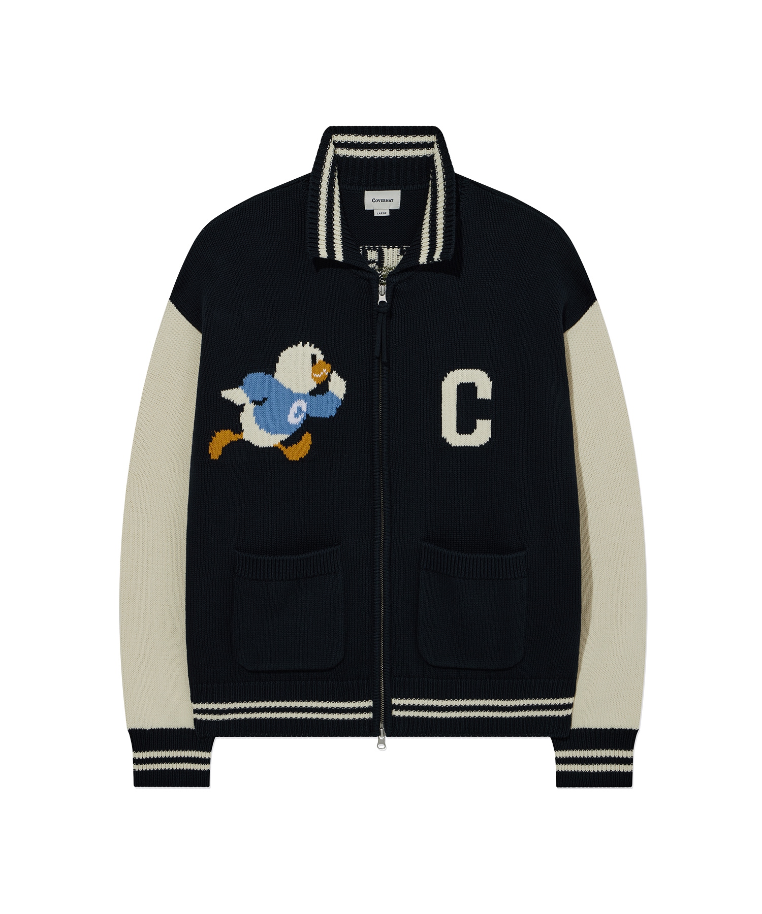 DUCK GRAPHIC KNIT VARSITY JACKET - Navy