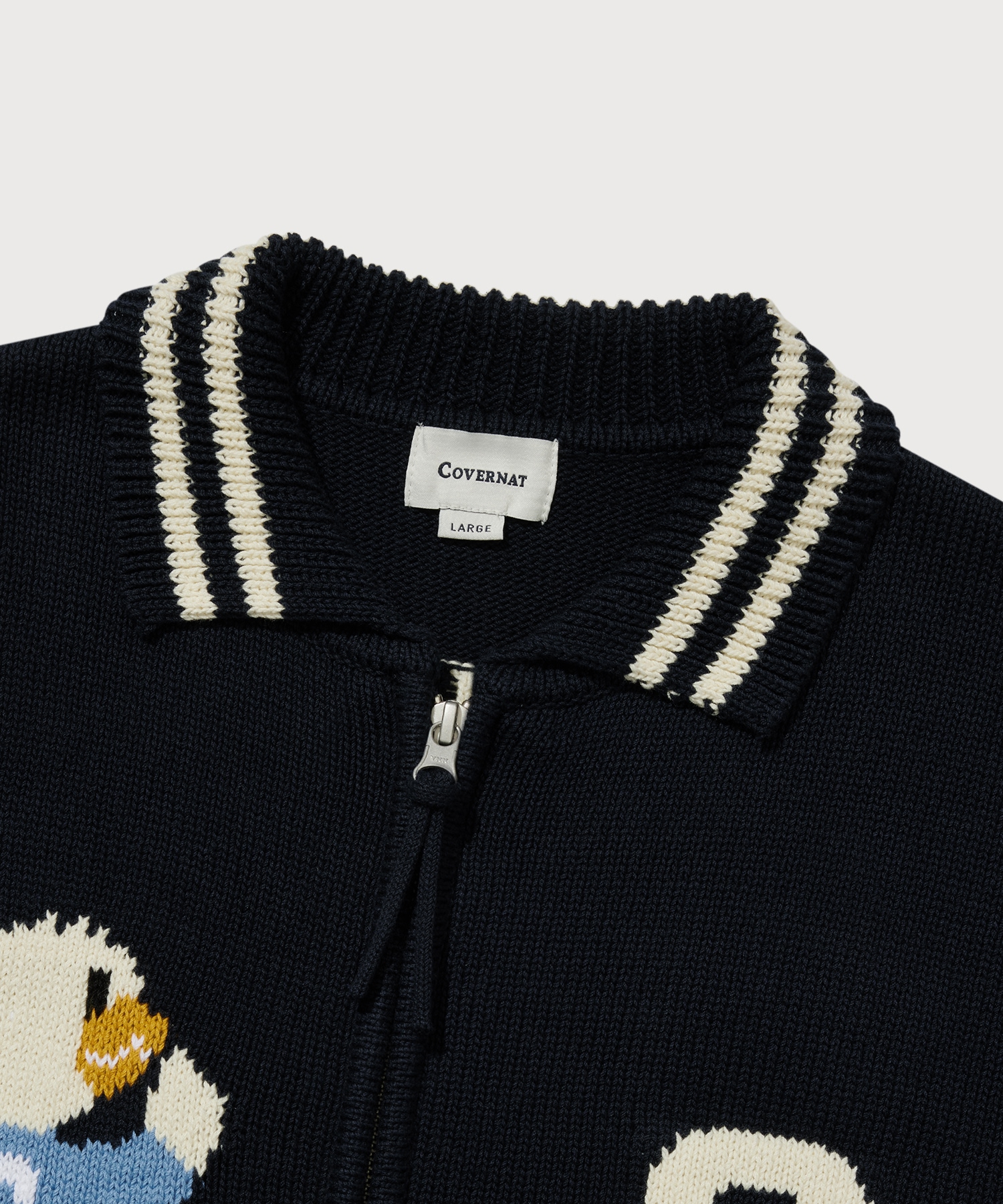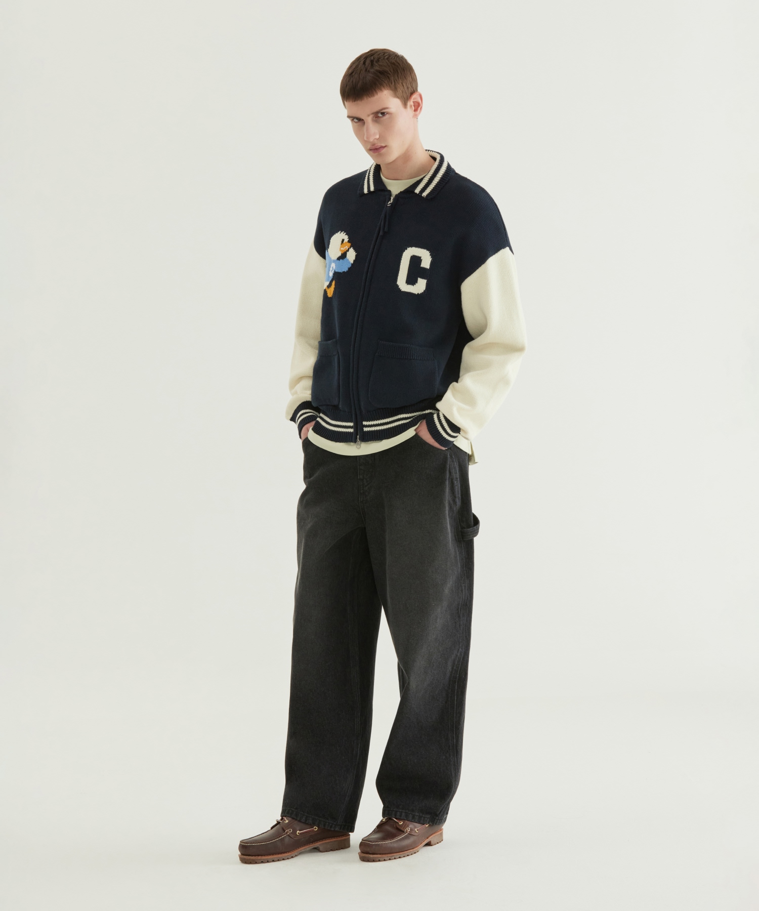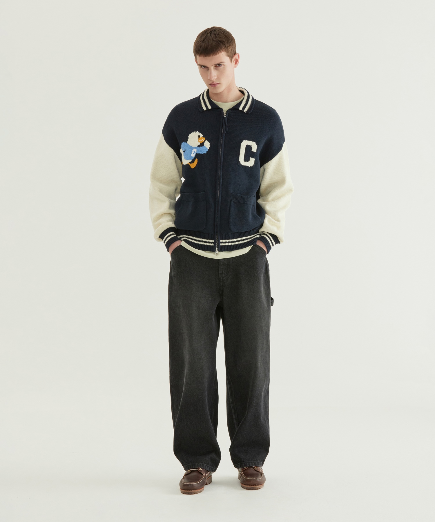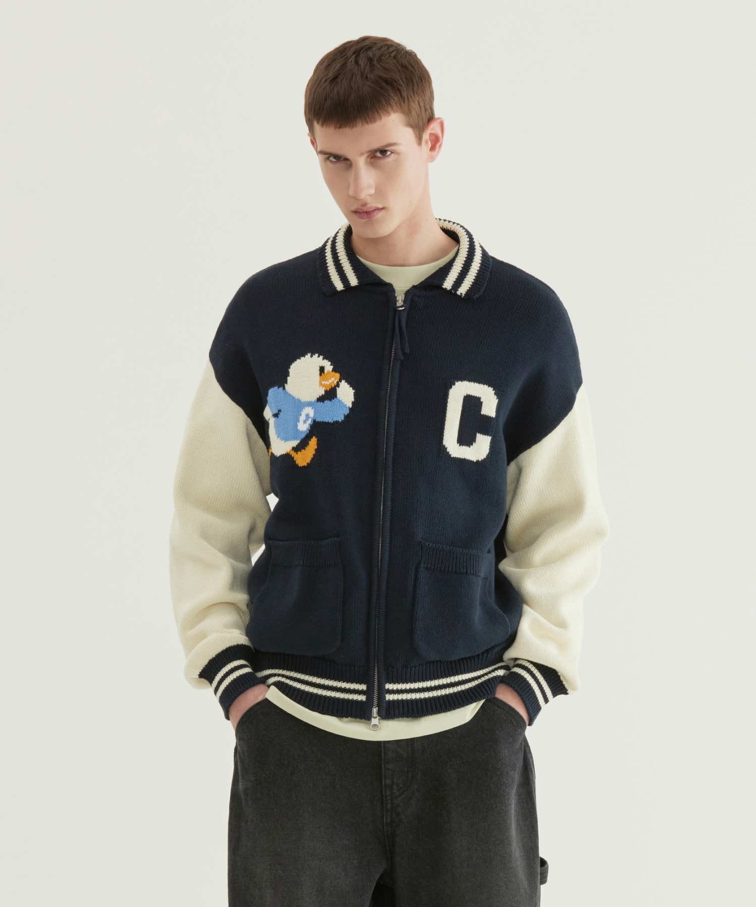 DUCK GRAPHIC KNIT VARSITY JACKET - Navy