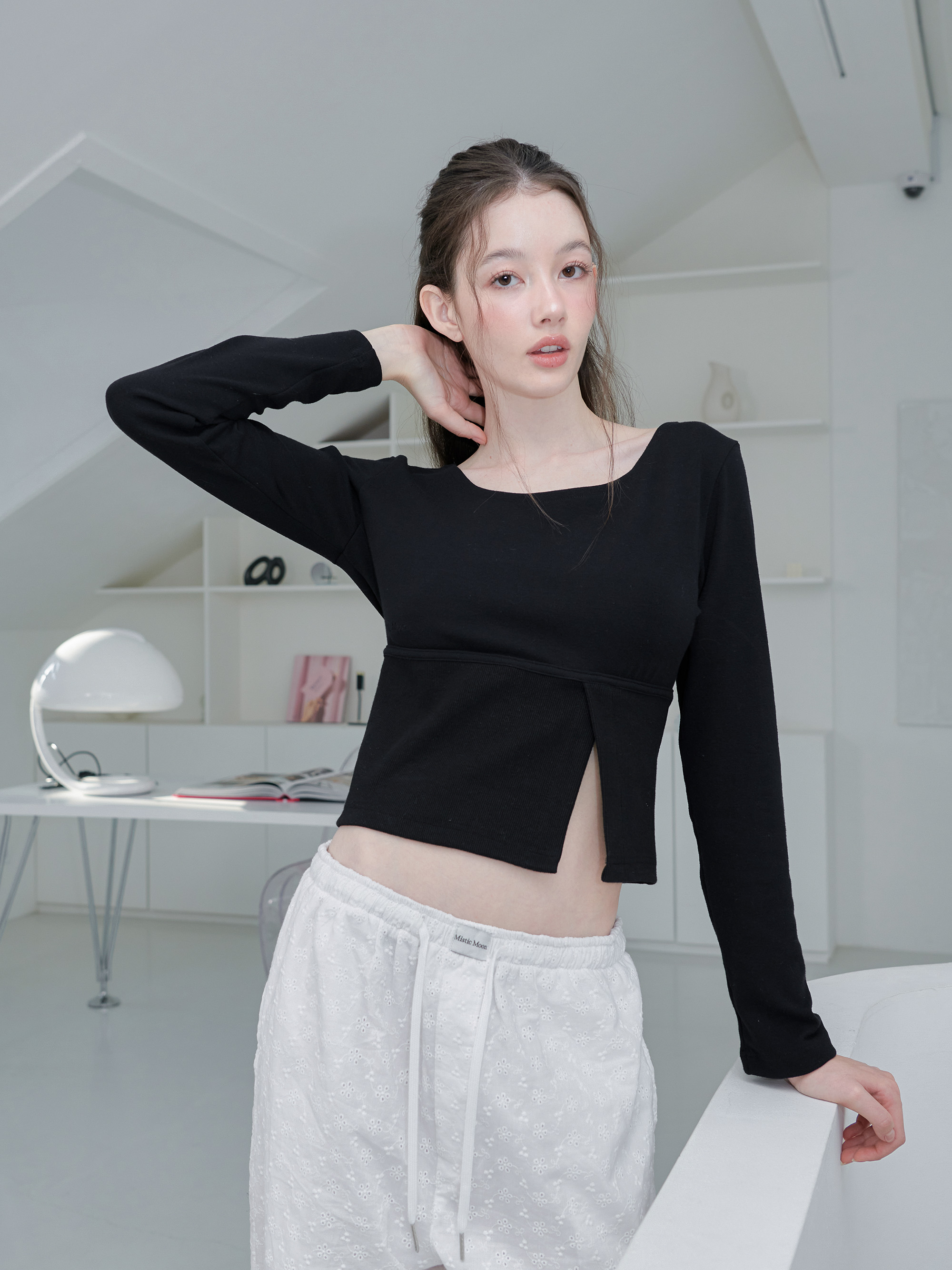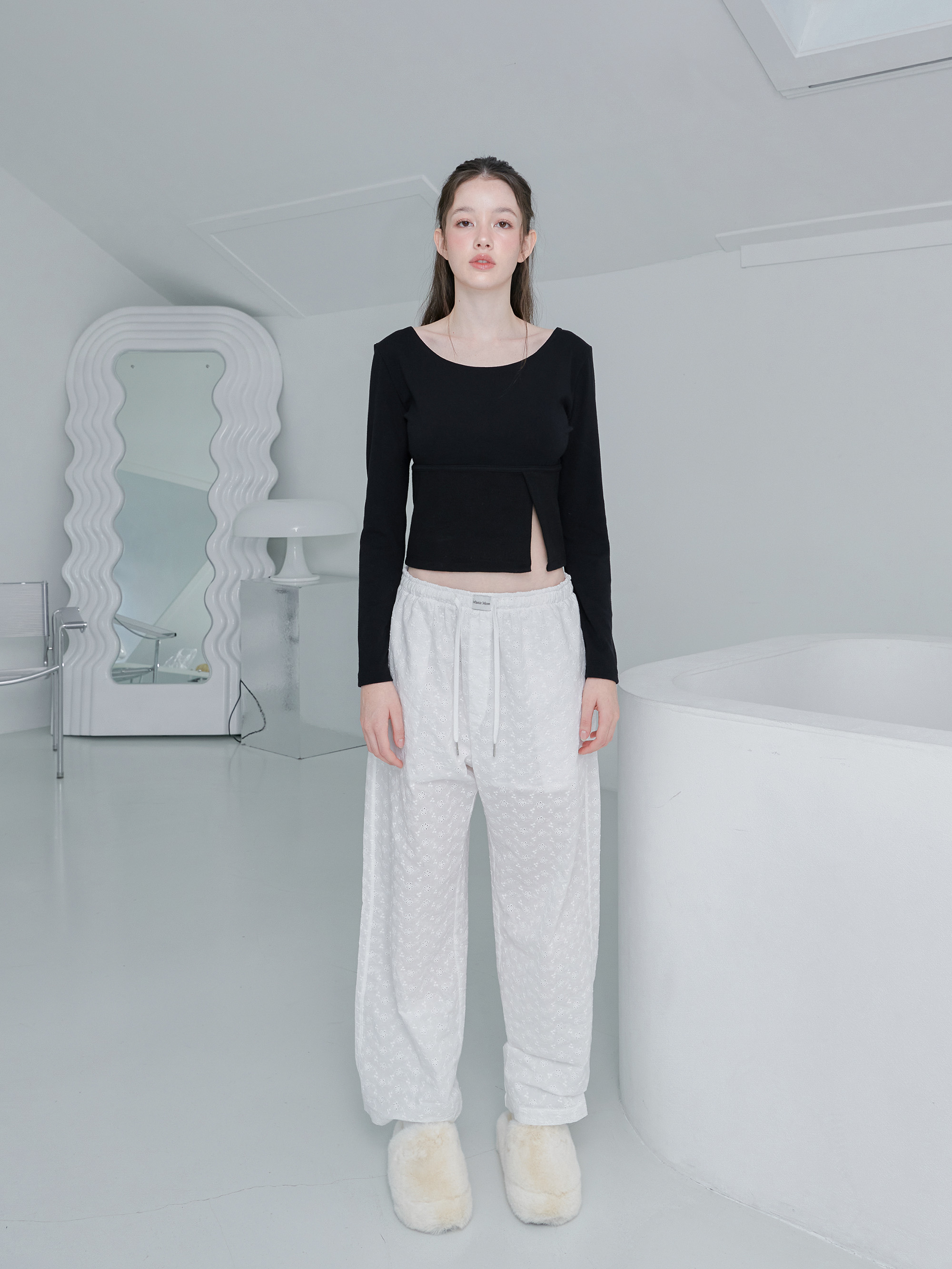 ミニマルでありながらセミスリムフィットのシルエットが、すっきりとした印象を与えるTシャツです。 伸縮性に優れたやわらかな素材を使用し、ウエスト部分のリブ素材のポイントが、華奢でスリムなフィット感を演出します。 ミニマルなムードのリブTシャツとして、ルームウェアはもちろん、デイリーウェアとしても幅広くコーディネートをお楽しみください。
