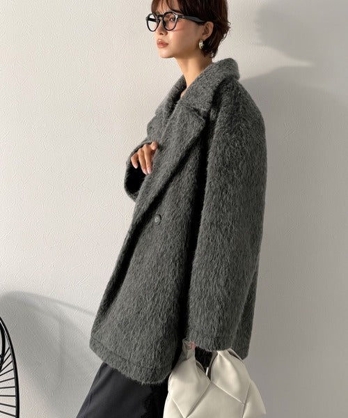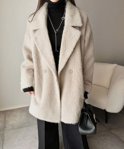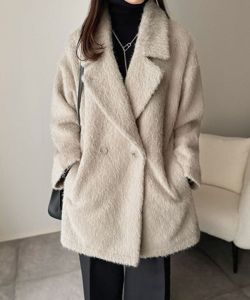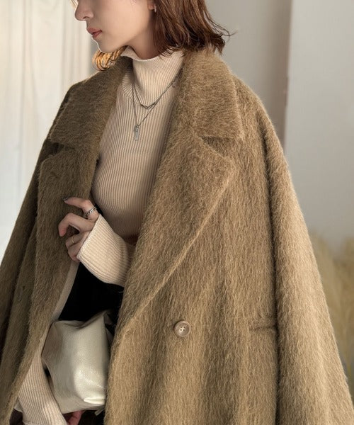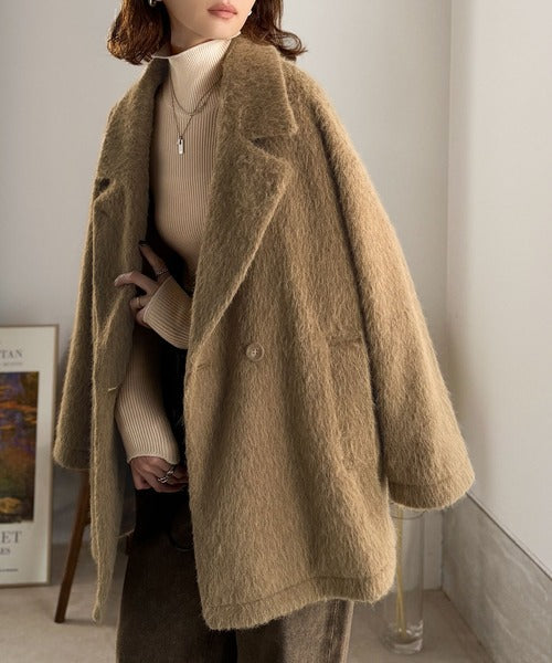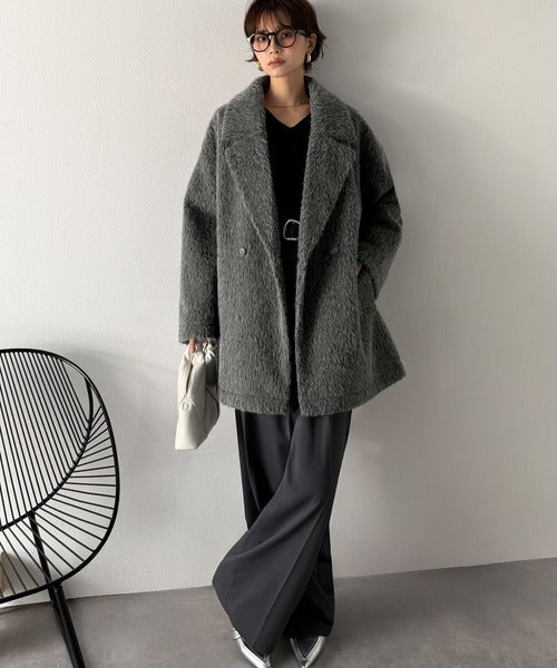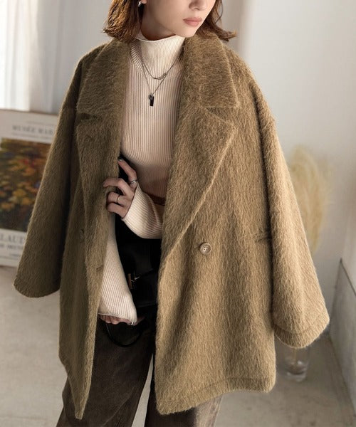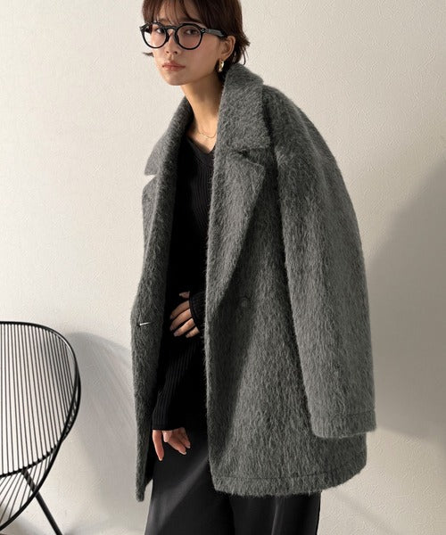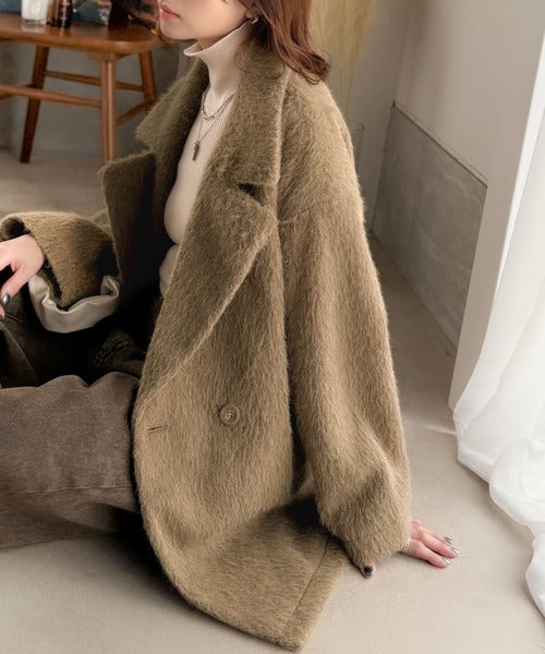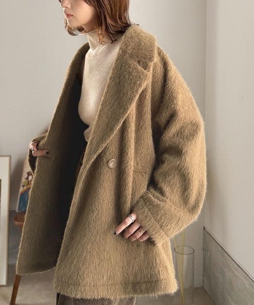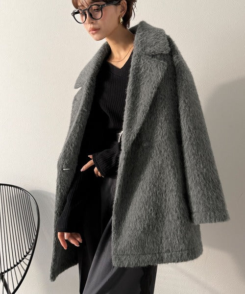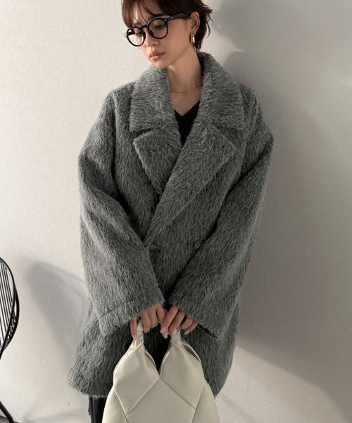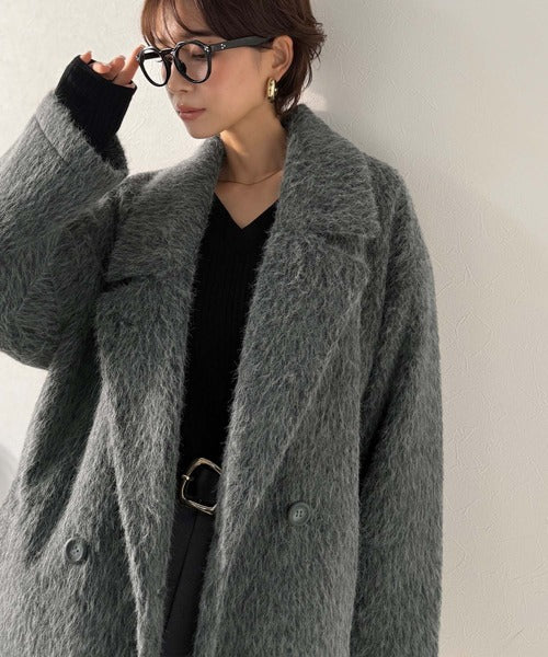 ふわり纏うだけで上品見え。2wayシャギーダブルビックカラージャケットコート(ミドル丈) ce1240097