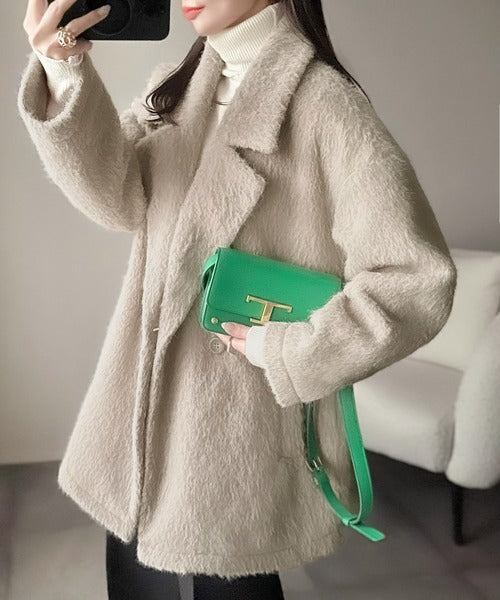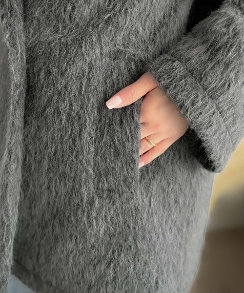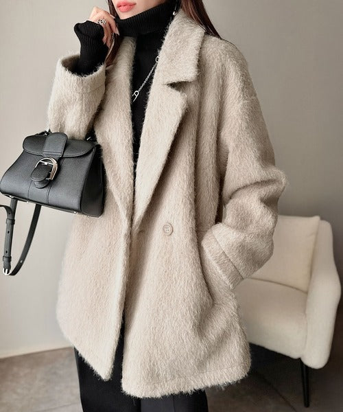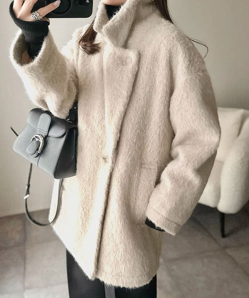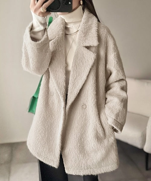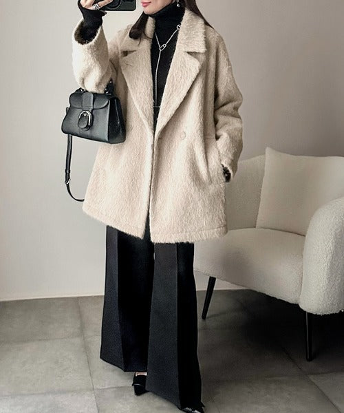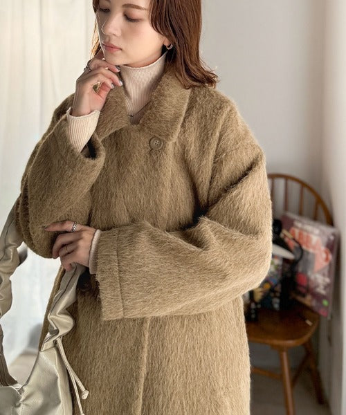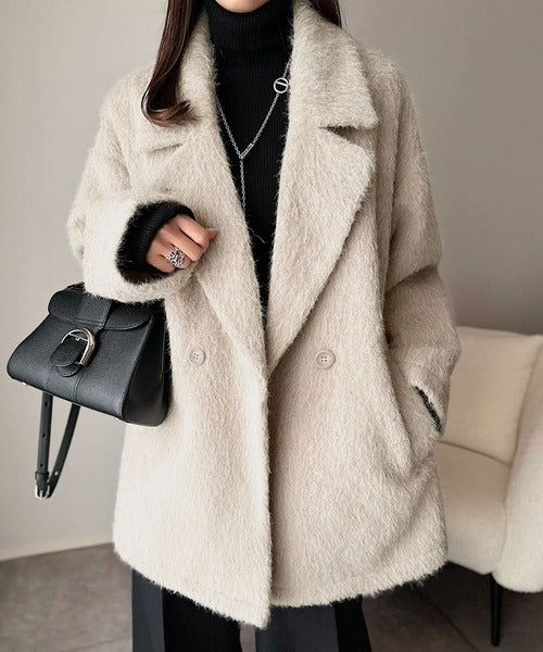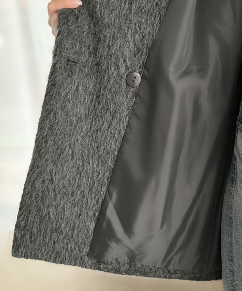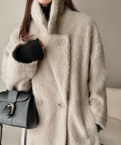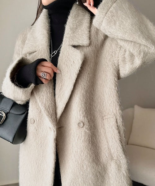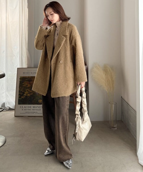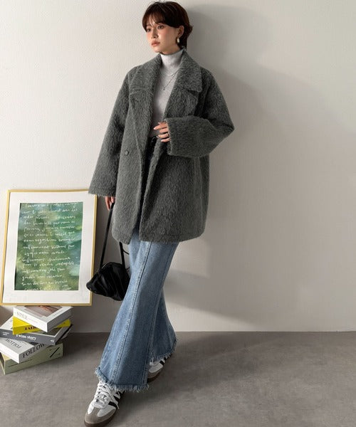 ふわり纏うだけで上品見え。2wayシャギーダブルビックカラージャケットコート(ミドル丈) ce1240097