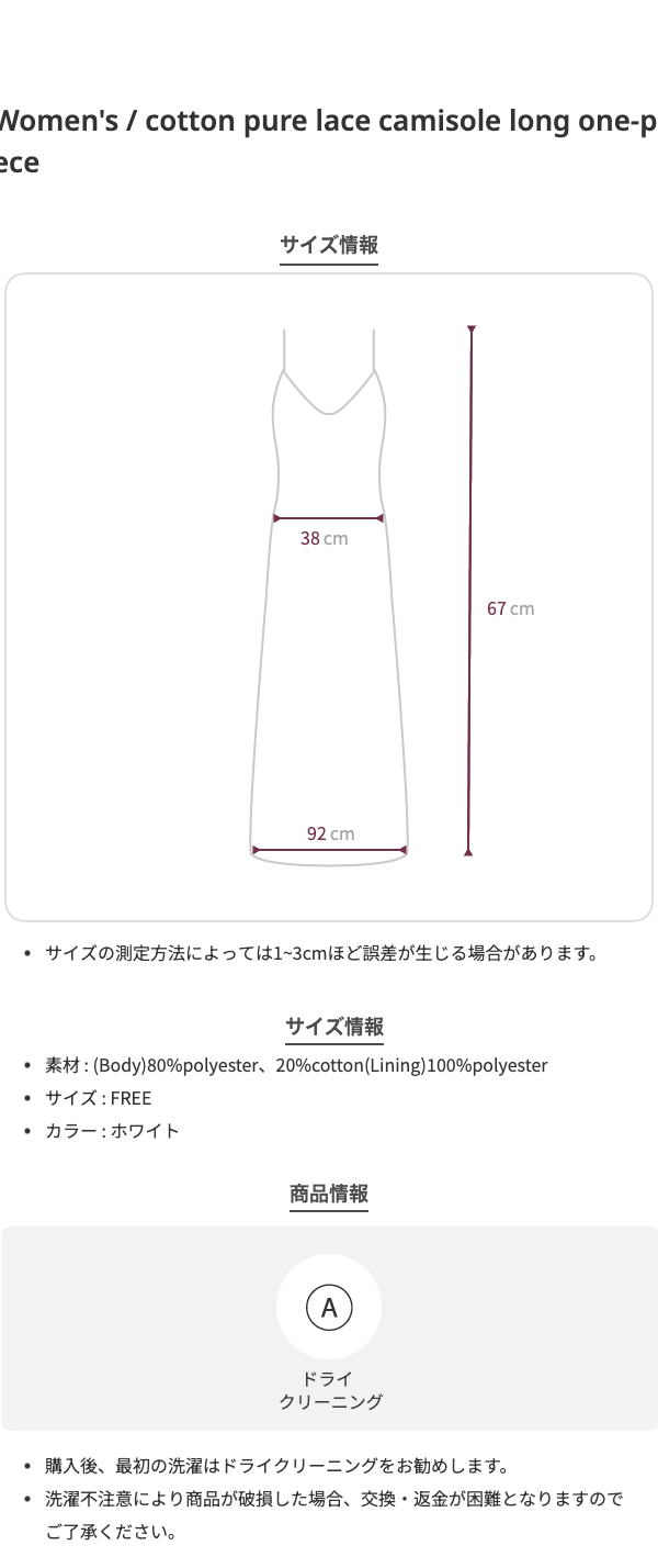 シンプルなコットン素材に胸元のリボンとレーステープをふんだんにあしらったキャミワンピース。