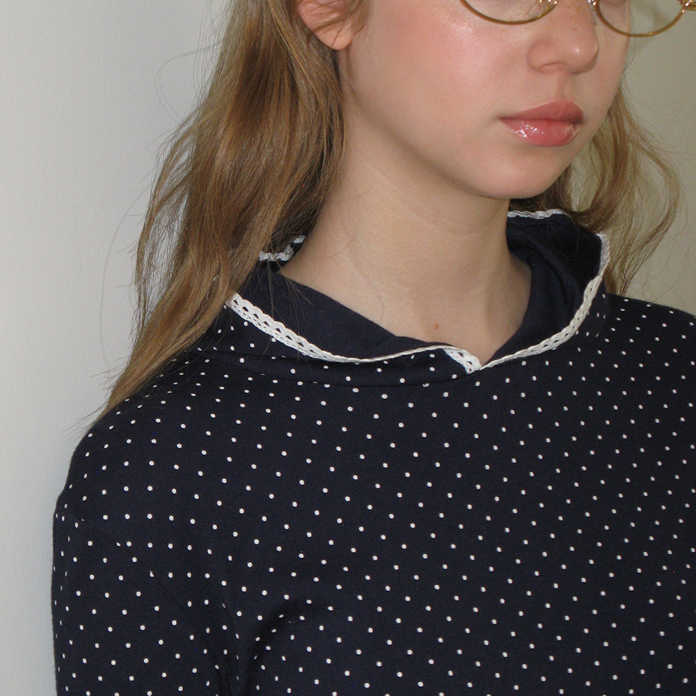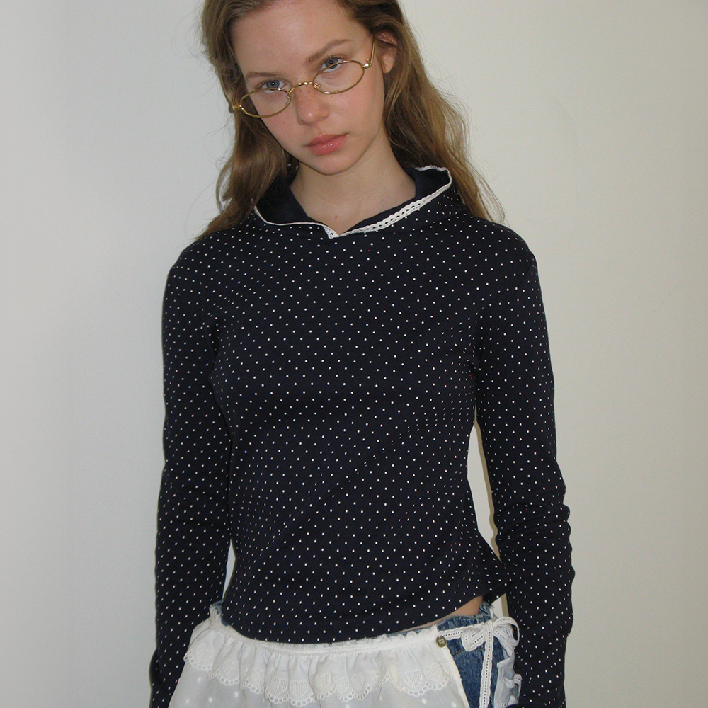 LACE HOODIE SLIM LONG SLEEVE NAVY DOT