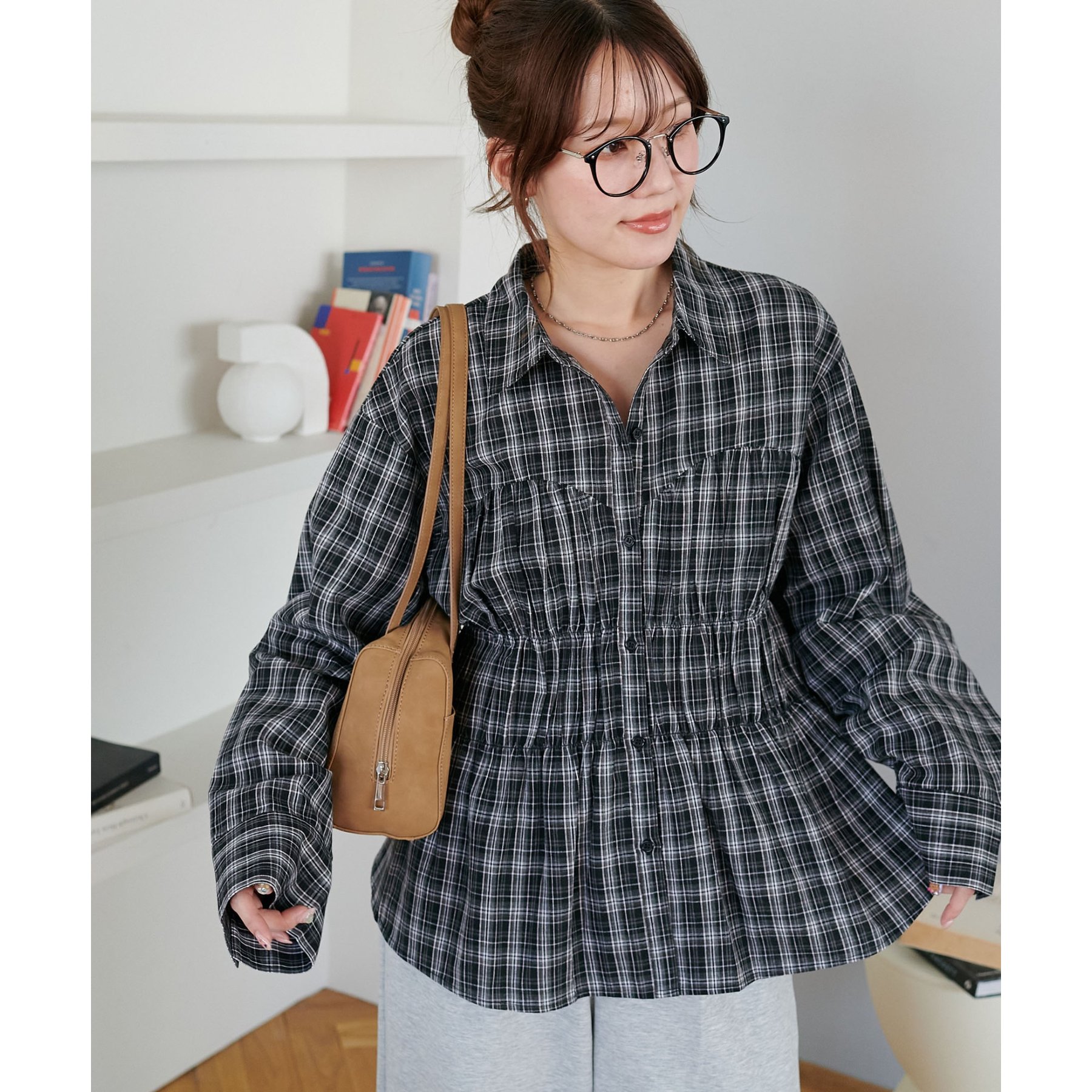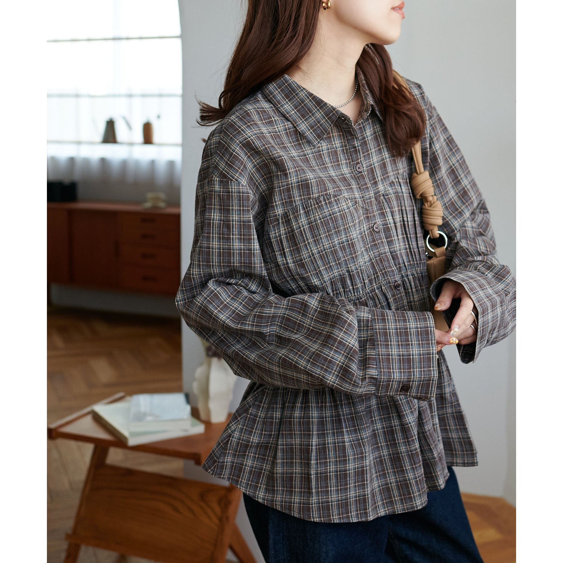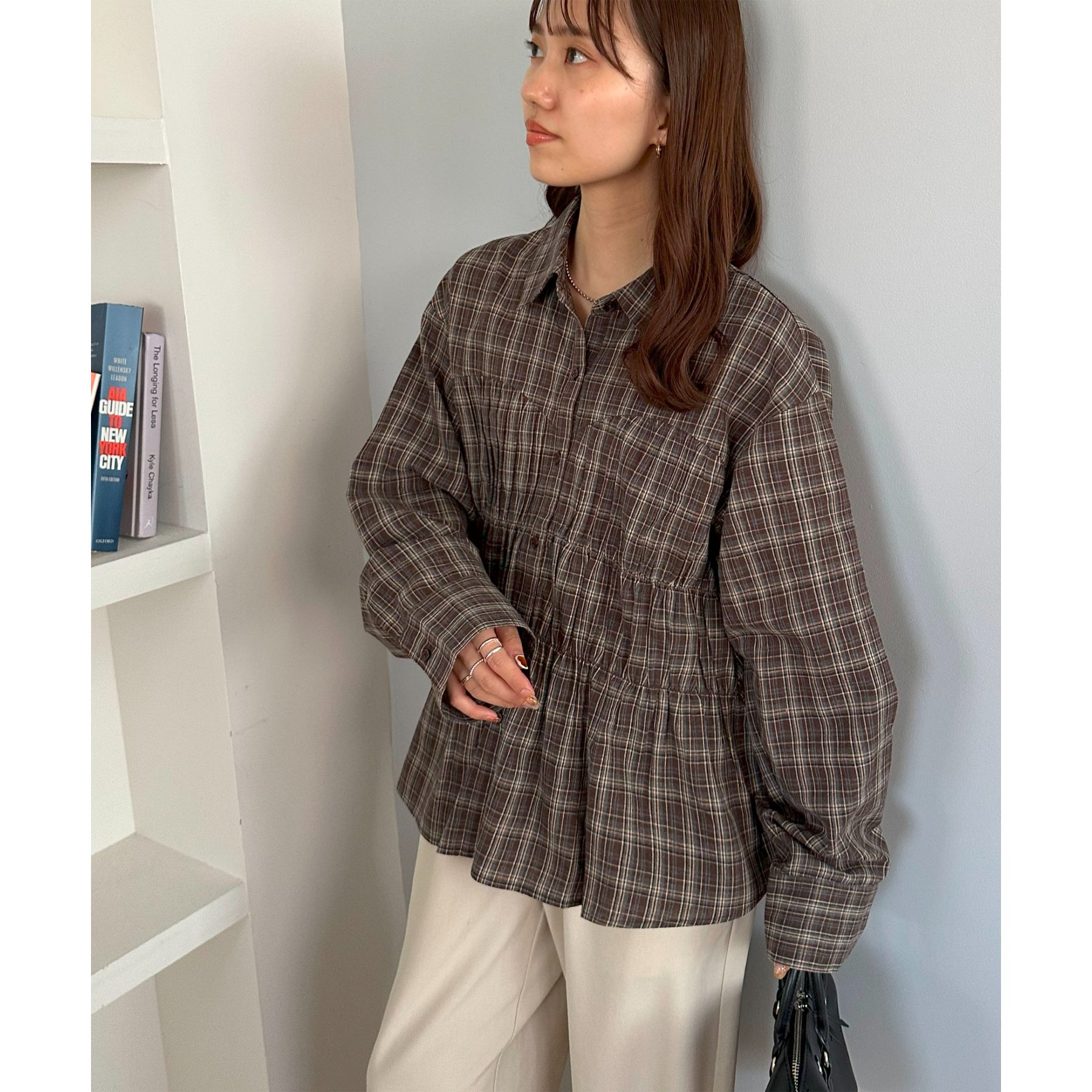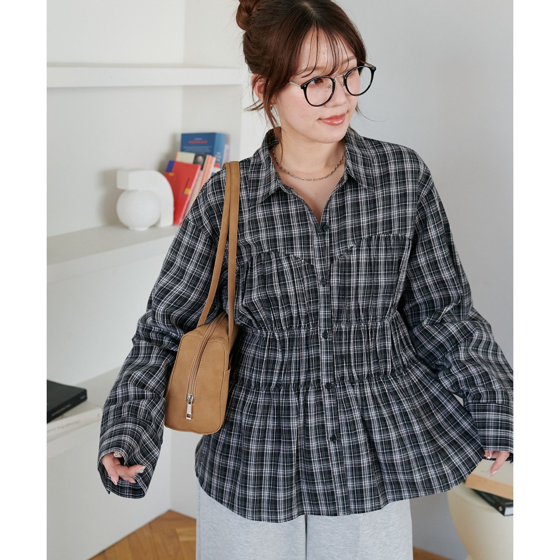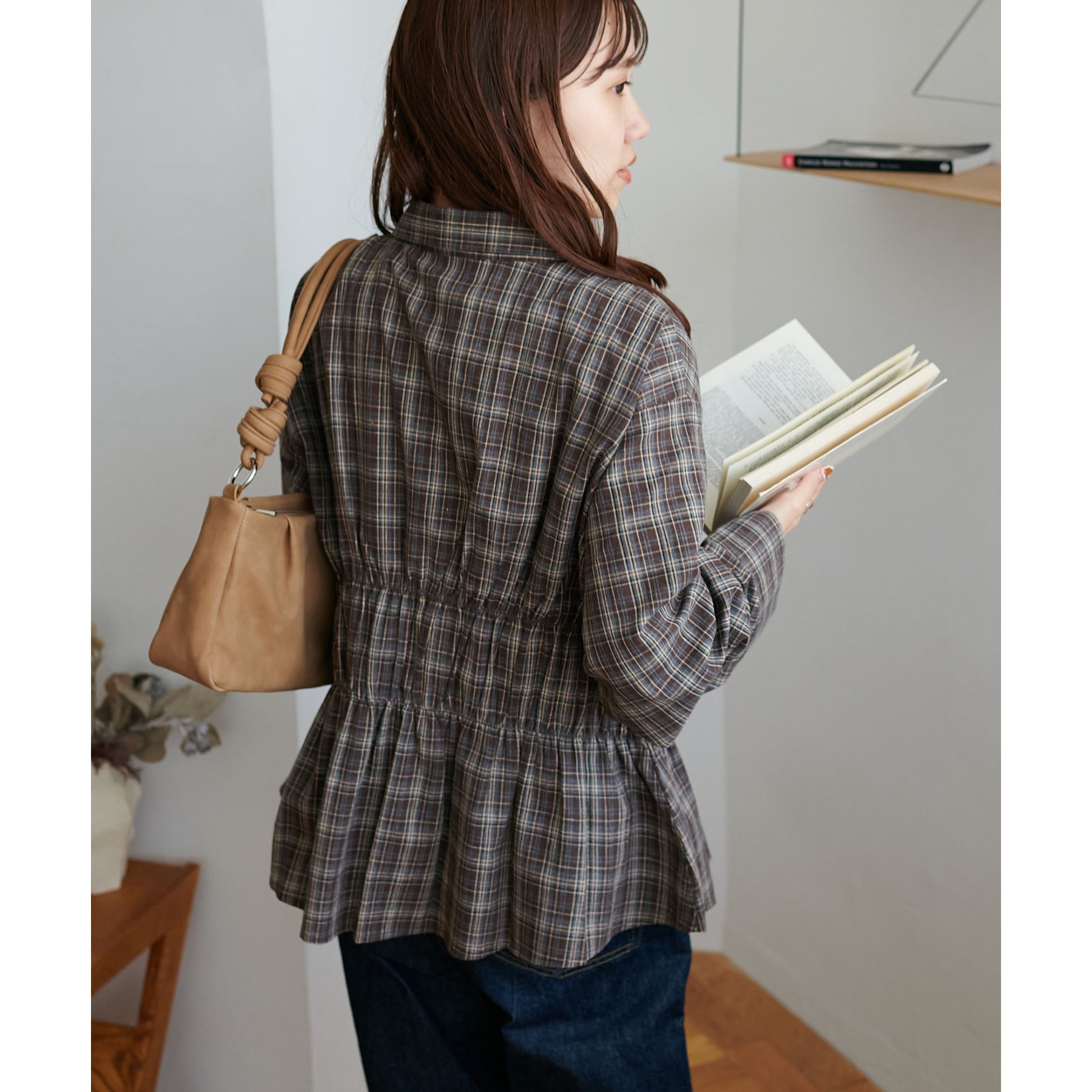 柔らかなシルエットが女性らしい、シャーリングチェックシャツ