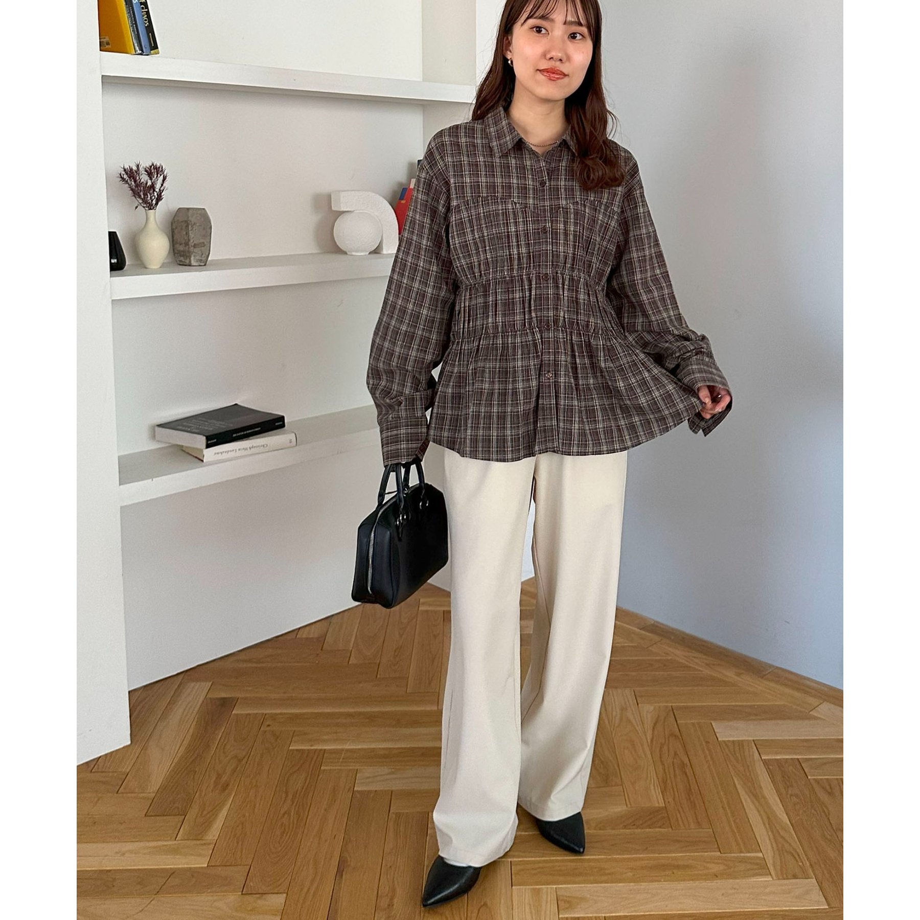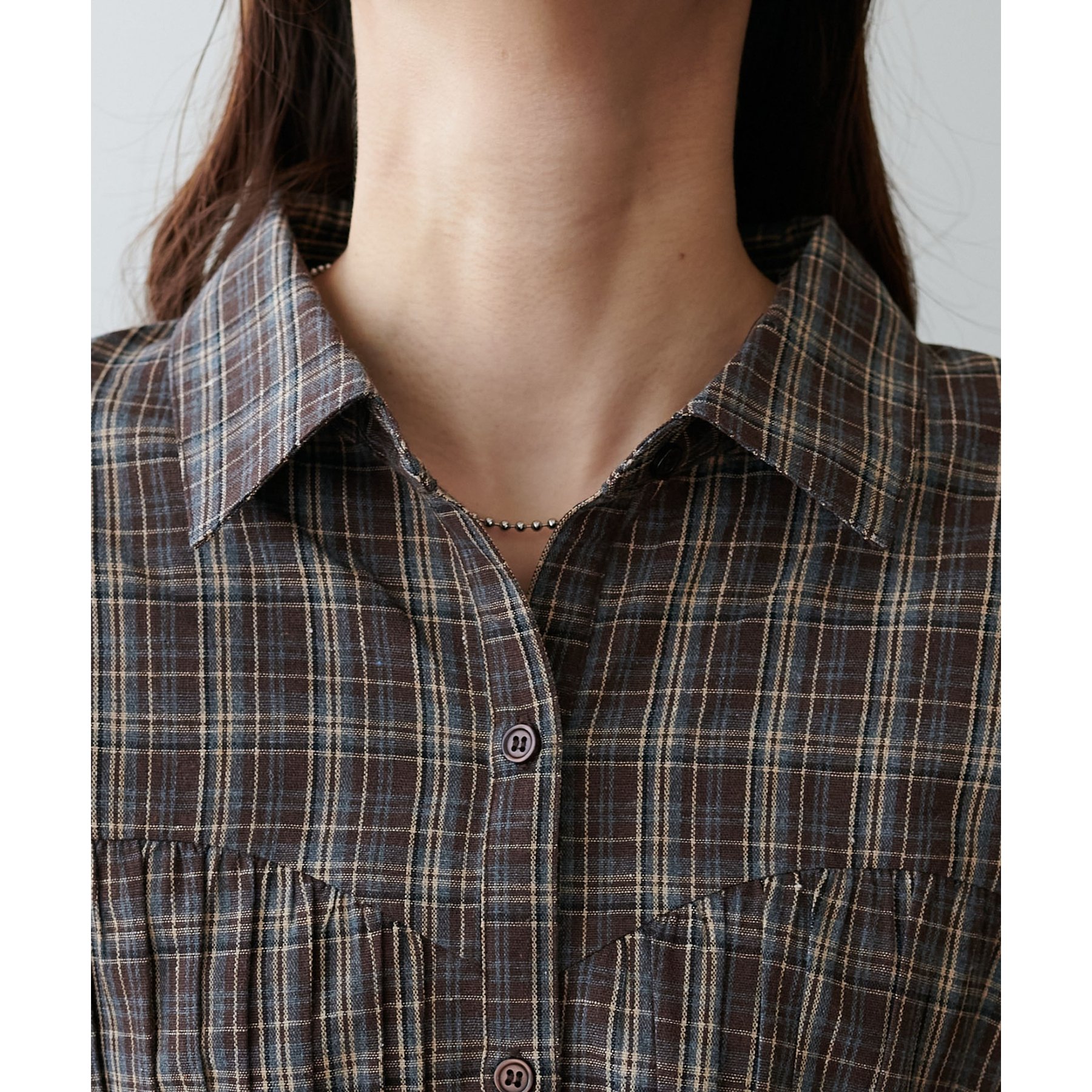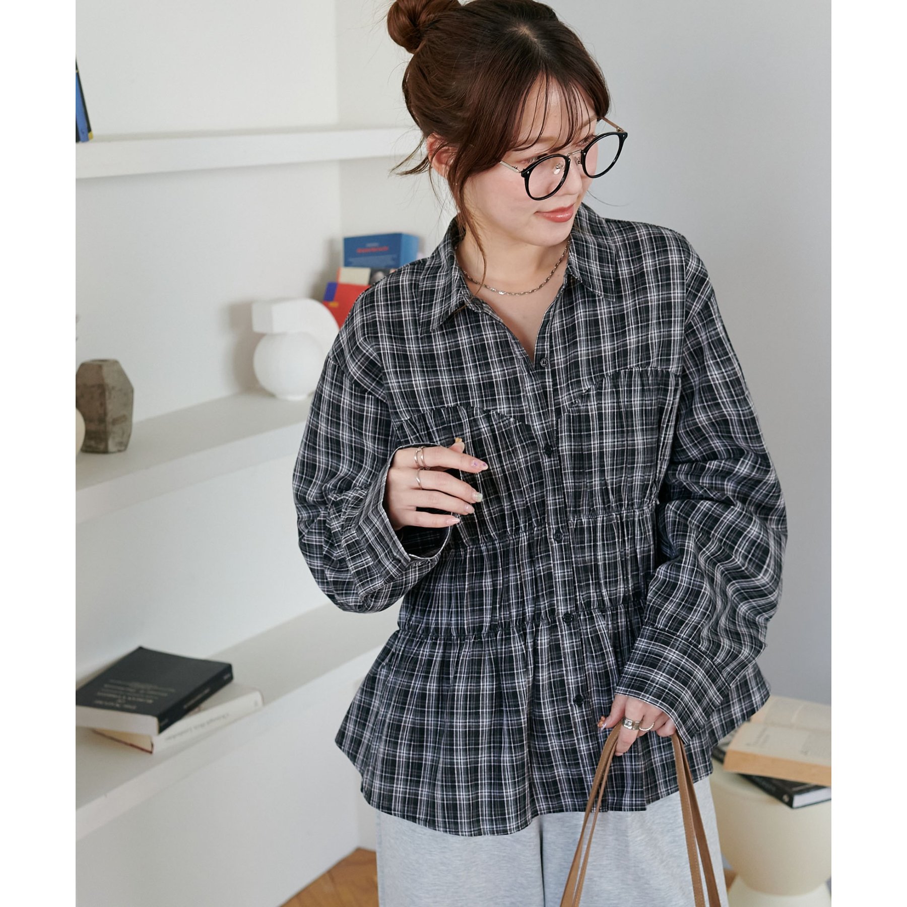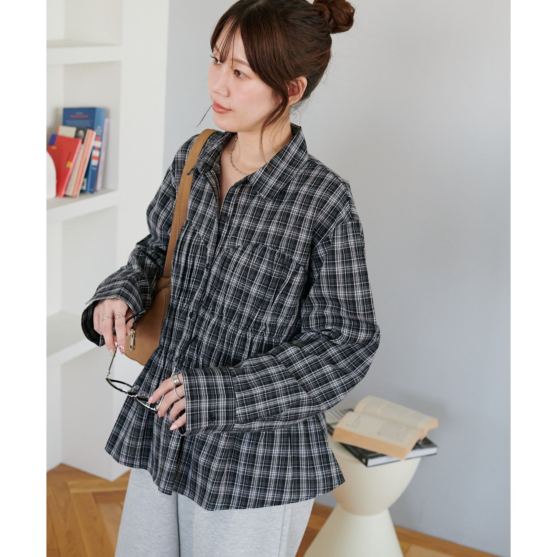 柔らかなシルエットが女性らしい、シャーリングチェックシャツ
